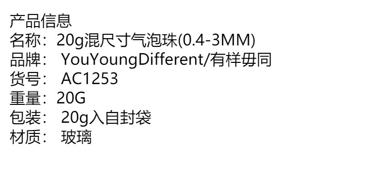 20g无孔透明幻彩玻璃珠气泡珠diy水晶滴胶UV胶填充物美甲手机壳饰