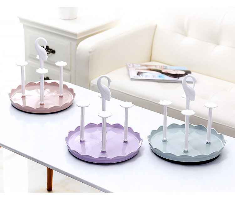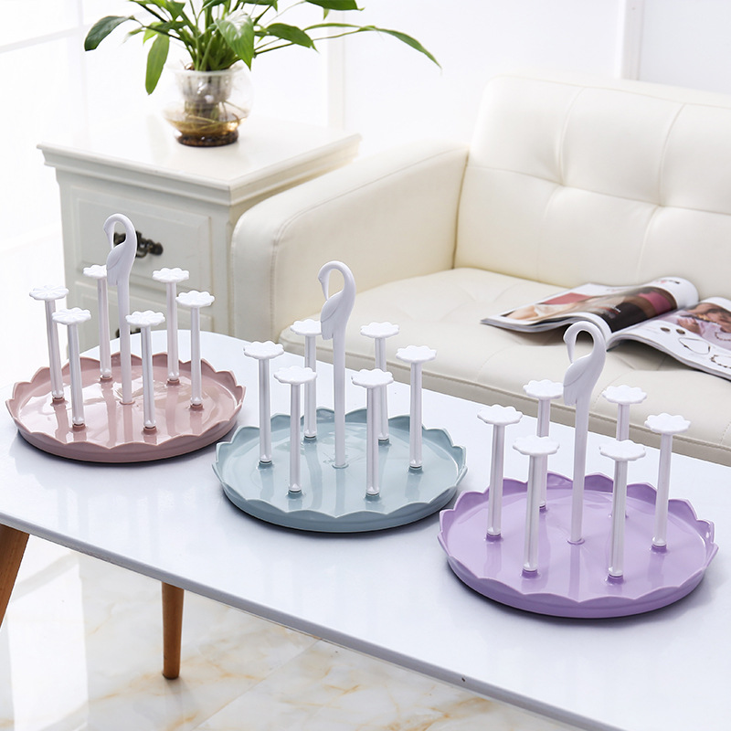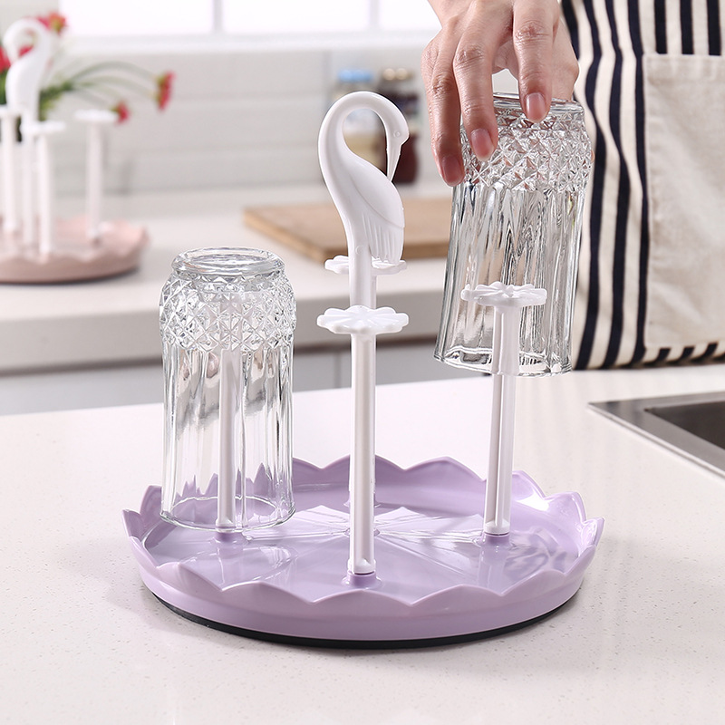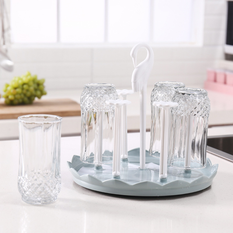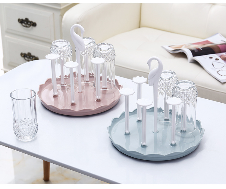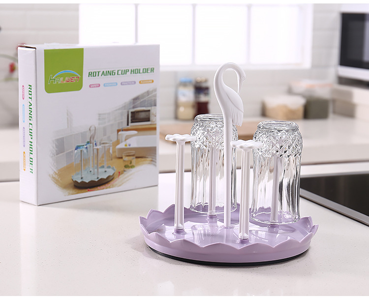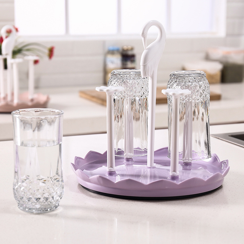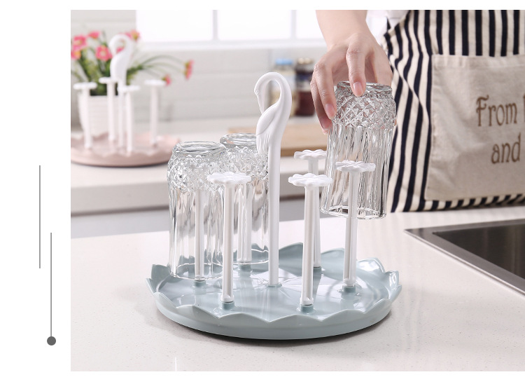 杯架子置物架 荷叶款沥水架 家用防尘水杯架子 创意旋转塑料杯架