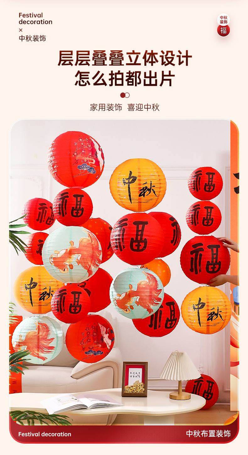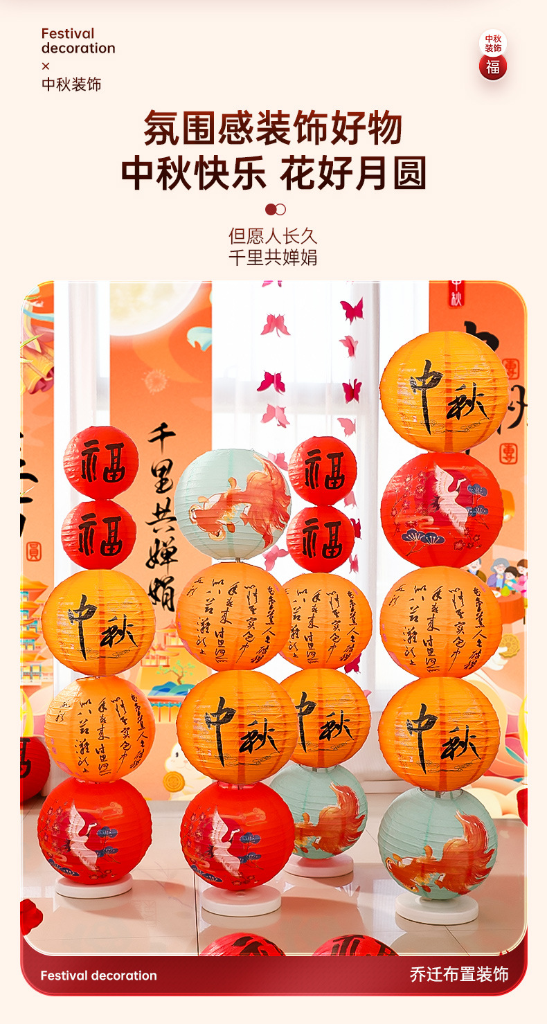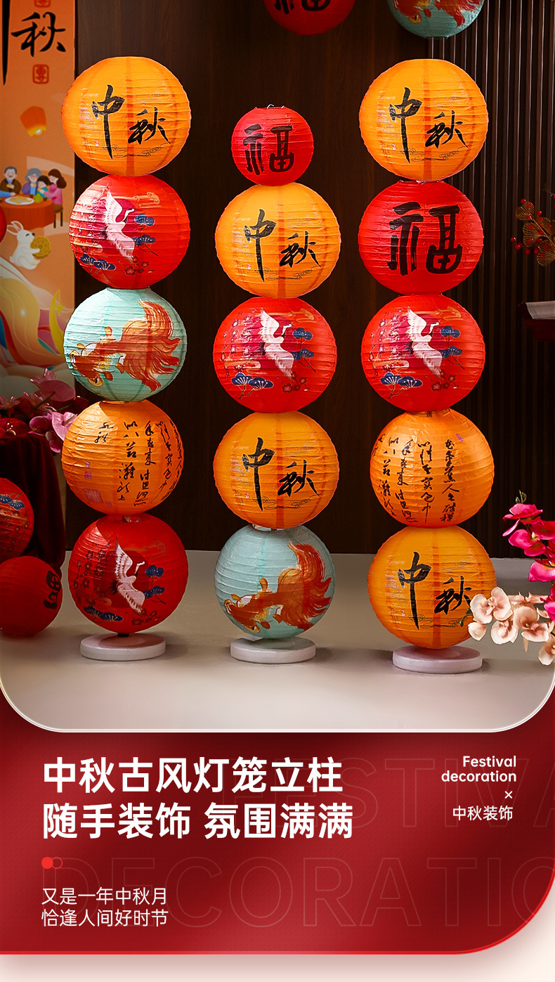 2025蛇年新款折叠灯笼国潮古风摆件节日氛围场景布置装饰立柱宫灯