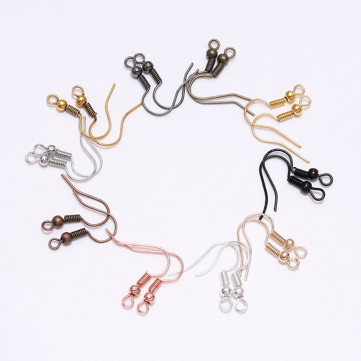 廉价耳环钩配件 DIY首饰饰品配件大耳钩带珠耳钩 弯耳钩金色银色