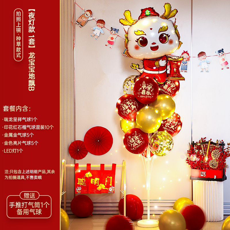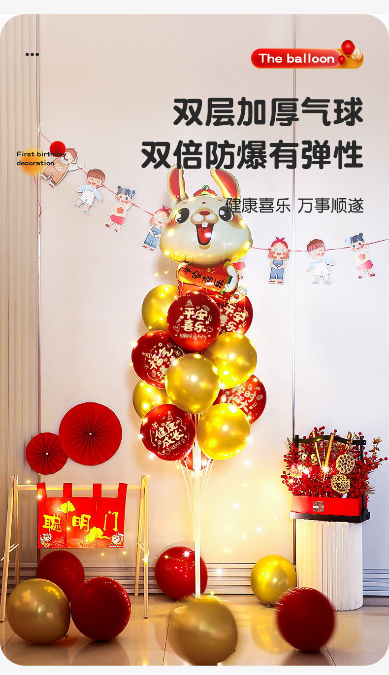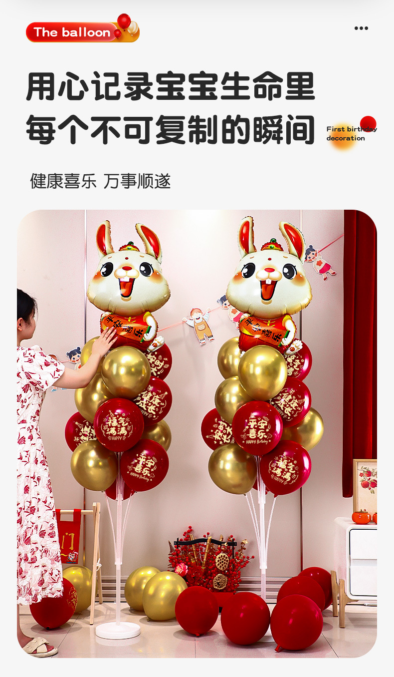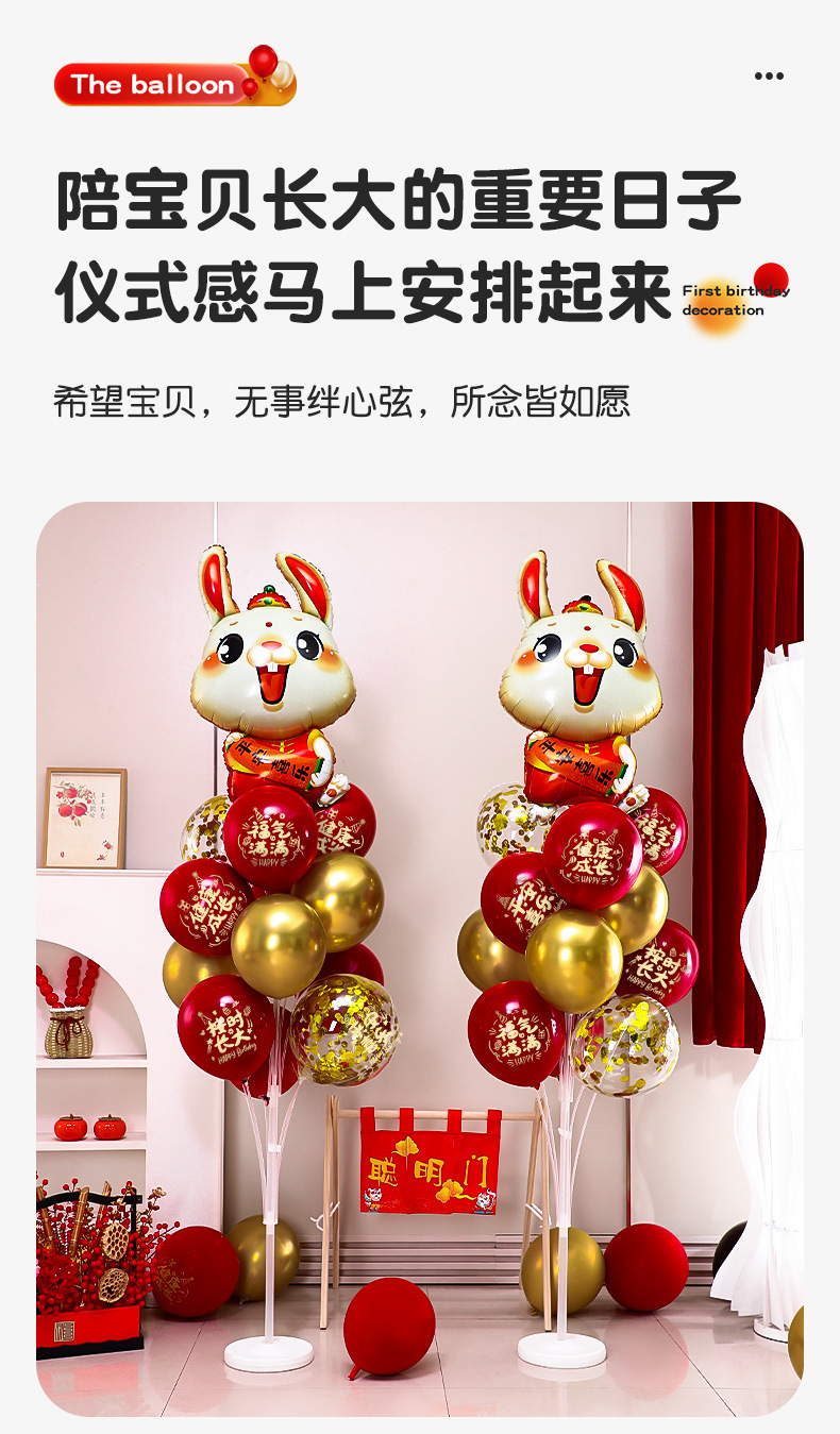 儿童生日快乐派对百日宴龙兔宝宝一周岁地飘气球满月场景布置装饰