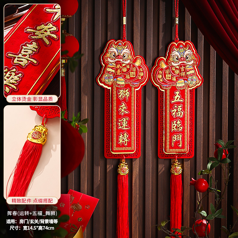 2025蛇年新年装饰客厅喜庆场景布置挥春挂饰春节过年醒狮福字挂件