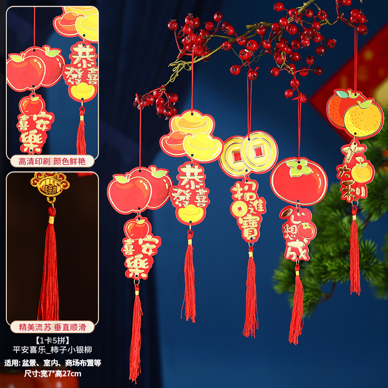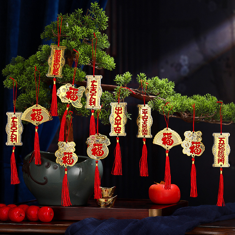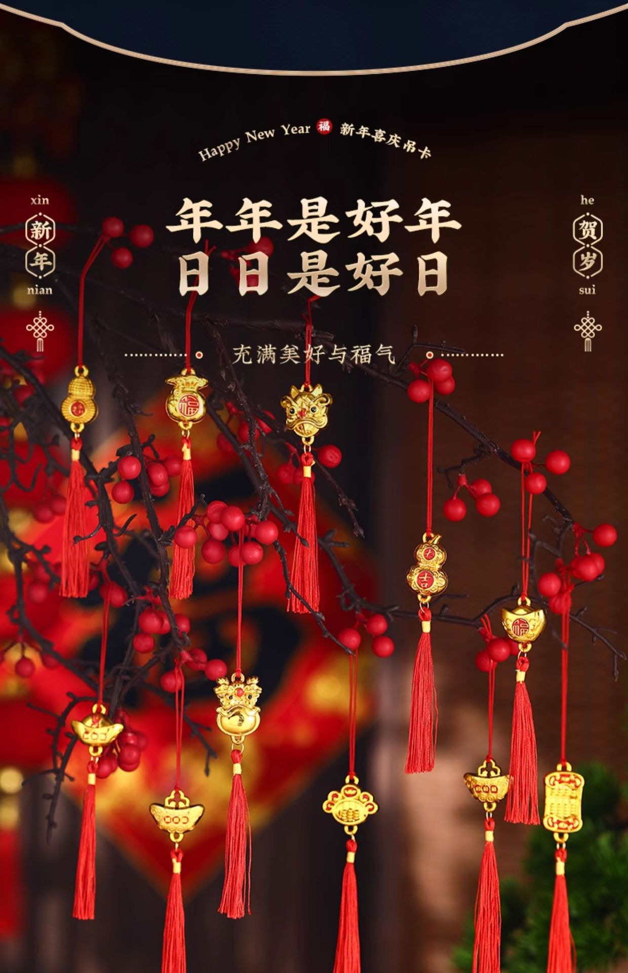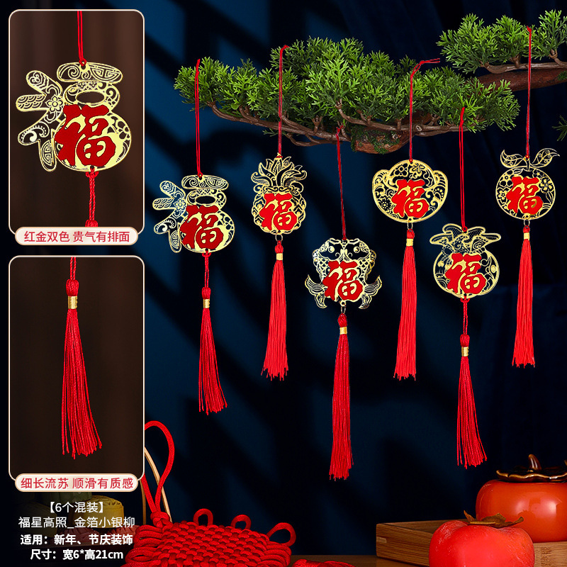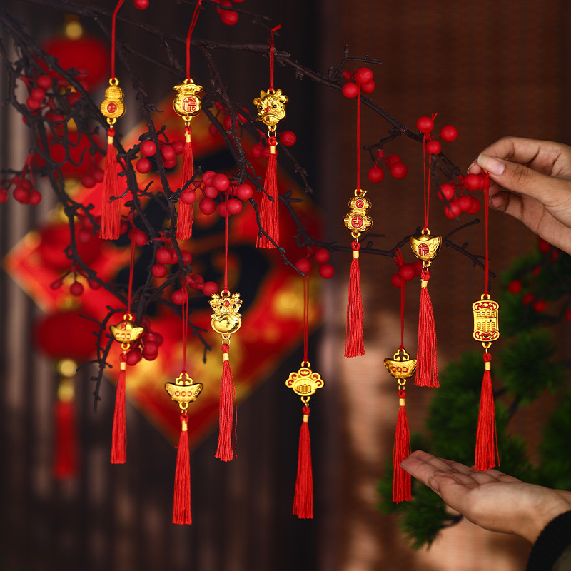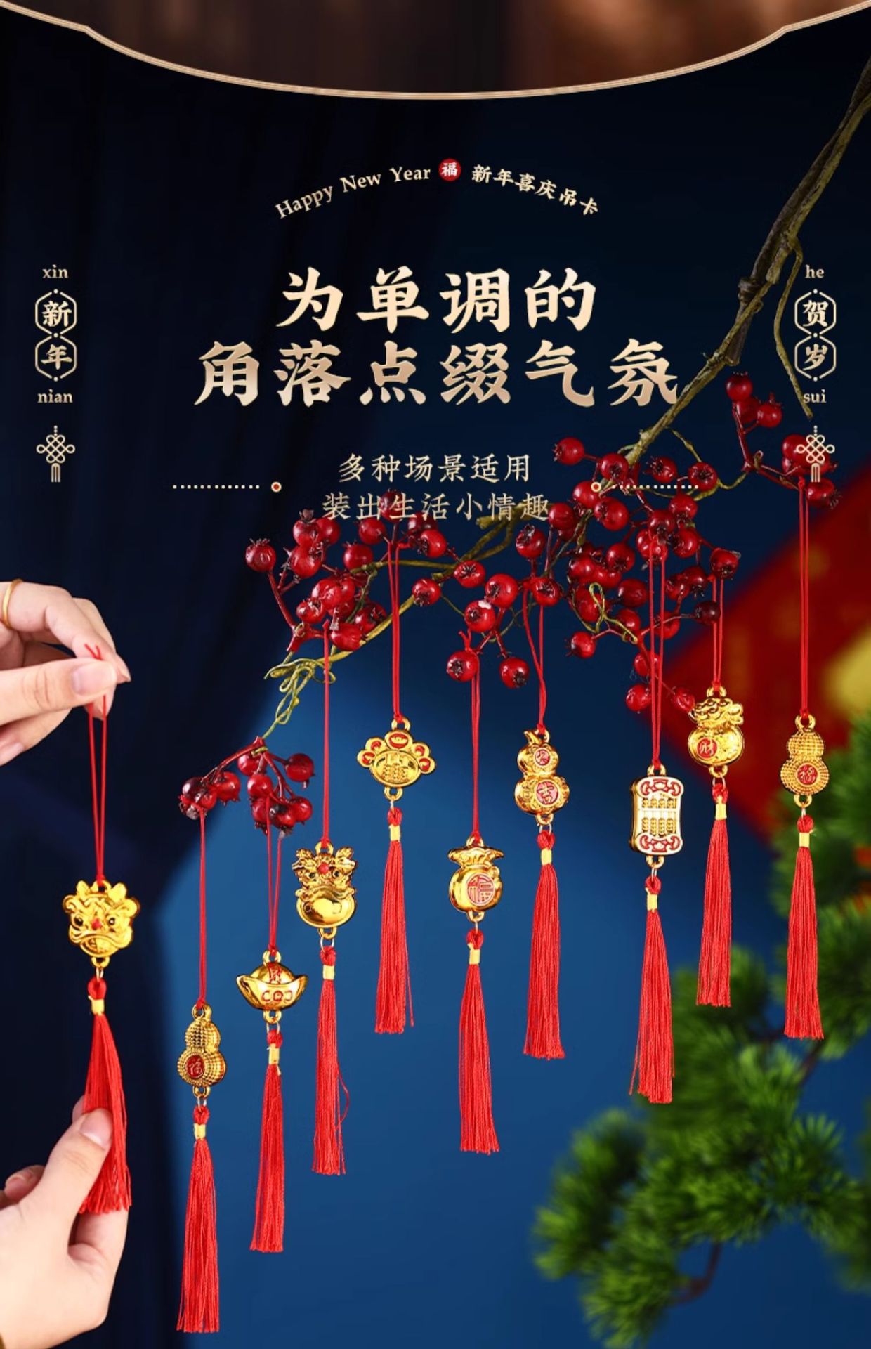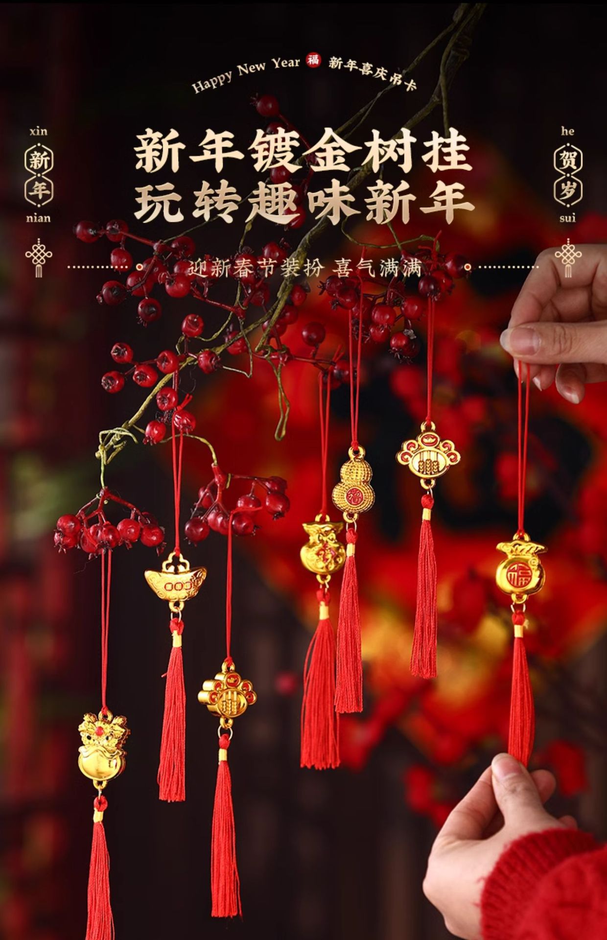 2025新年蛇年装饰品福字银柳小挂件春节过年盆栽客厅氛围布置挂饰