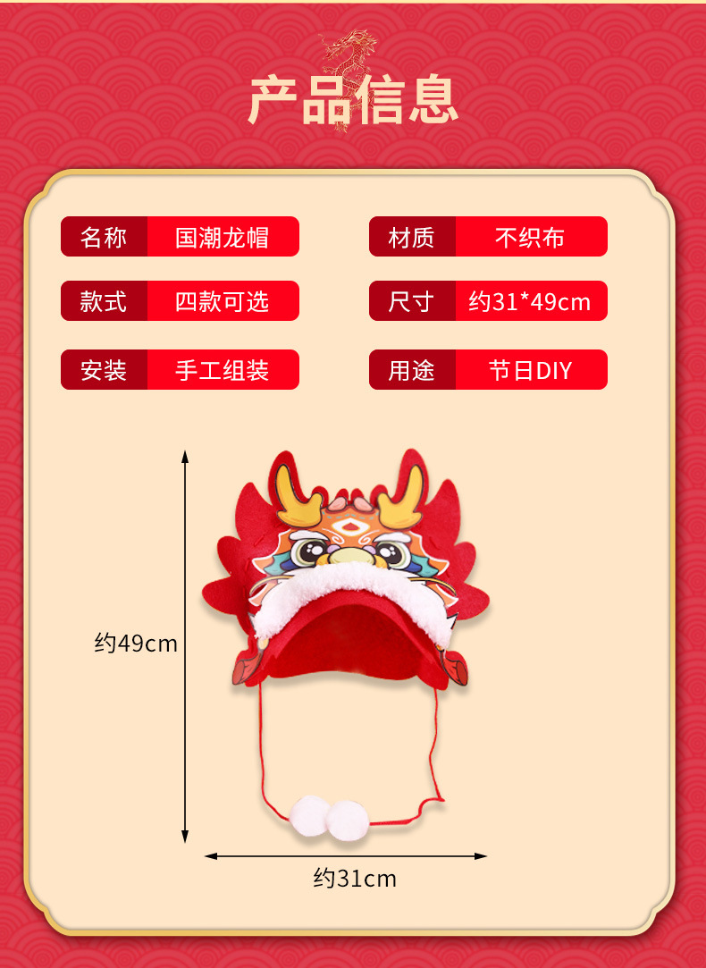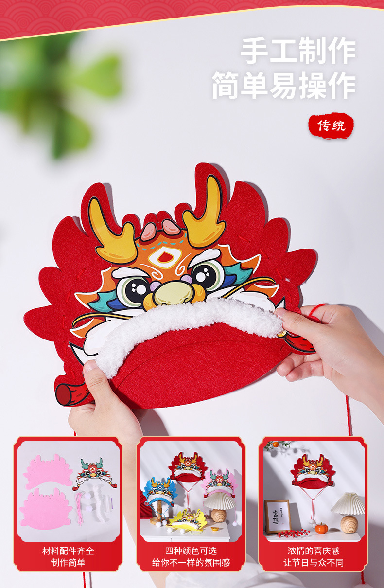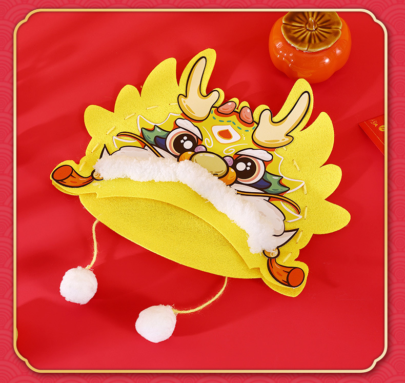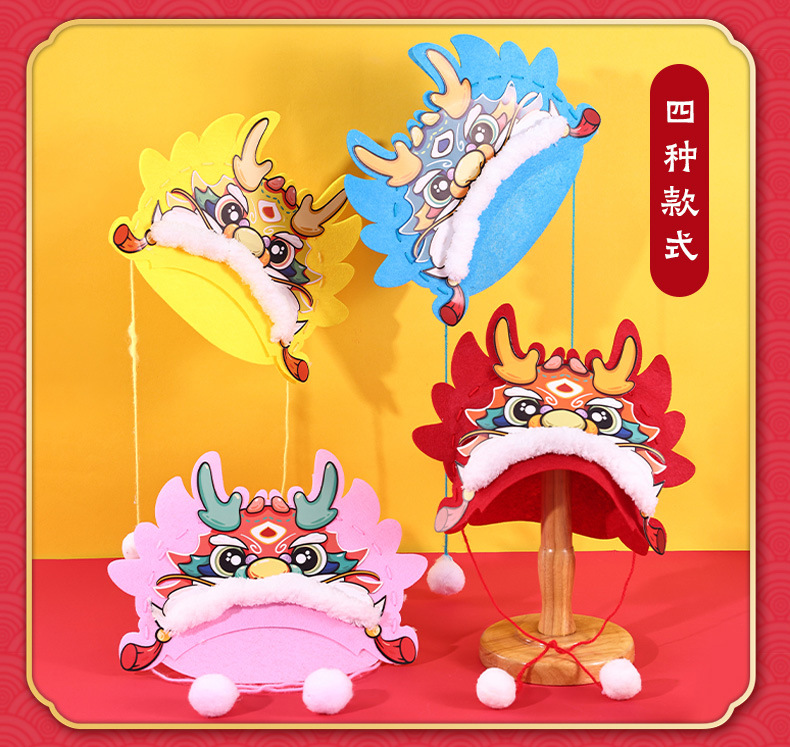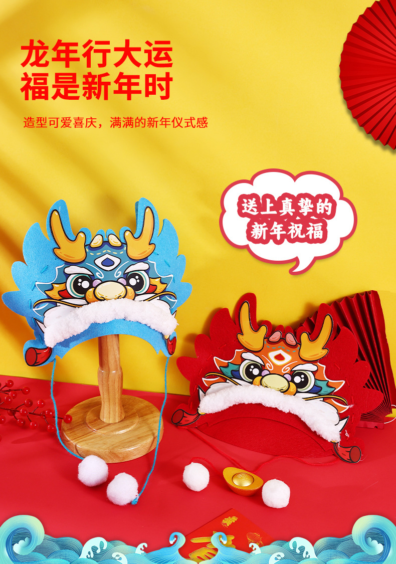 龙年新年儿童帽子手工 diy制作材料包创意头饰不织布龙头帽子礼物