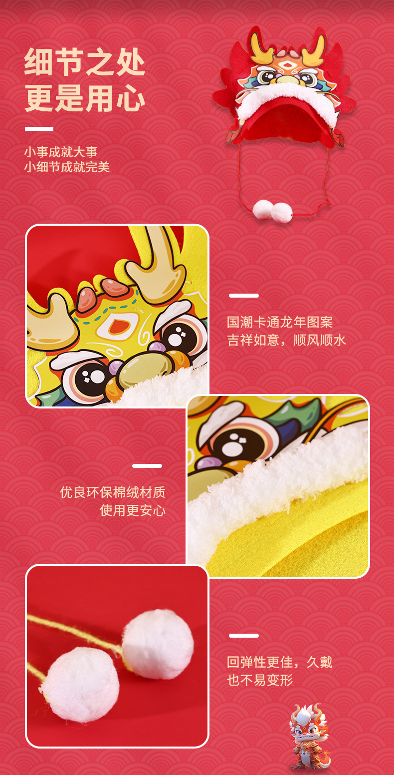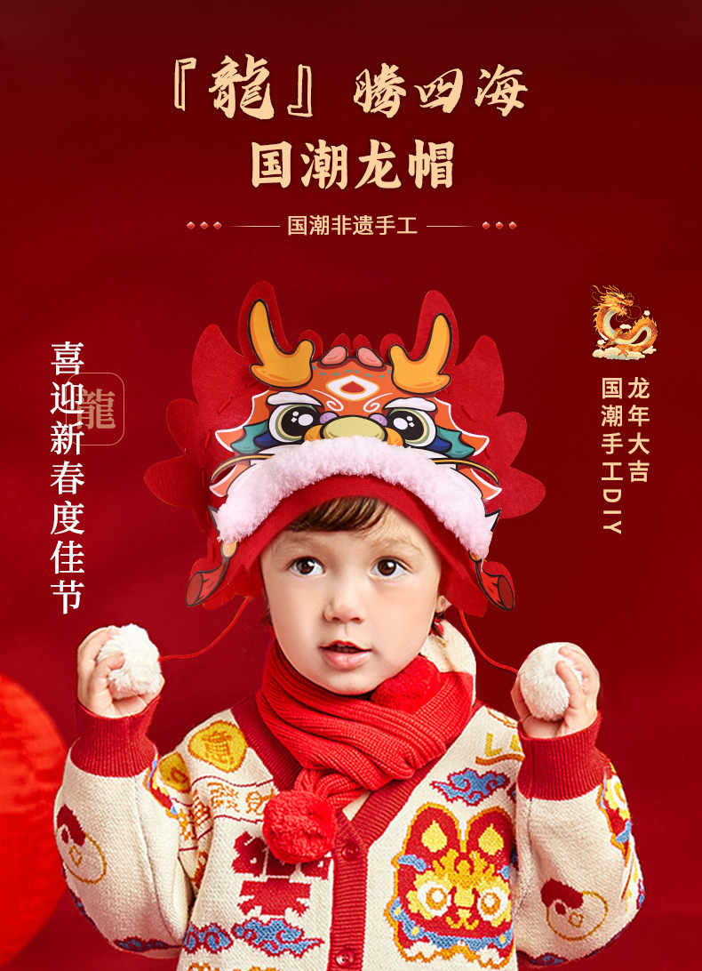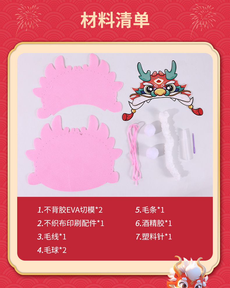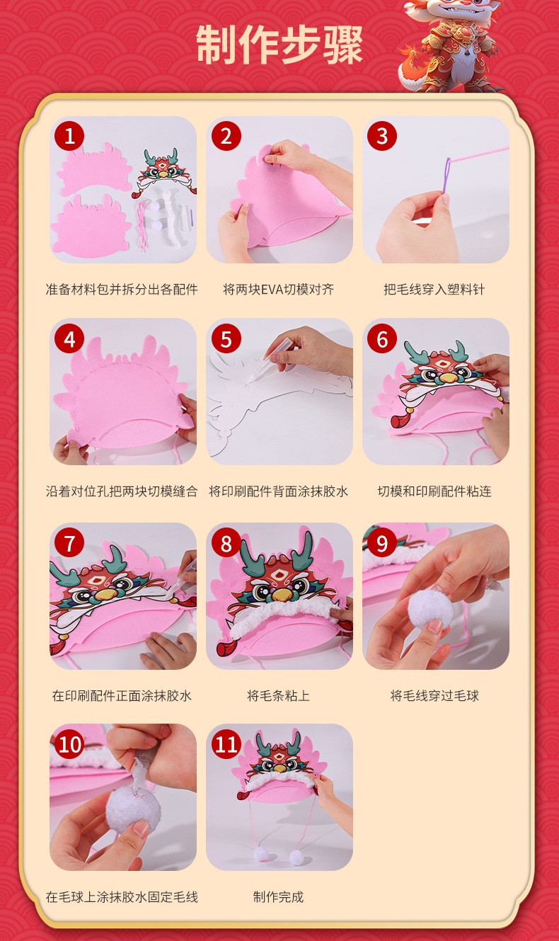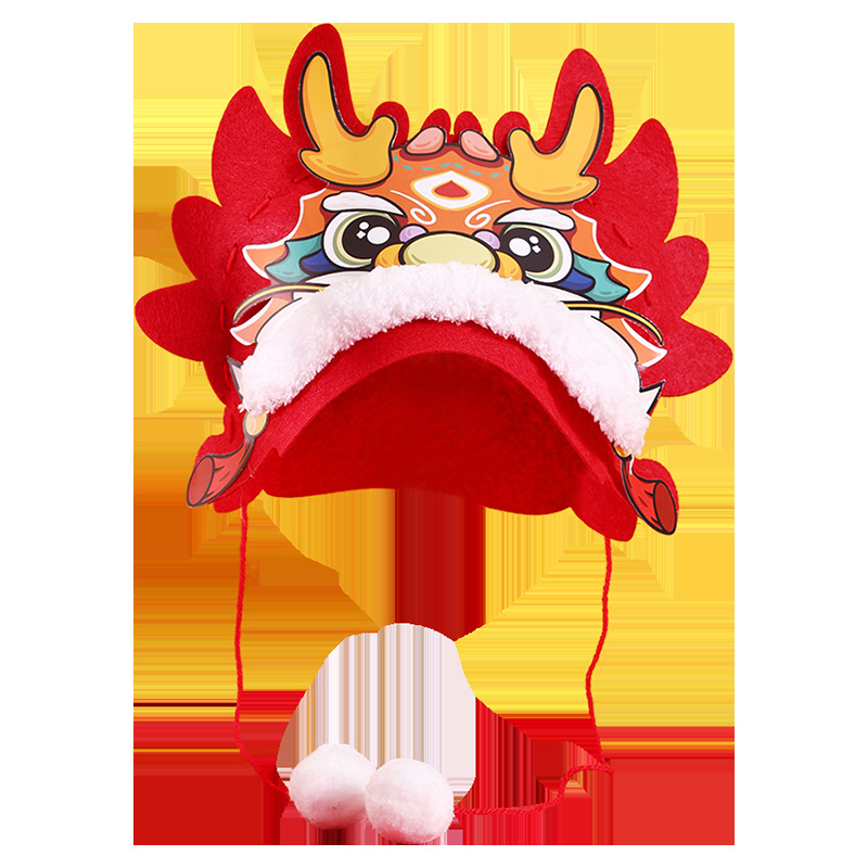 龙年新年儿童帽子手工 diy制作材料包创意头饰不织布龙头帽子礼物