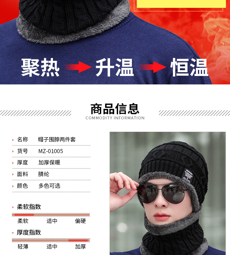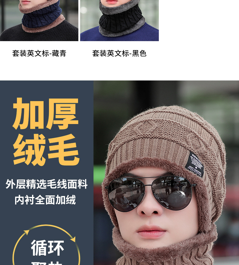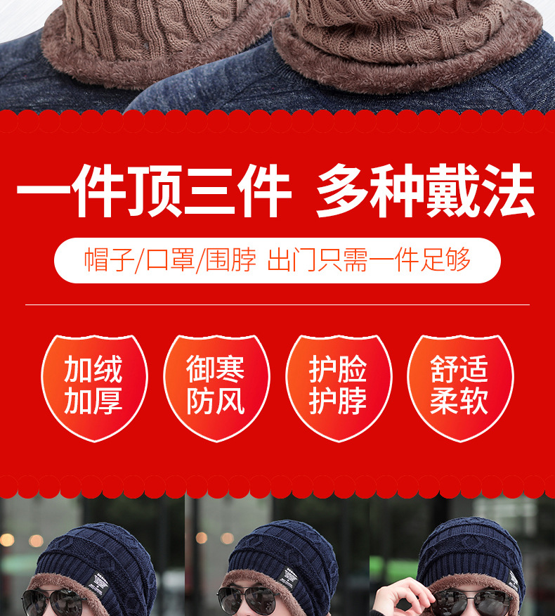 针织毛线帽男士秋冬季加绒加厚保暖冬天骑车防寒防风护脖百搭帽子