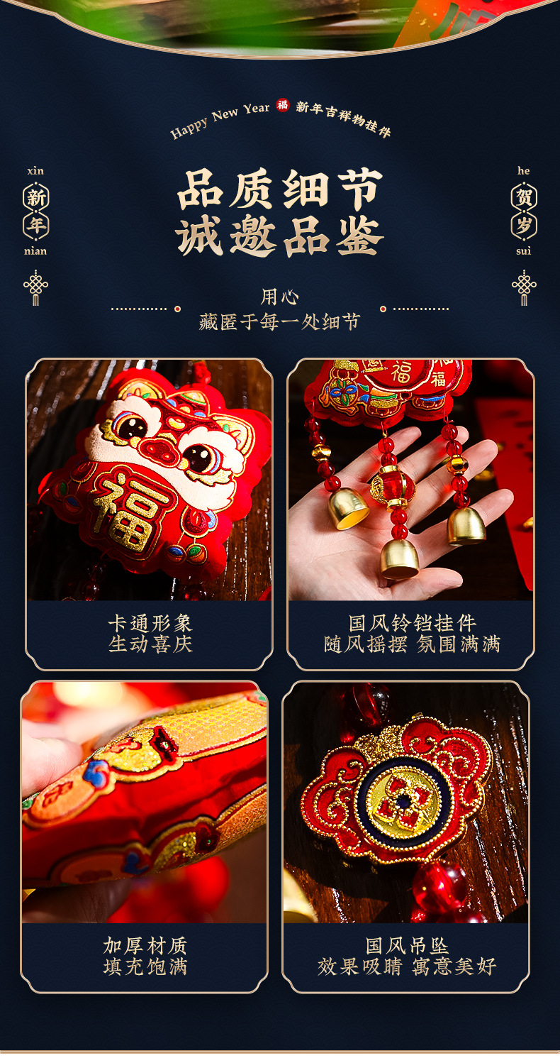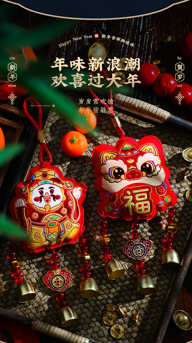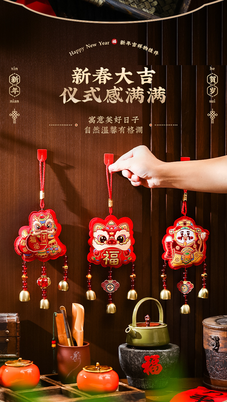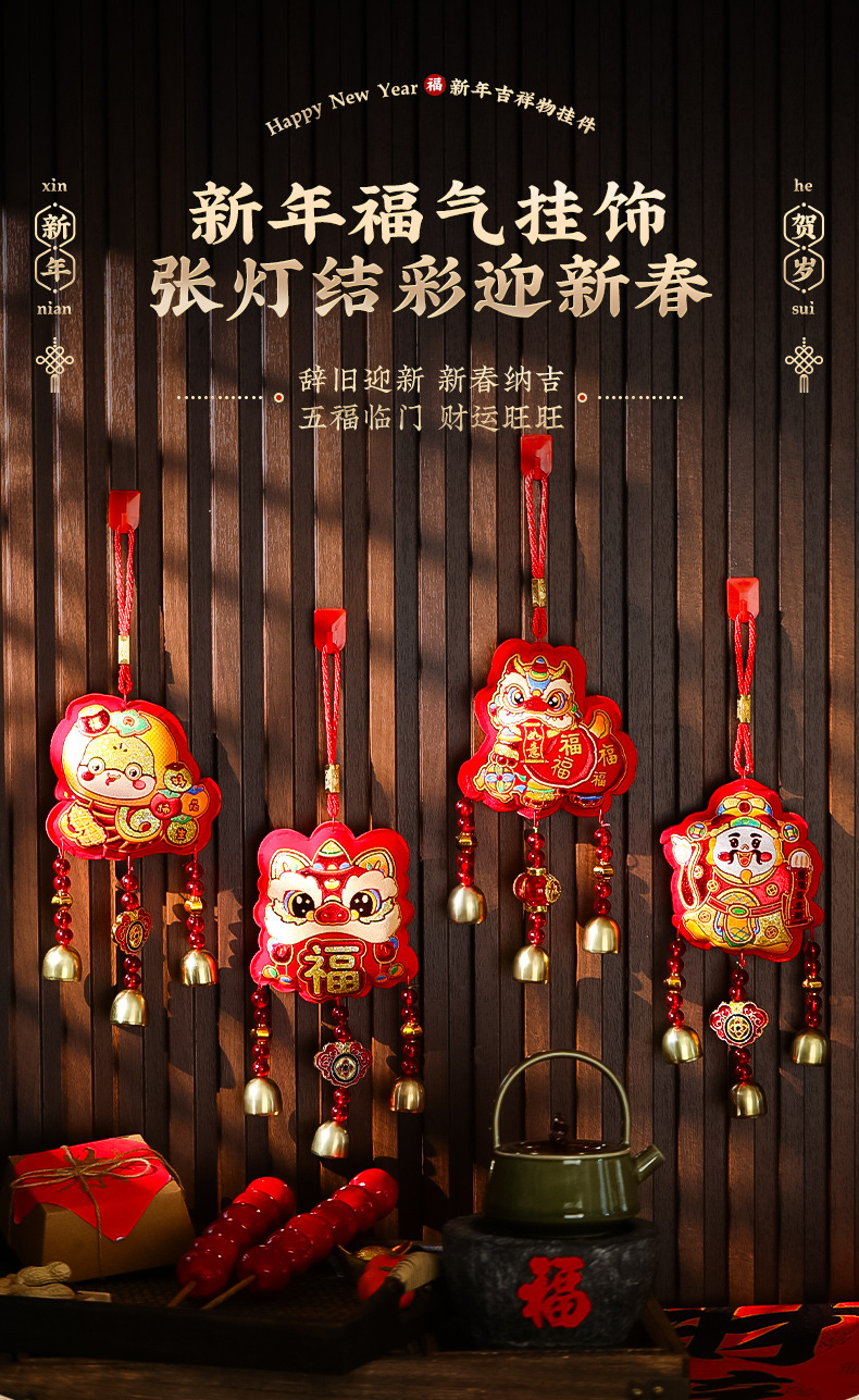 2025蛇年新年装饰挂件春节过年福字财神客厅室内醒狮风铃布置挂饰