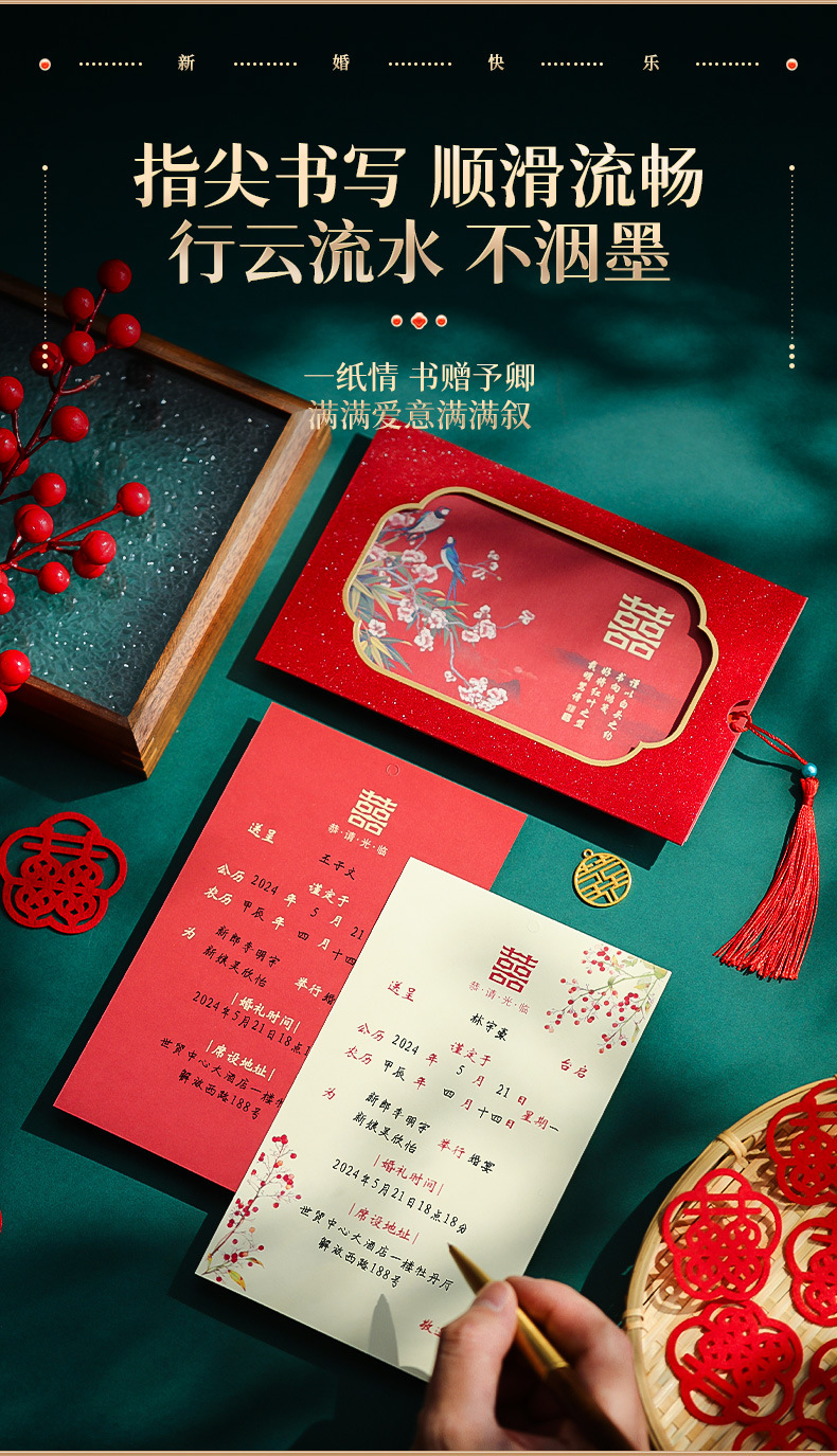 结婚婚礼请帖请柬婚宴喜帖2024高级感打印答谢纸质简约大气邀请函