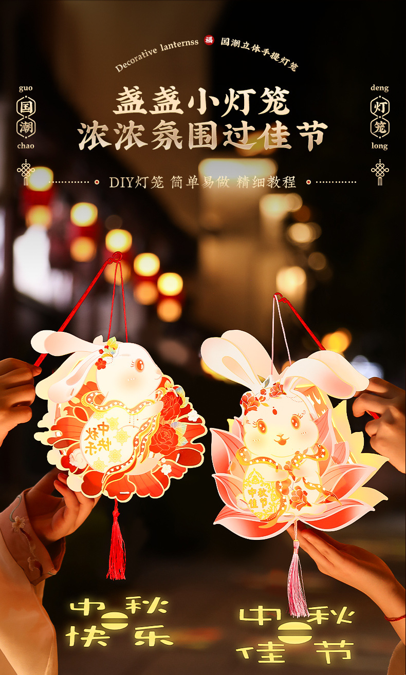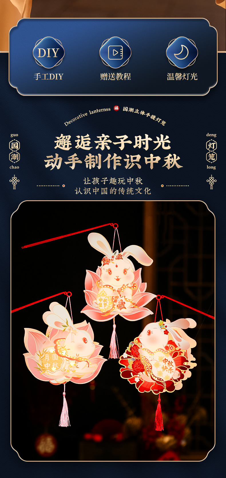 蛇年灯笼兔子花灯2025年新款 手工diy材料包儿童手提发光古风宫灯