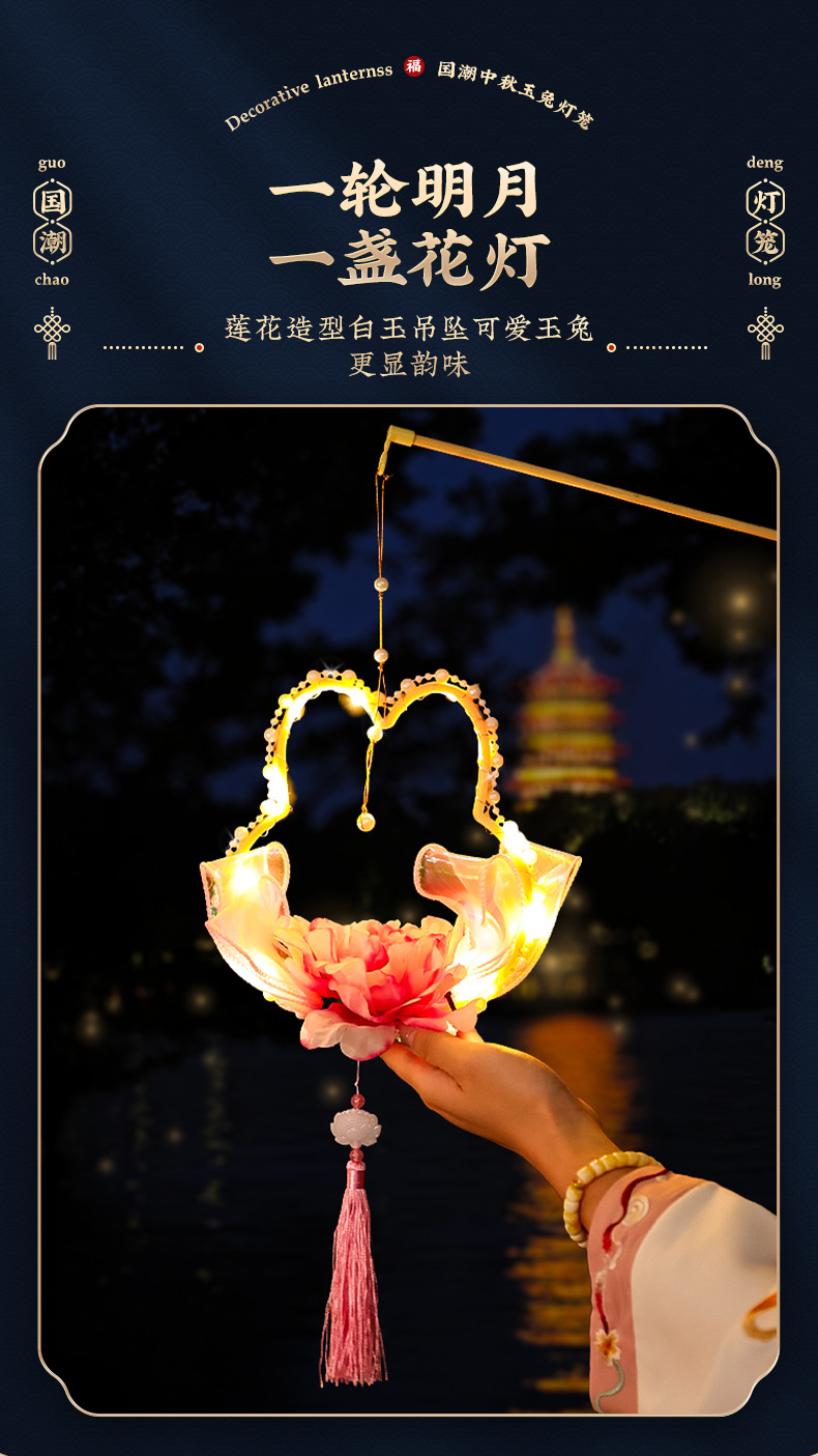 元宵节兔子灯笼2025新年手工diy材料包 儿童手提发光玉兔花灯摆摊