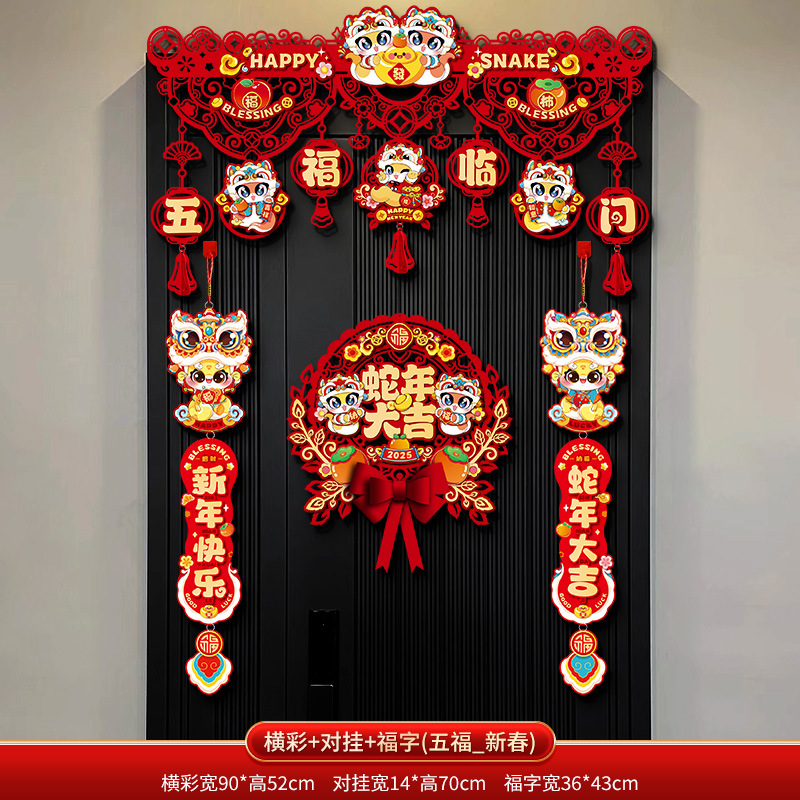 新年福字门帘装饰挂件2025新款春节家用拉花蛇年挂饰过年场景布置