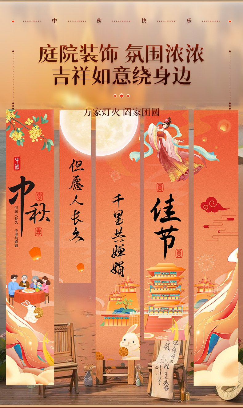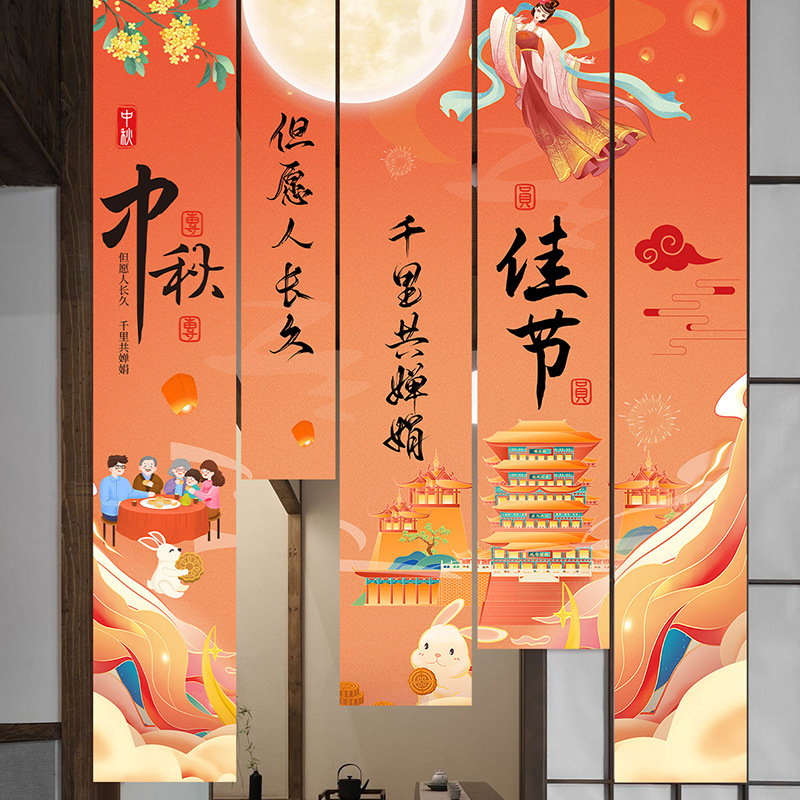 中秋节挂布横幅氛围布置装饰场景活动场景氛围门店铺户外拍照道具