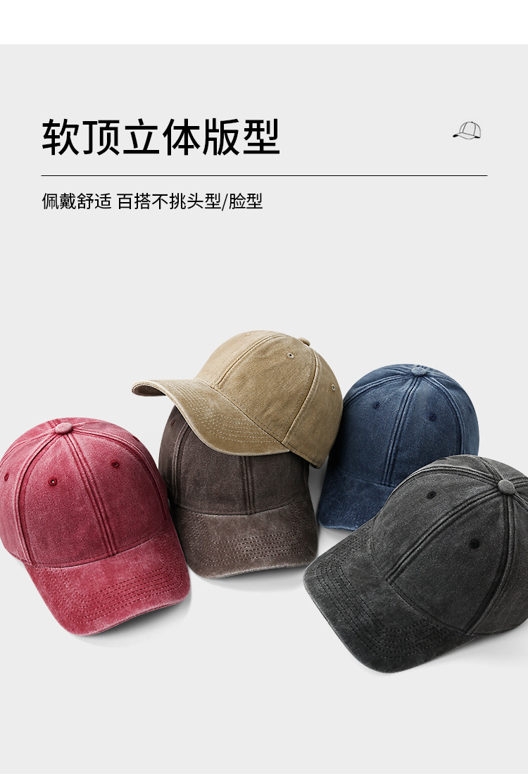 水洗牛仔棒球帽女夏显脸小复古做旧灰色鸭舌帽男款秋冬大头围帽子