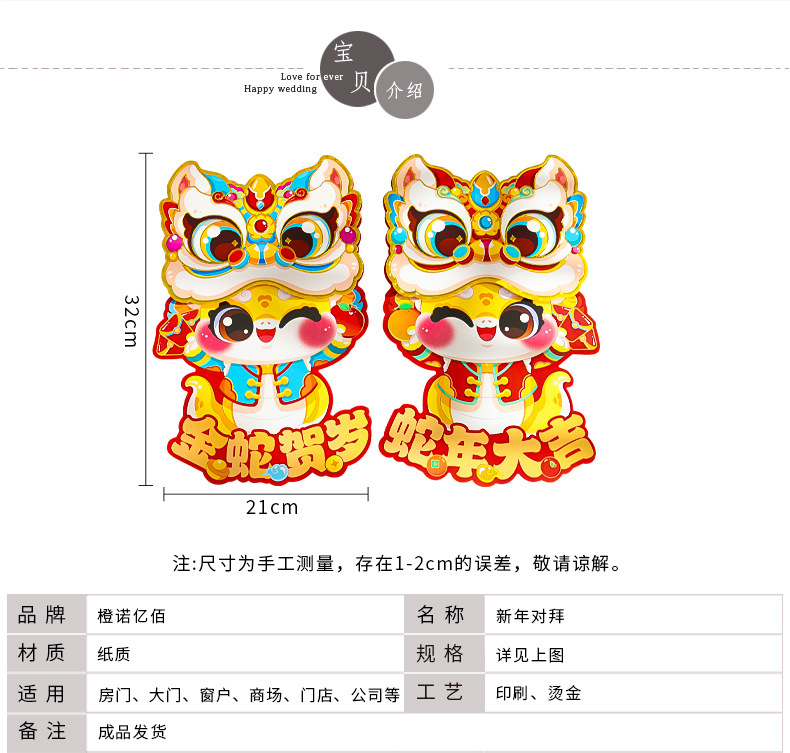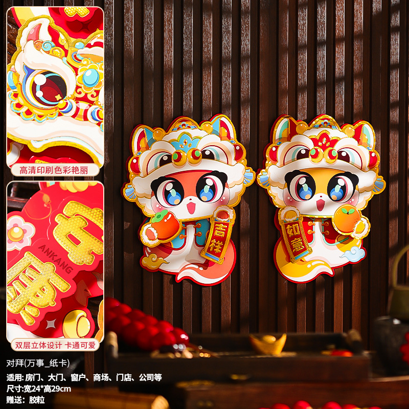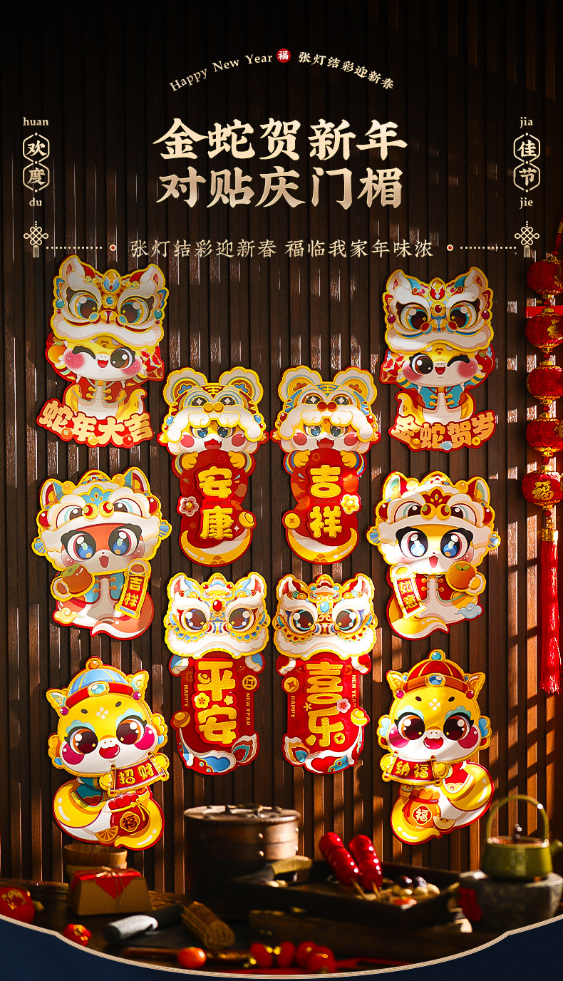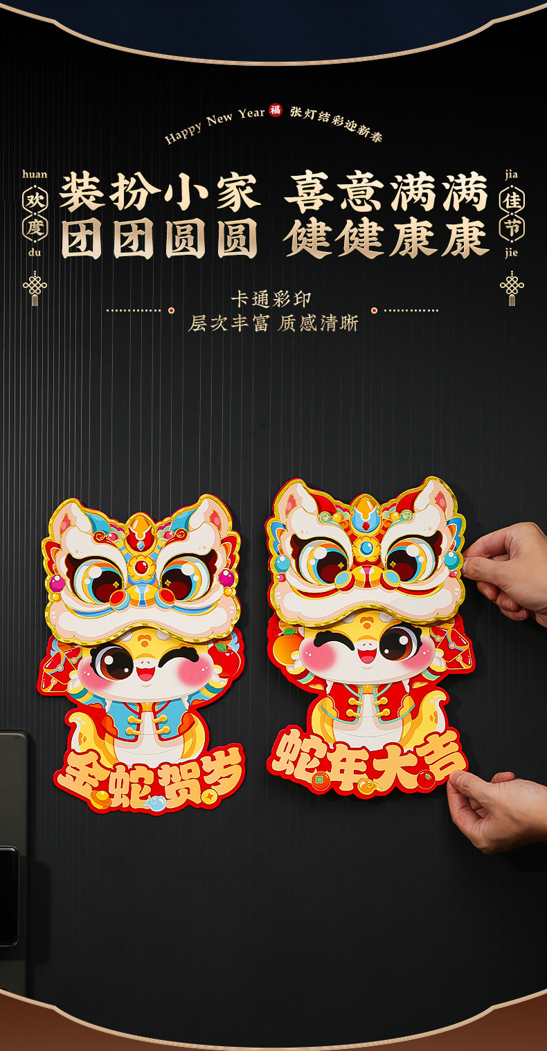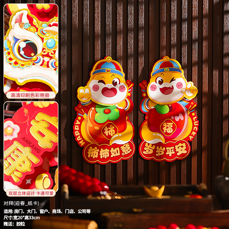 新年装饰品蛇年福字大门贴2025新款春节过年立体生肖对拜布置窗花