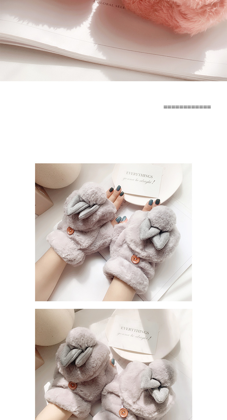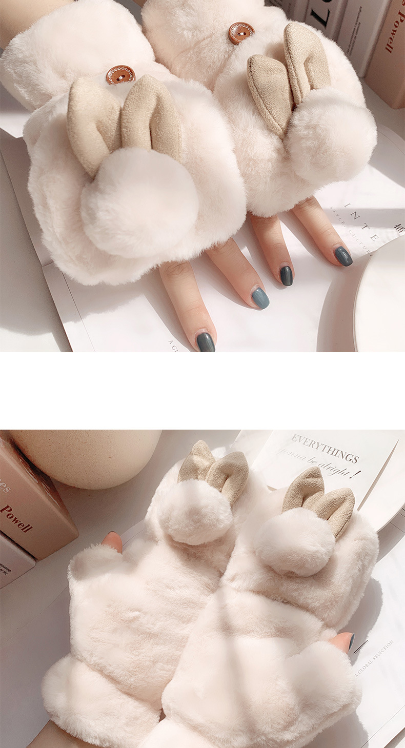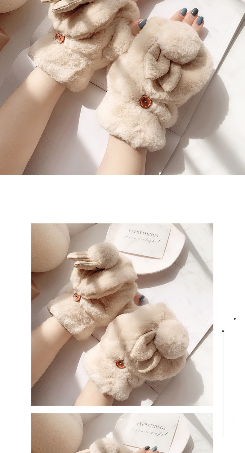 手套女冬天韩版百搭ins可爱少女学生萌兔子翻盖露指毛绒加绒手套