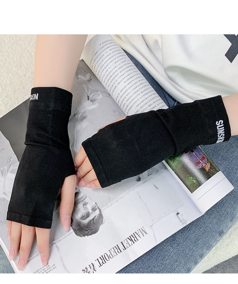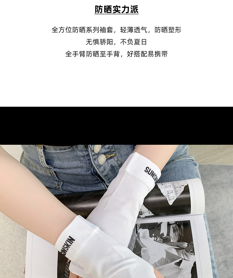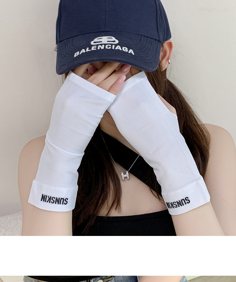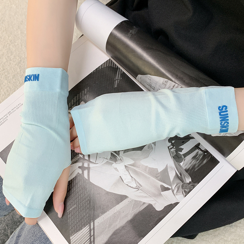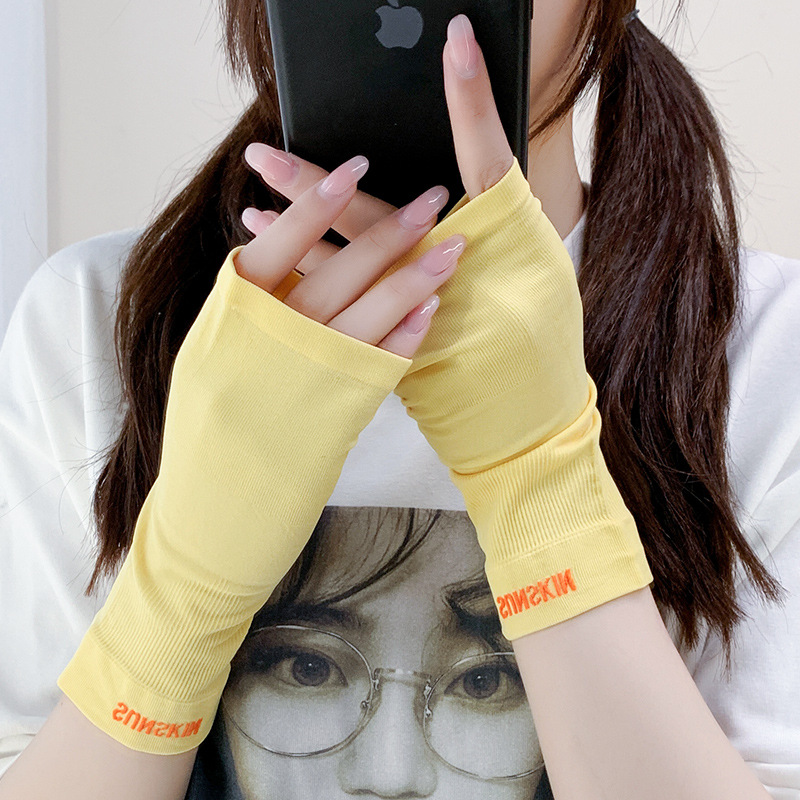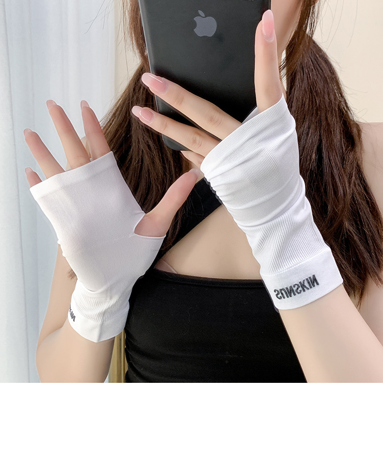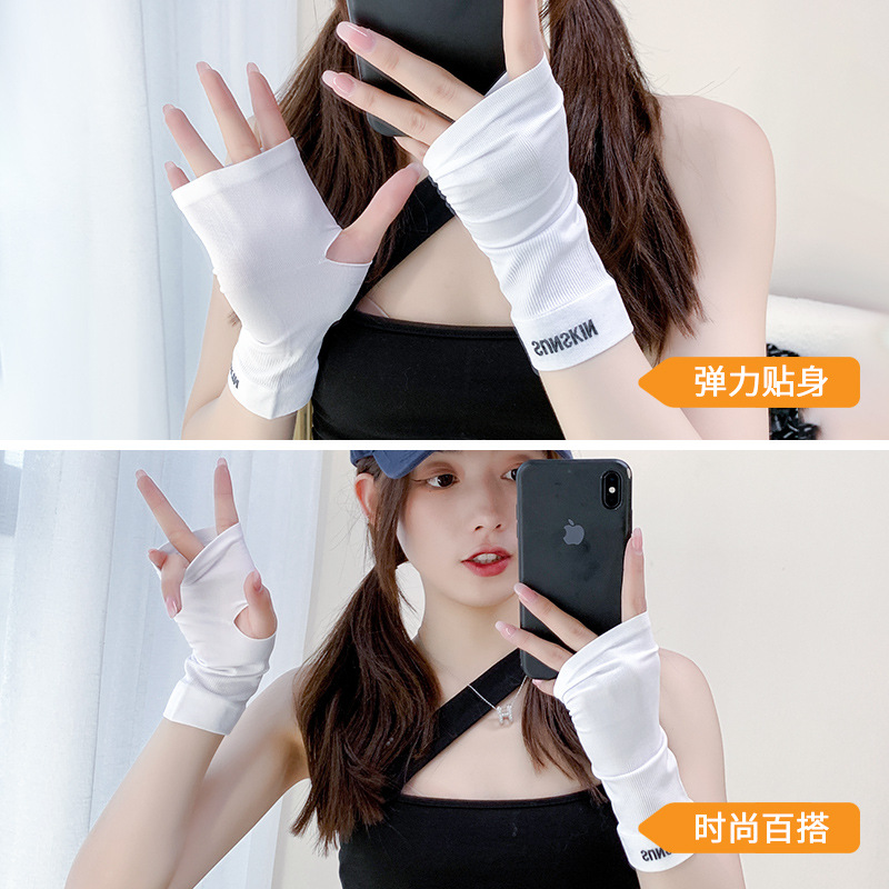 短款冰丝半指防晒手套袖套女骑行开车运动夏出游字母冰袖百搭潮男