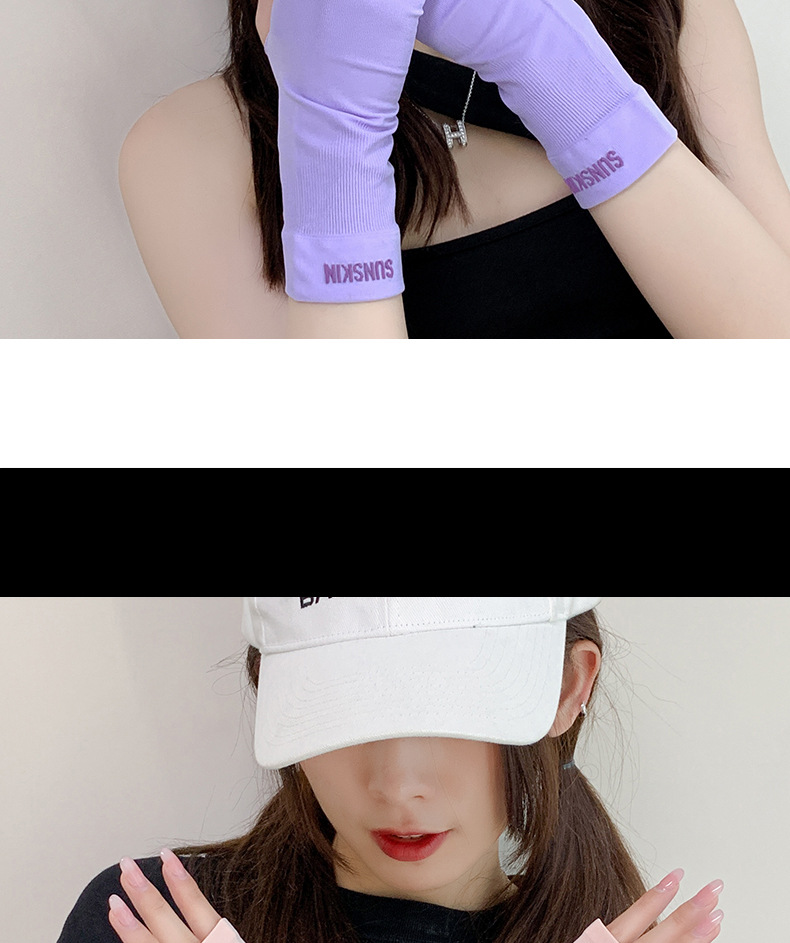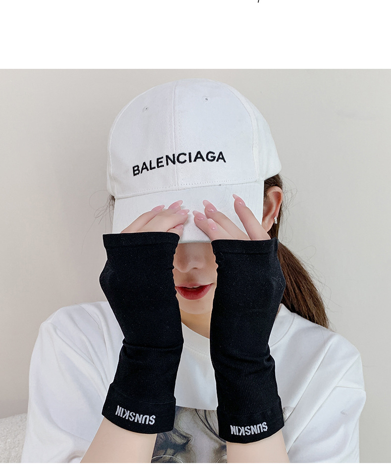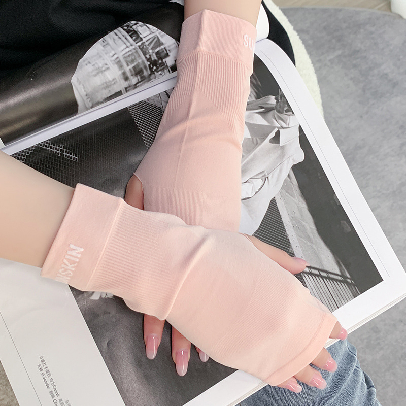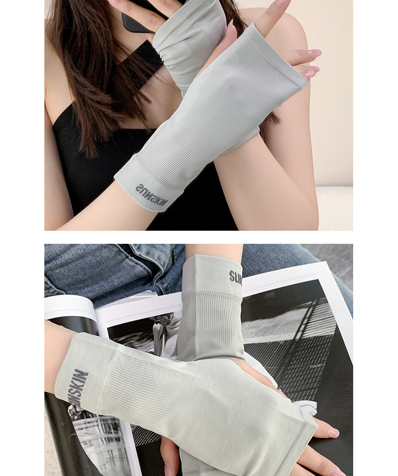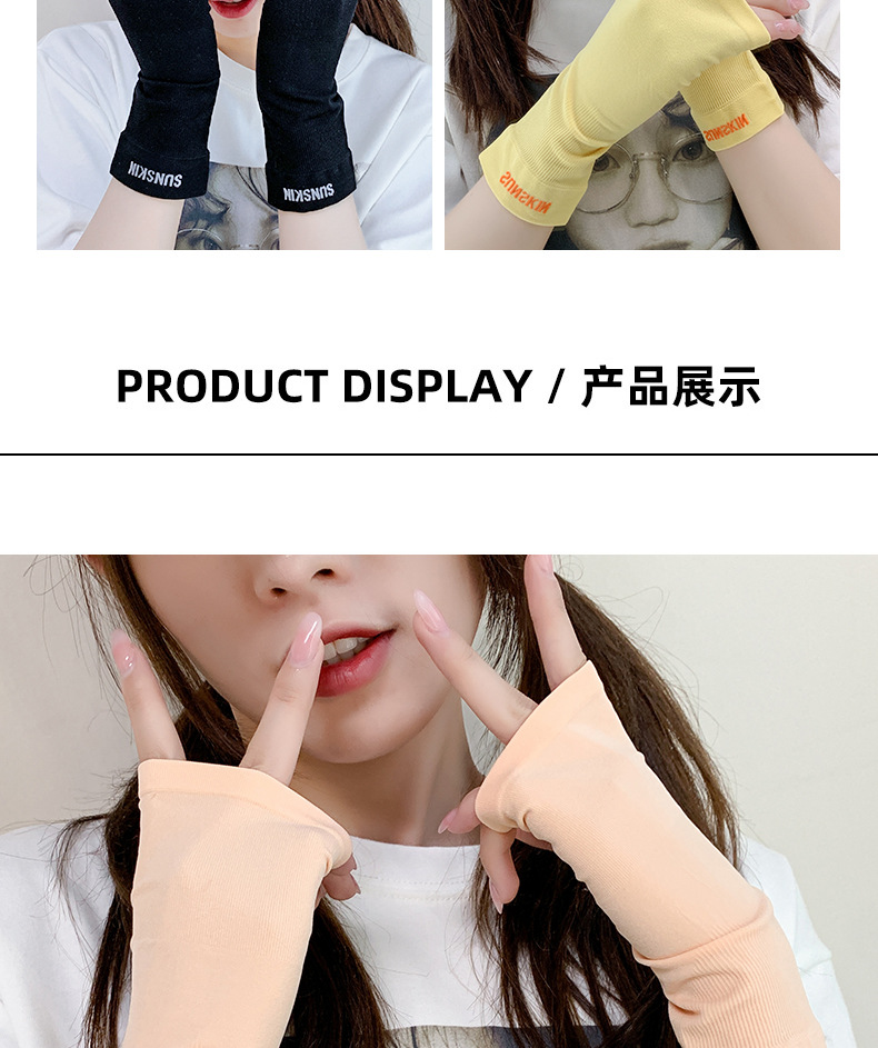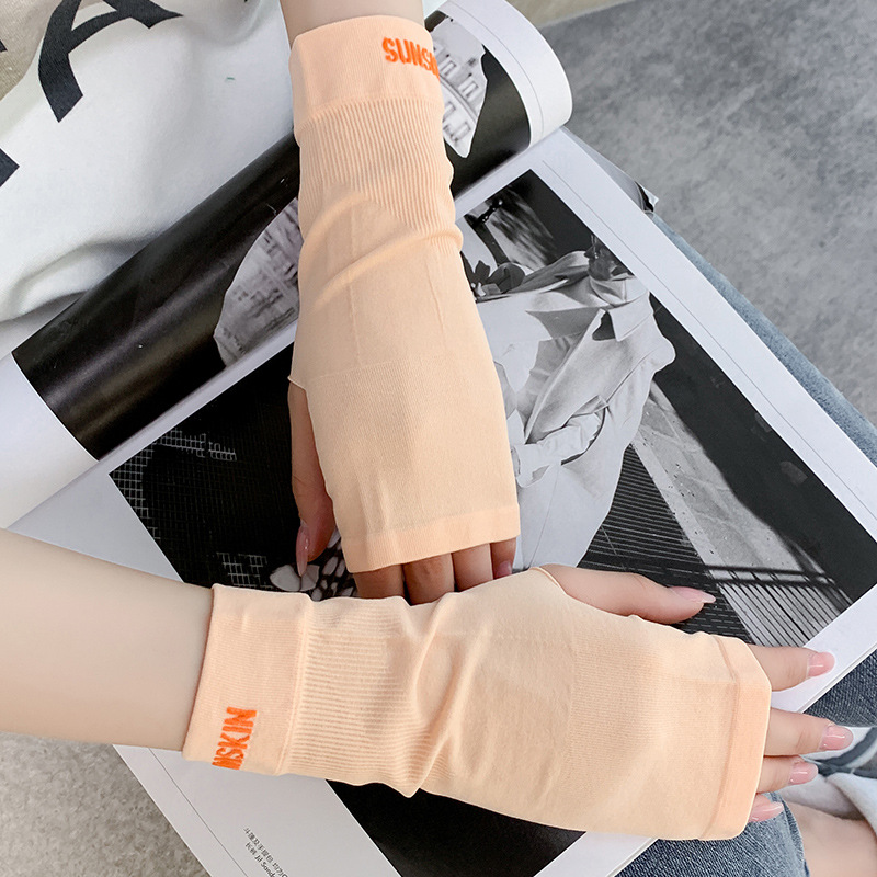 短款冰丝半指防晒手套袖套女骑行开车运动夏出游字母冰袖百搭潮男