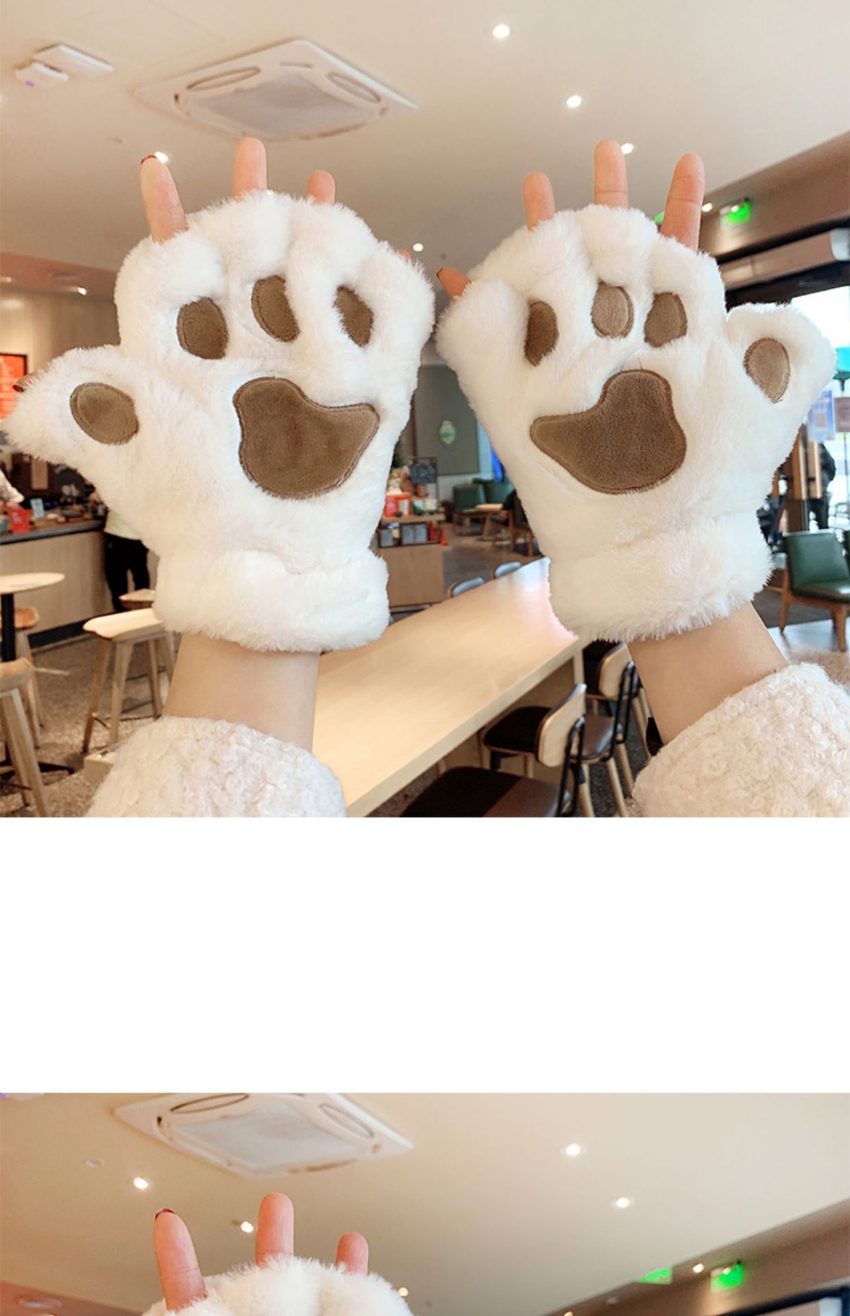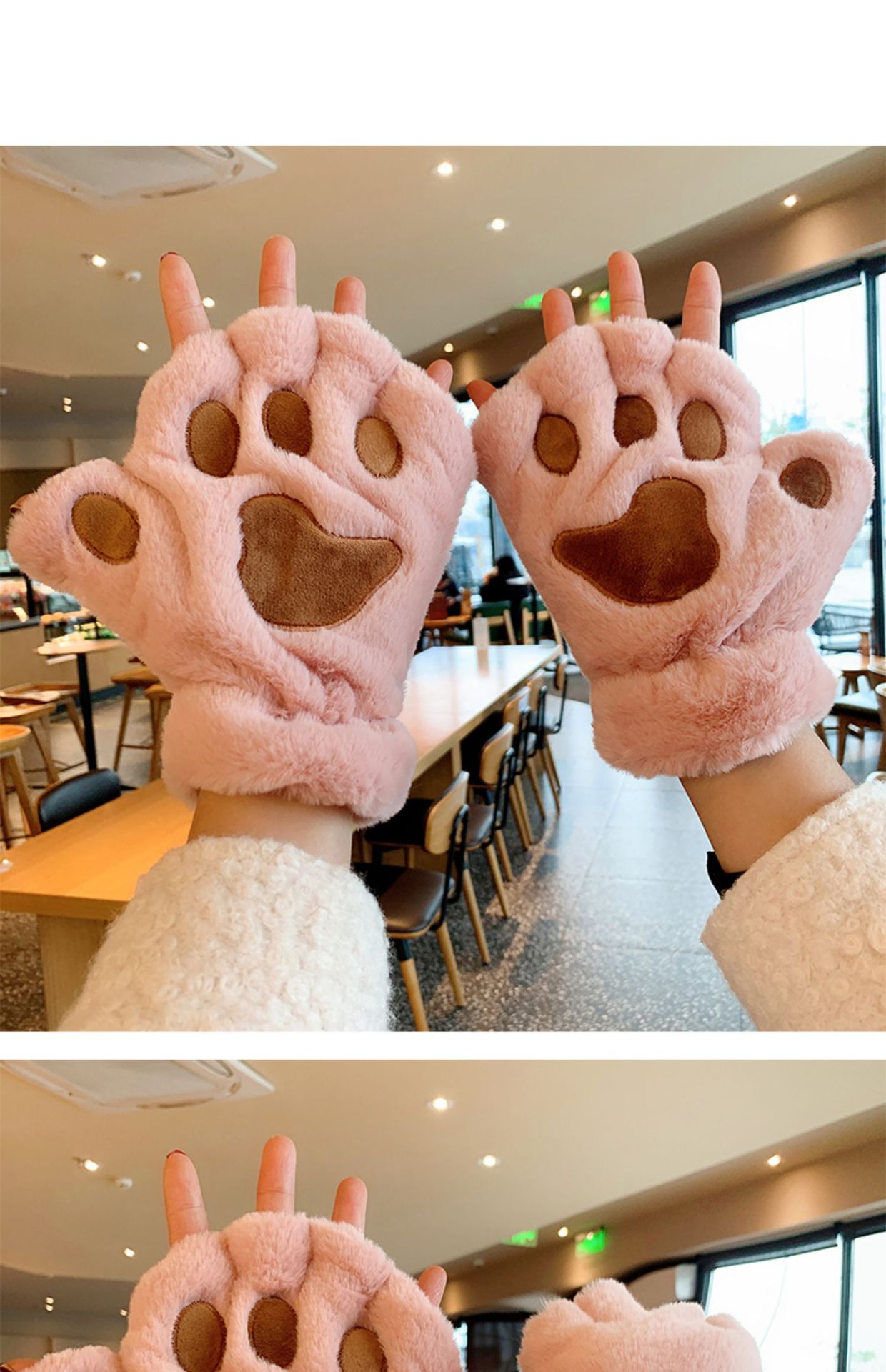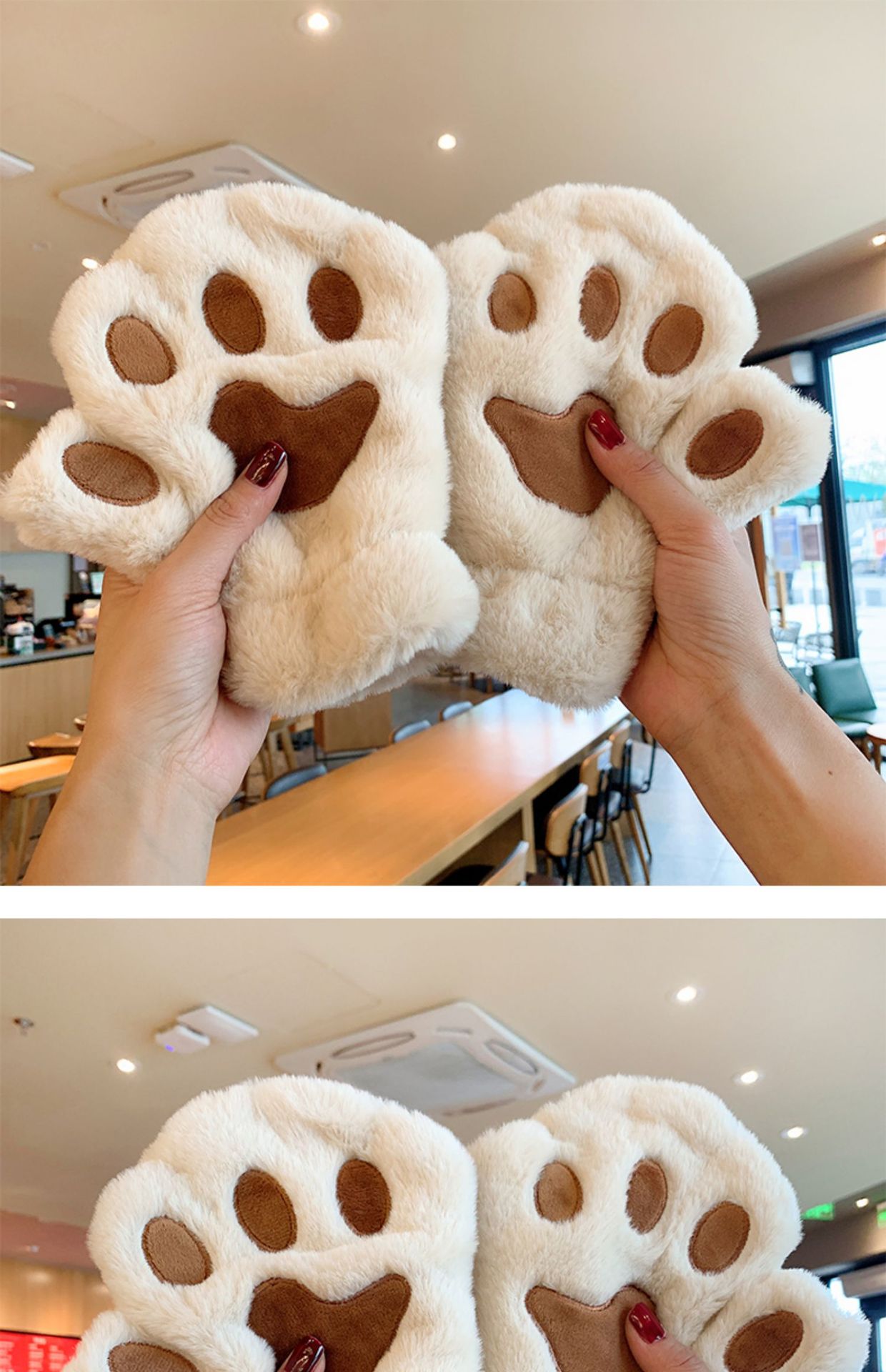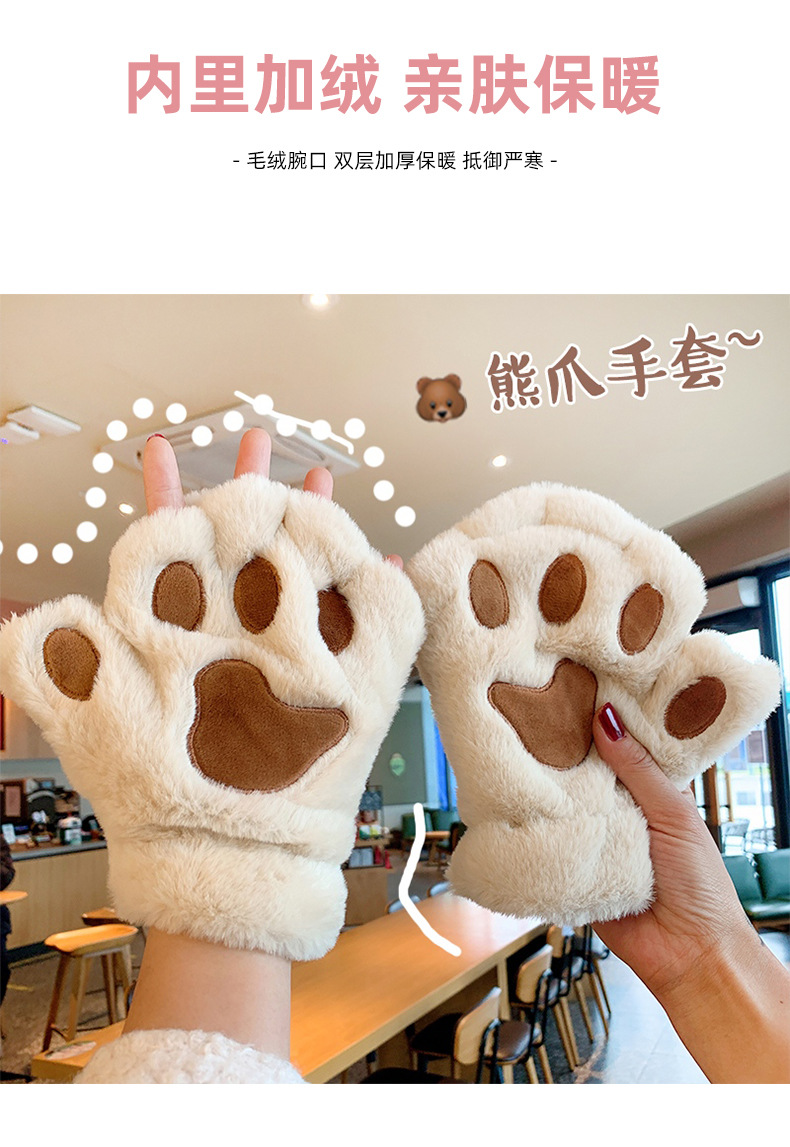可爱小熊掌毛茸茸手套女生冬季保暖加绒加厚熊爪骑车女士冬天情侣
