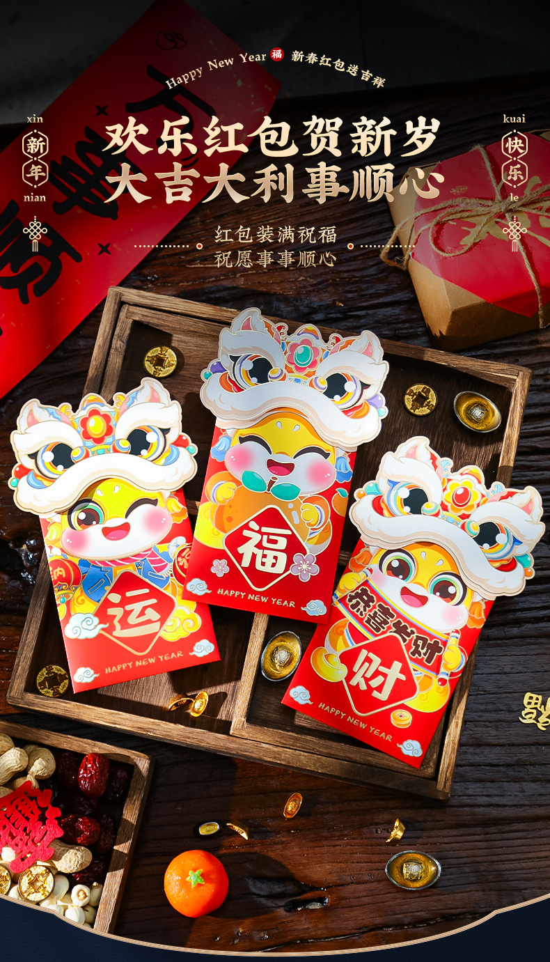 蛇年红包2025春节过年创意个性压岁钱包新款新年卡通生肖利是封袋
