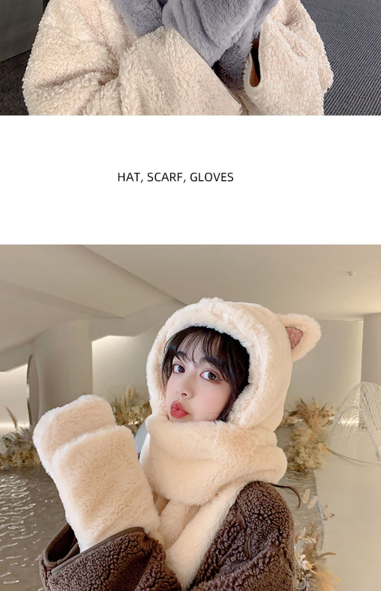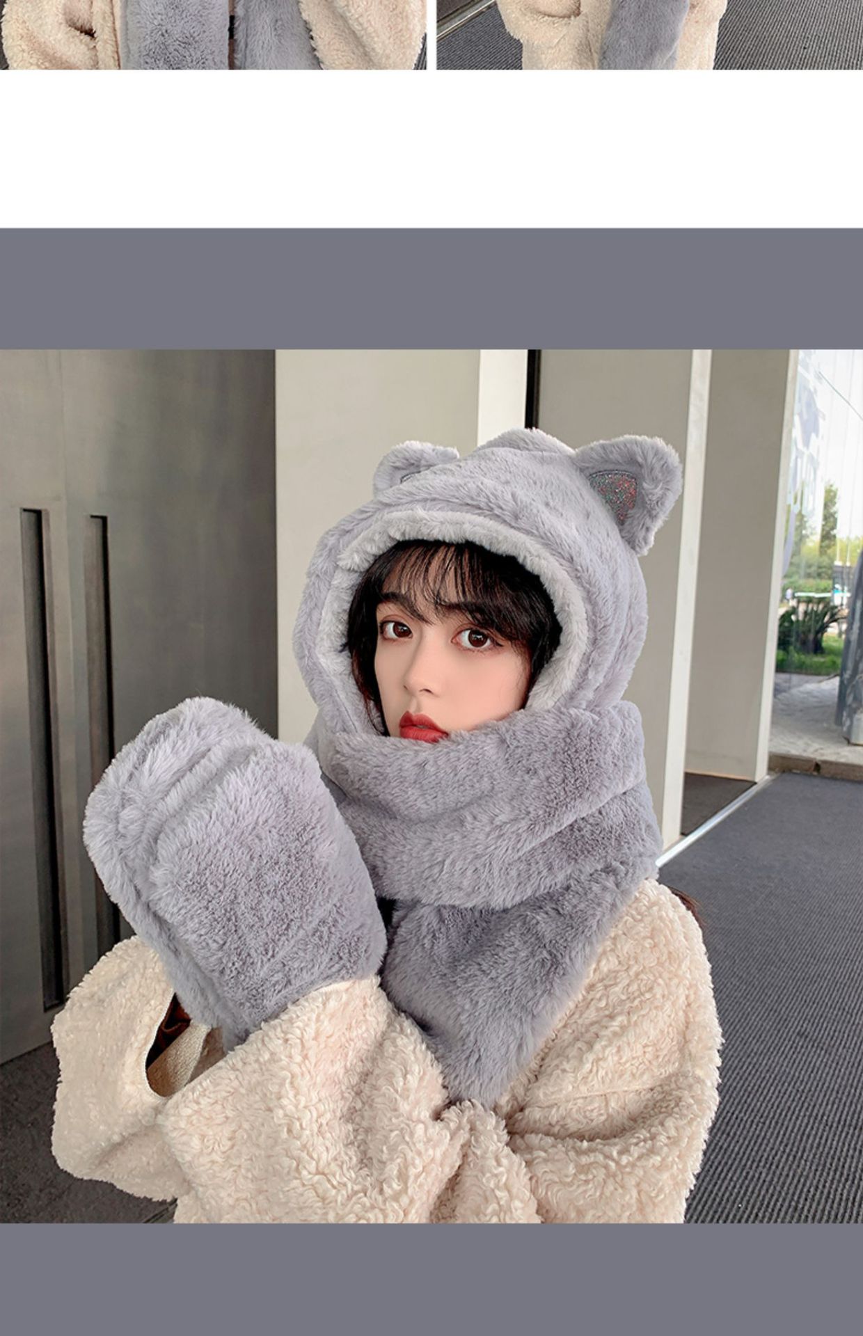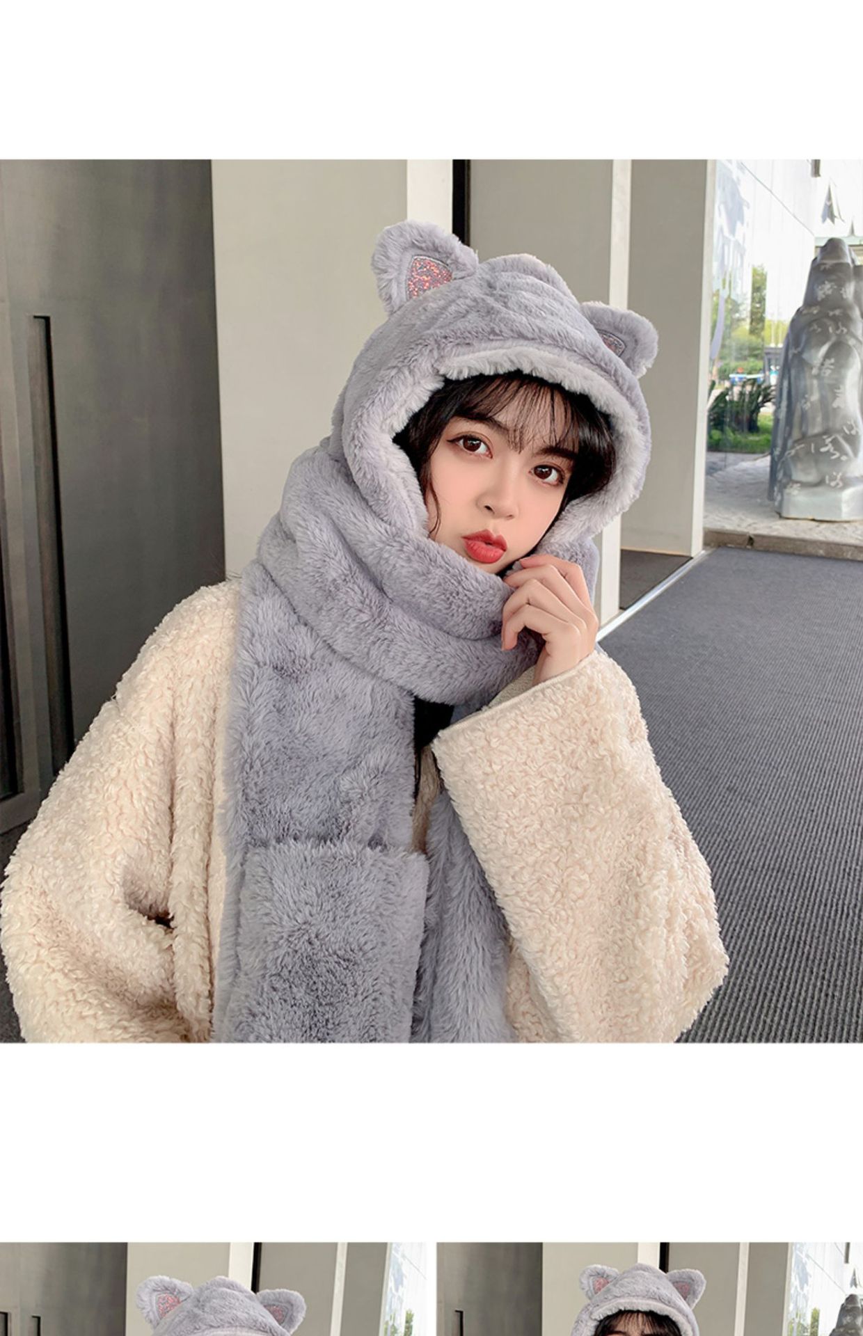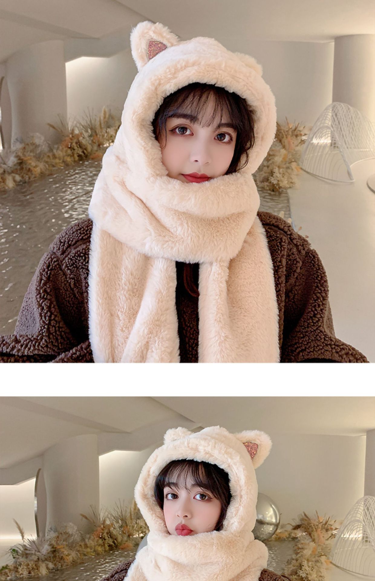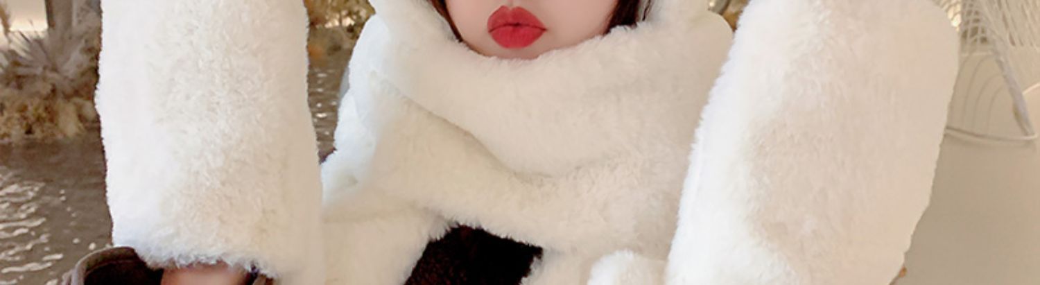 秋冬女保暖围巾帽子一体连帽可爱围脖韩版小熊毛绒护耳帽百搭冬季