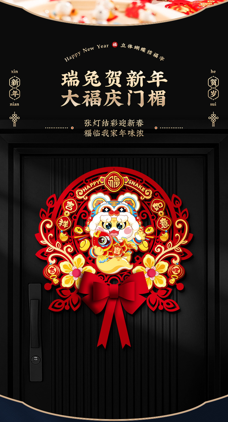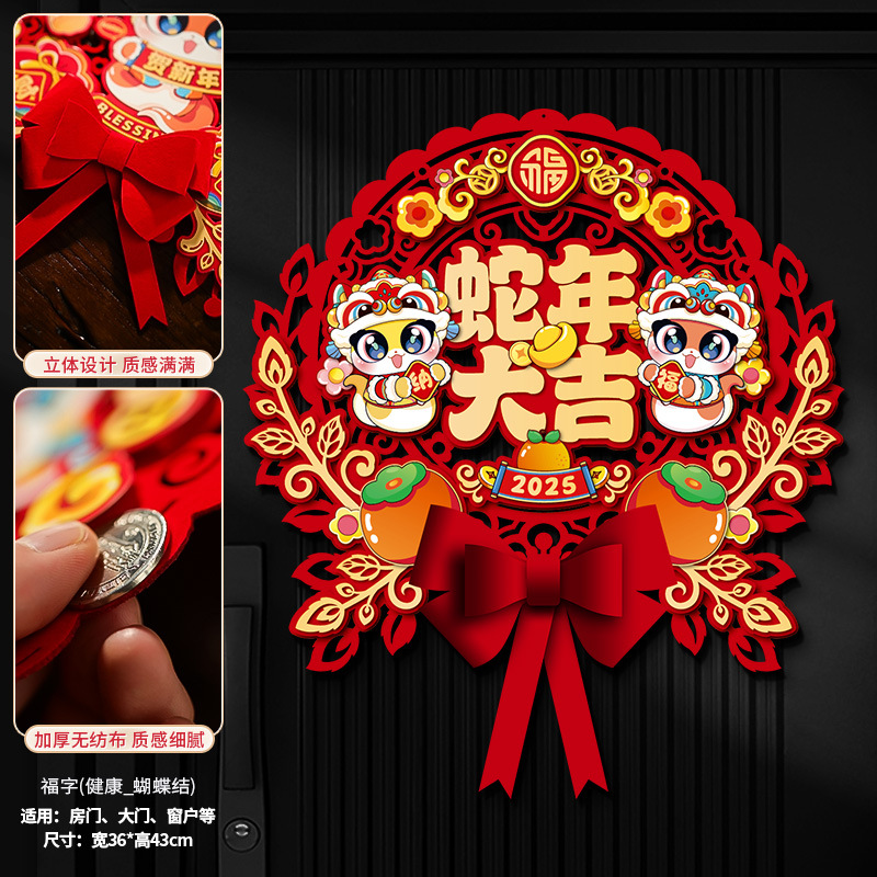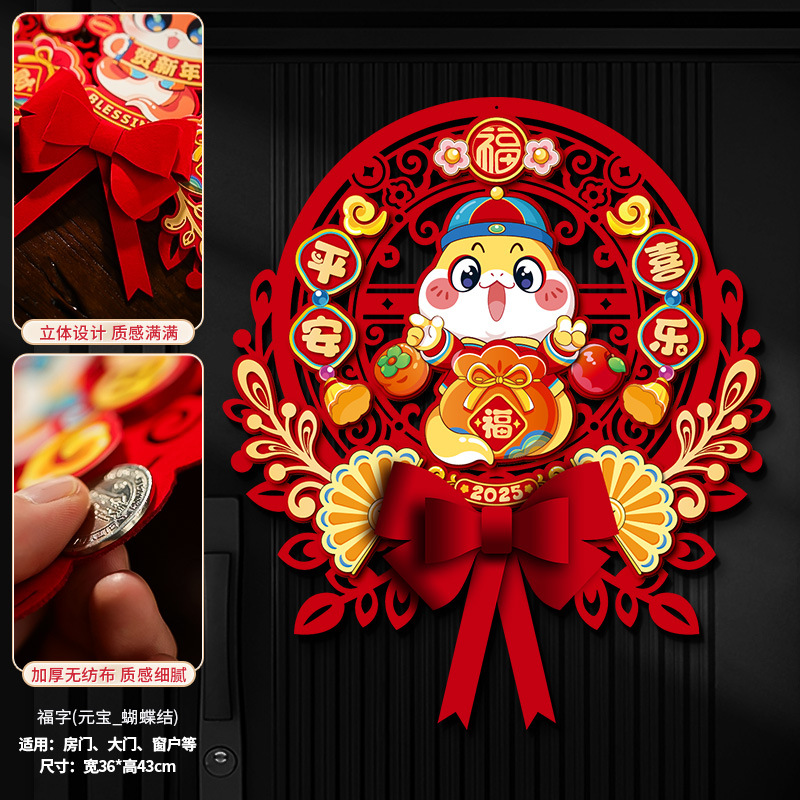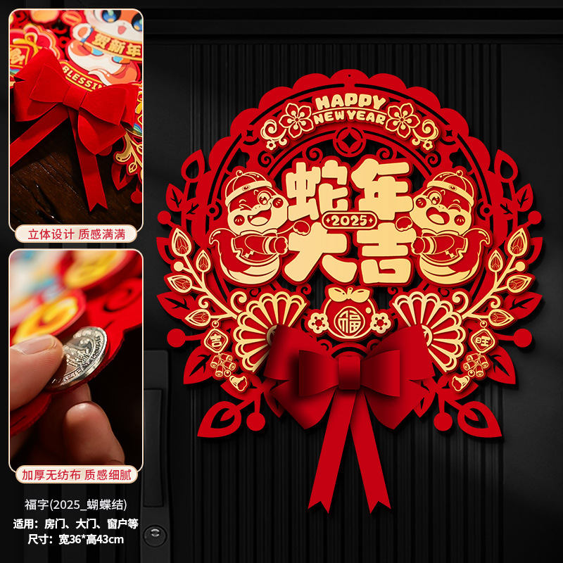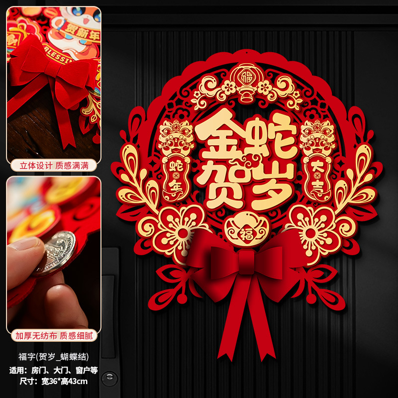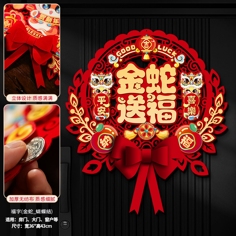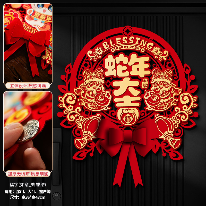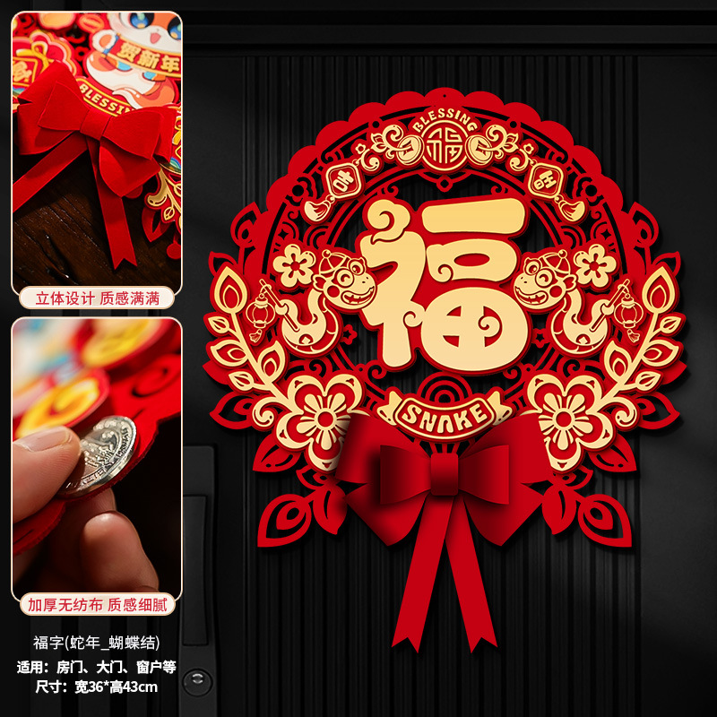 蛇年福字门贴2025年新款春节年货入户门立体过年新年装饰布置用品