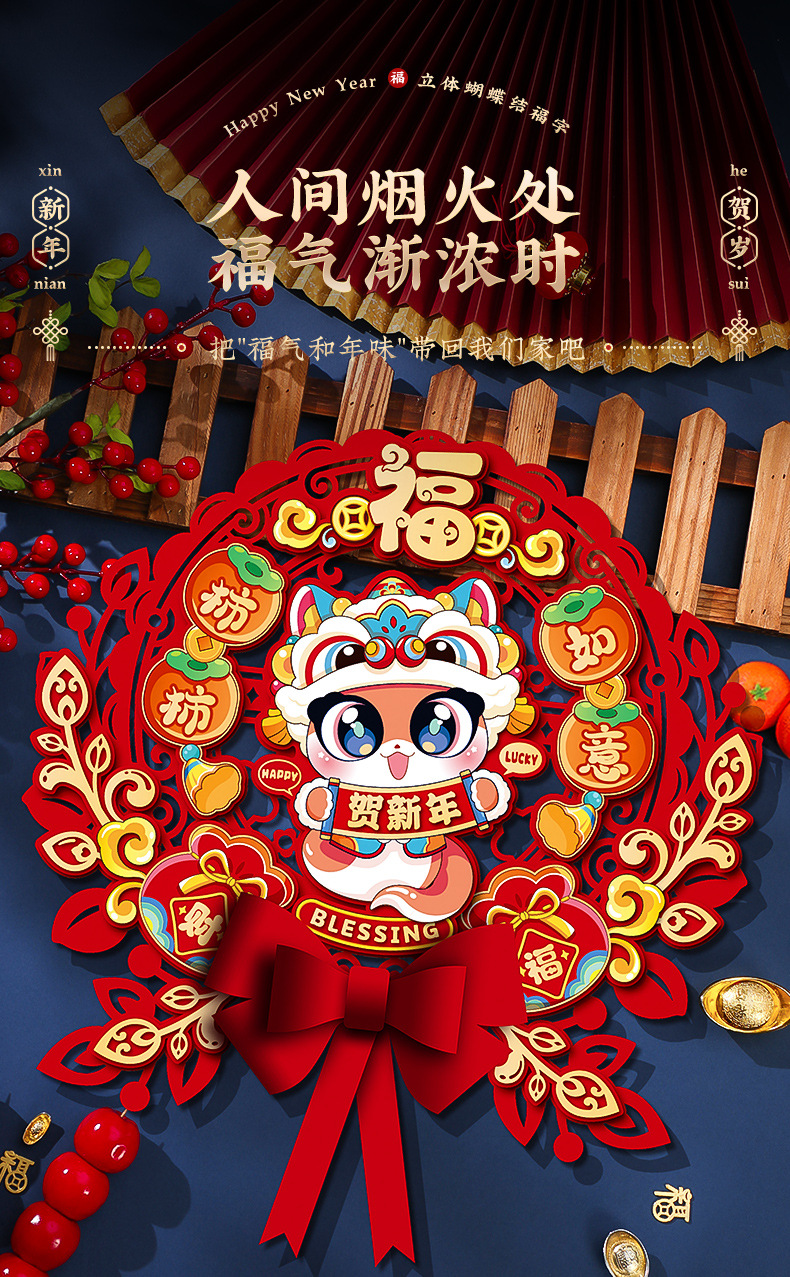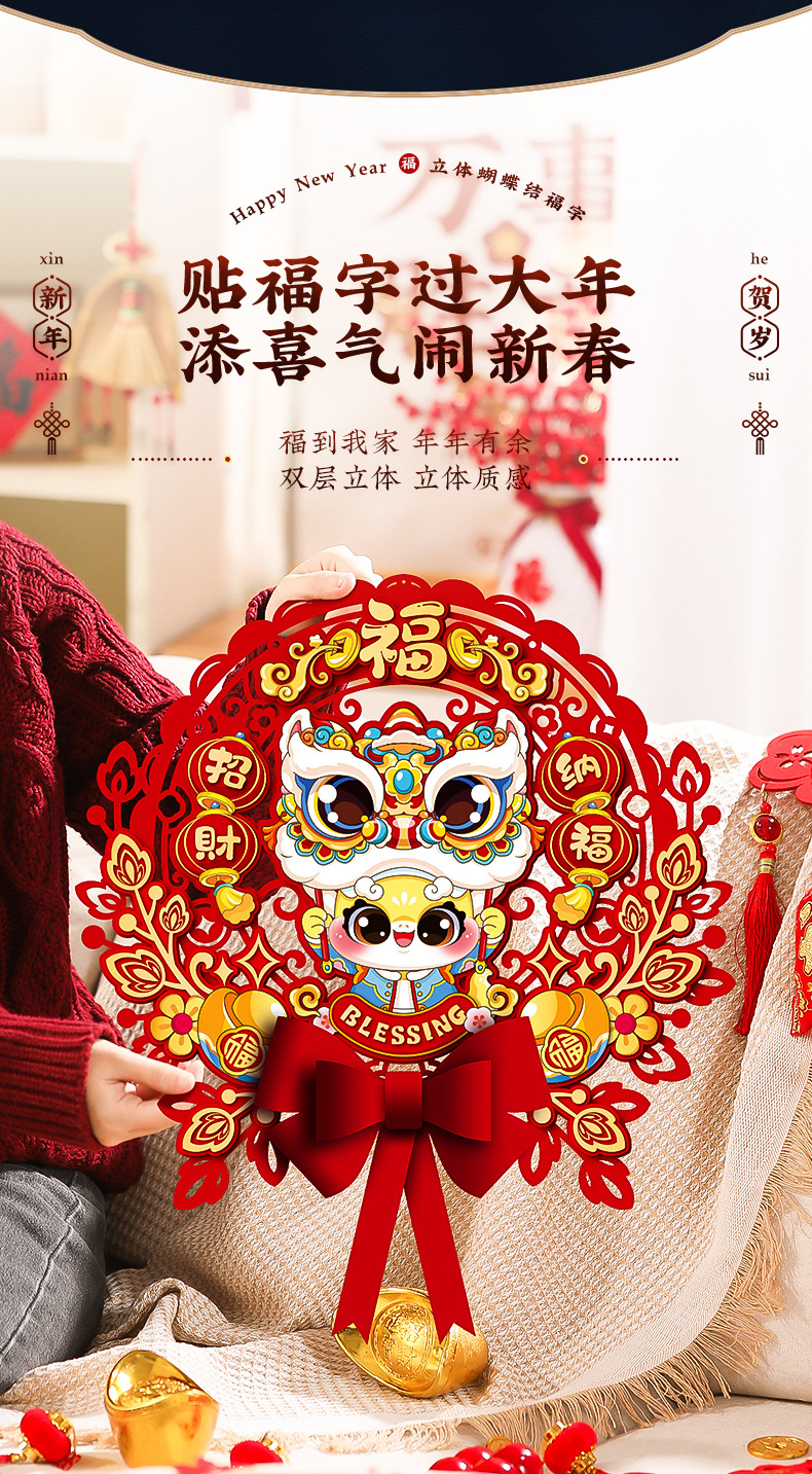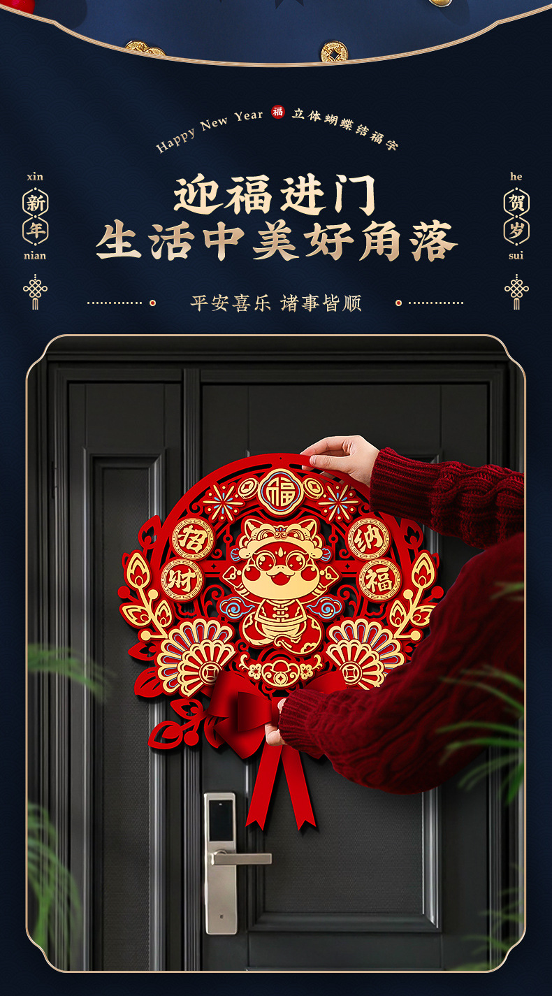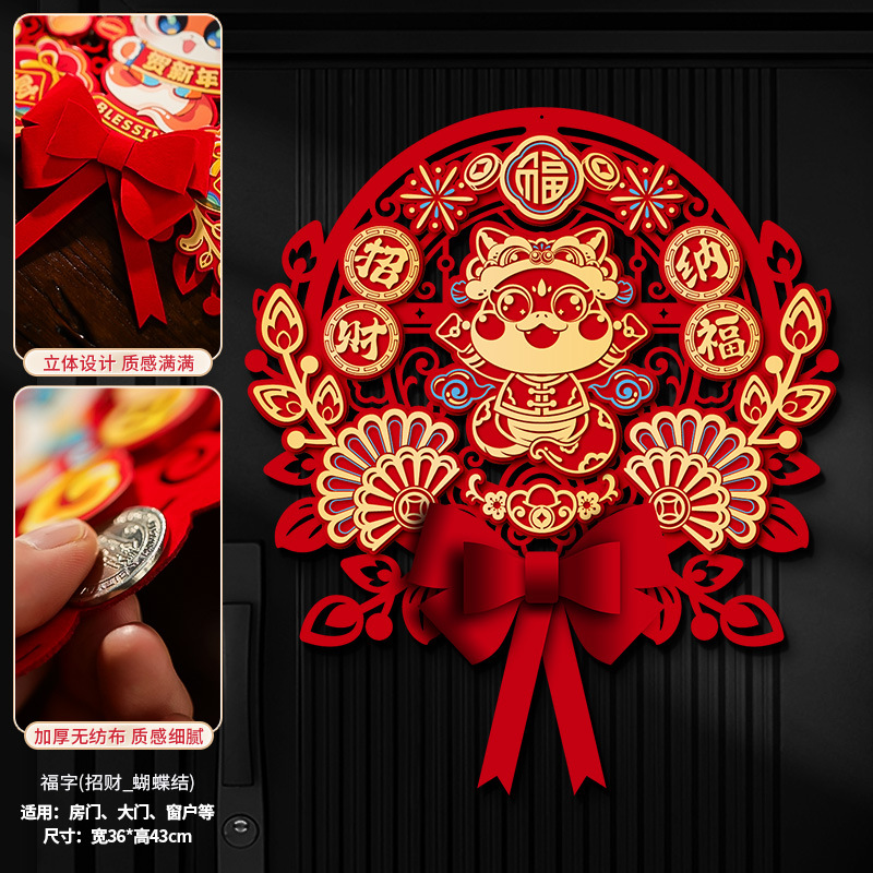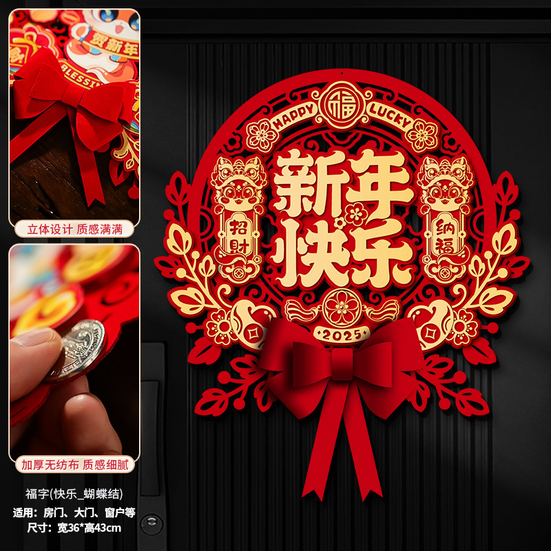 蛇年福字门贴2025年新款春节年货入户门立体过年新年装饰布置用品