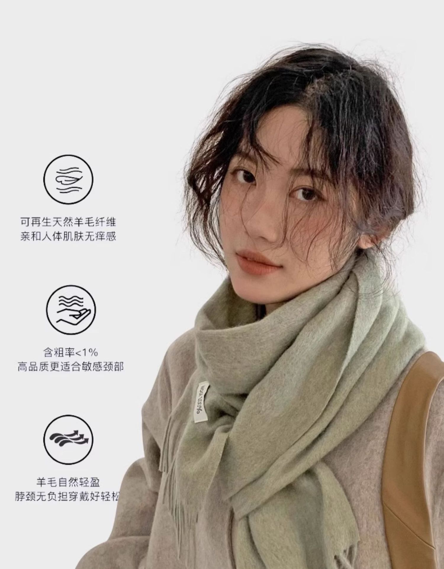 纯羊毛男士围巾2023新款冬季百搭简约年轻人纯色围脖女生生日礼物