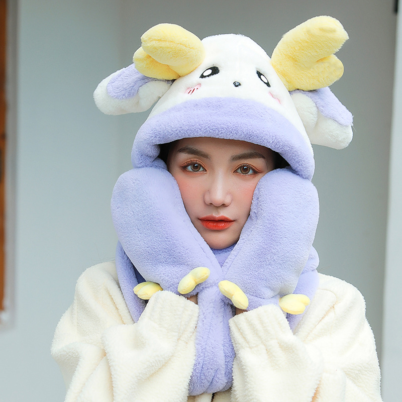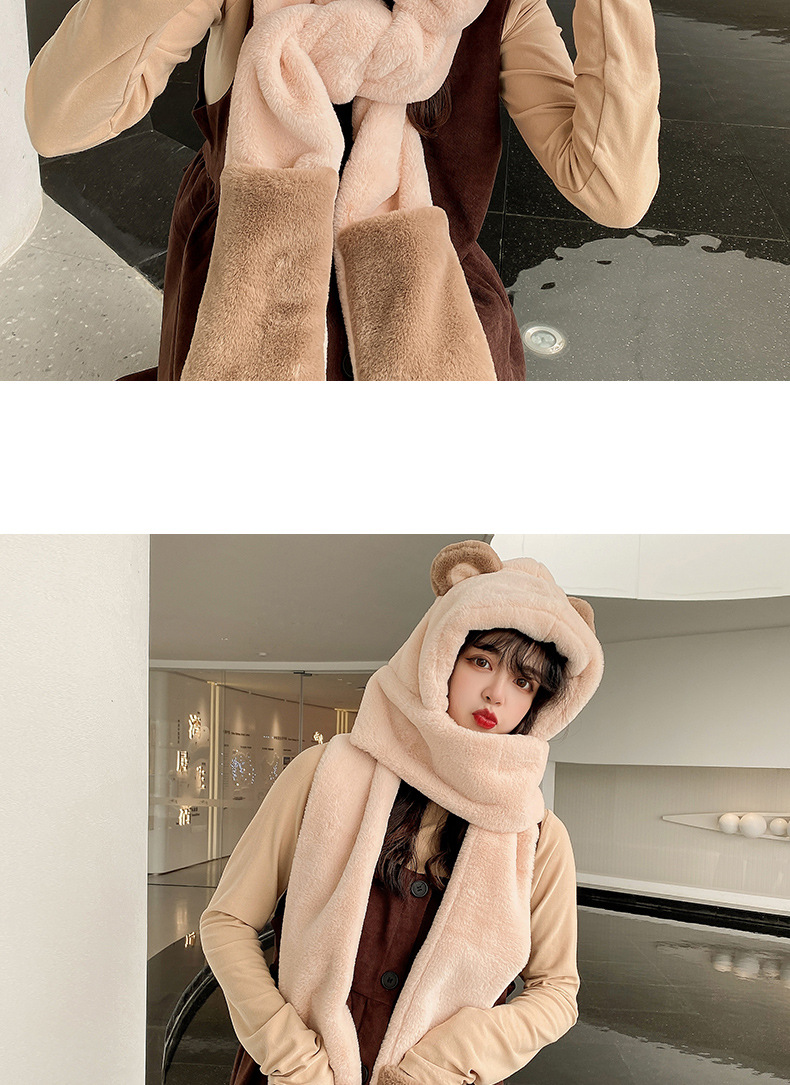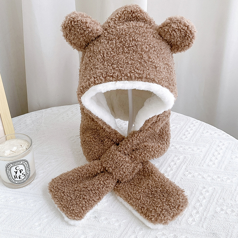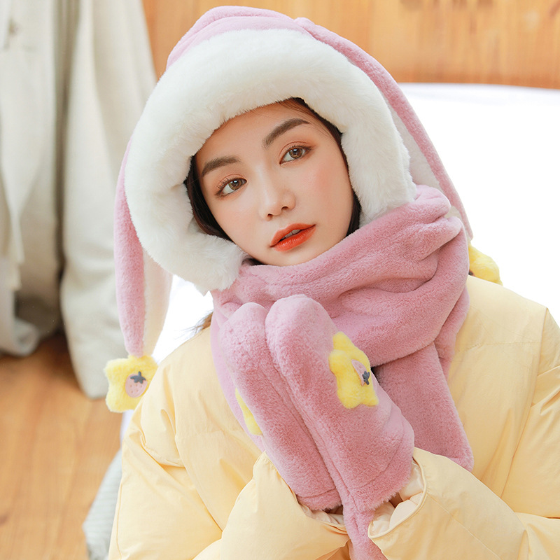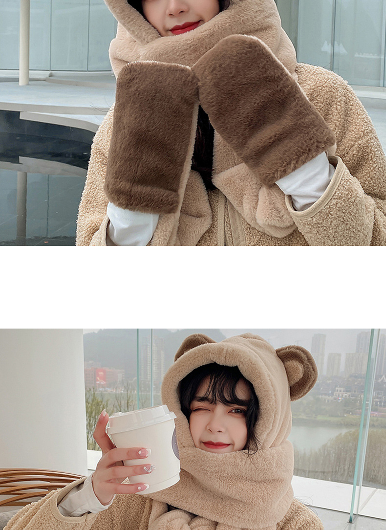 帽子三件套新款冬天韩版小熊帽子女围脖连帽秋冬季围巾手套一体帽