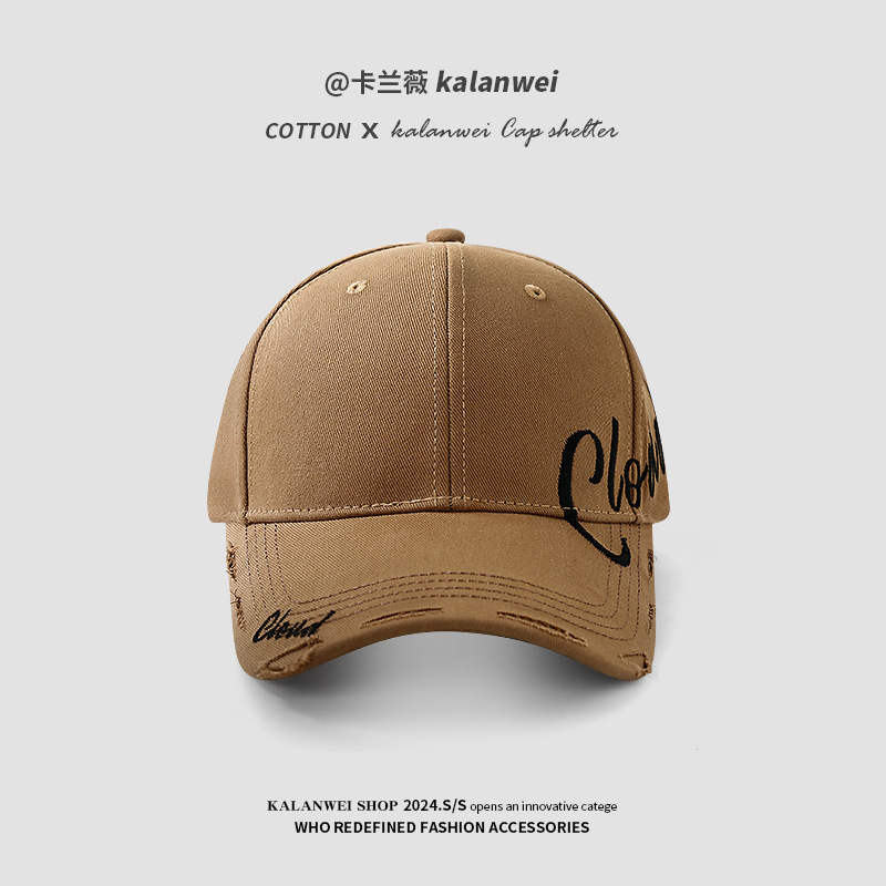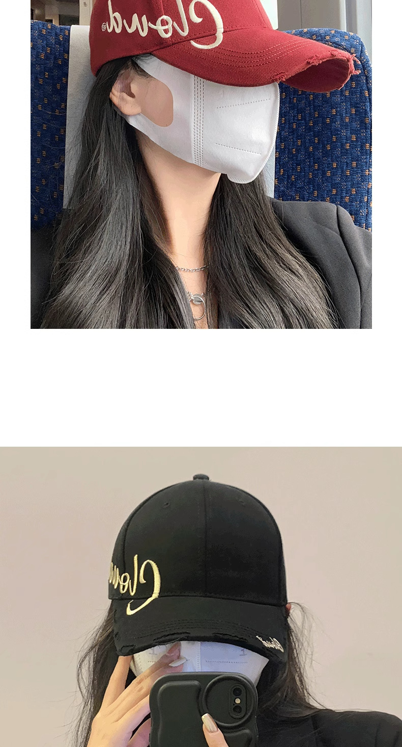 黑色破洞鸭舌帽女夏季字母大头围帽子棒球帽遮阳韩版帽子男潮刺绣