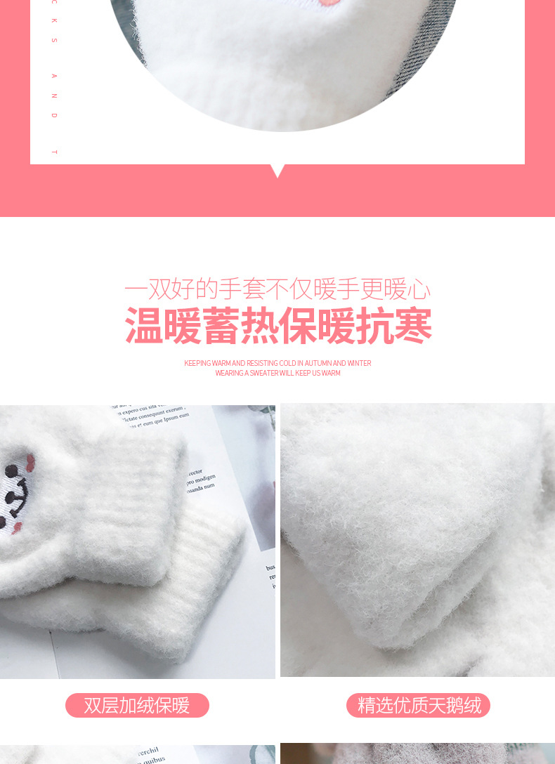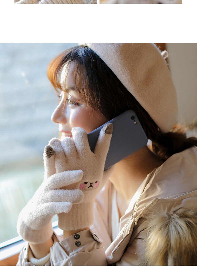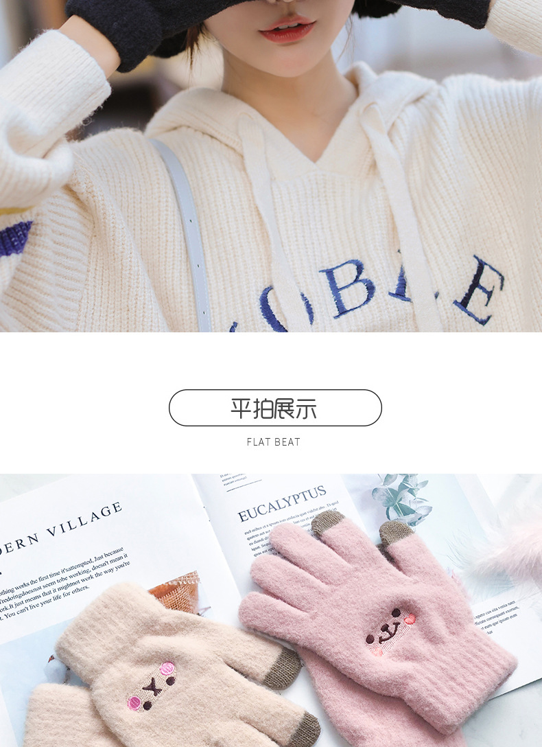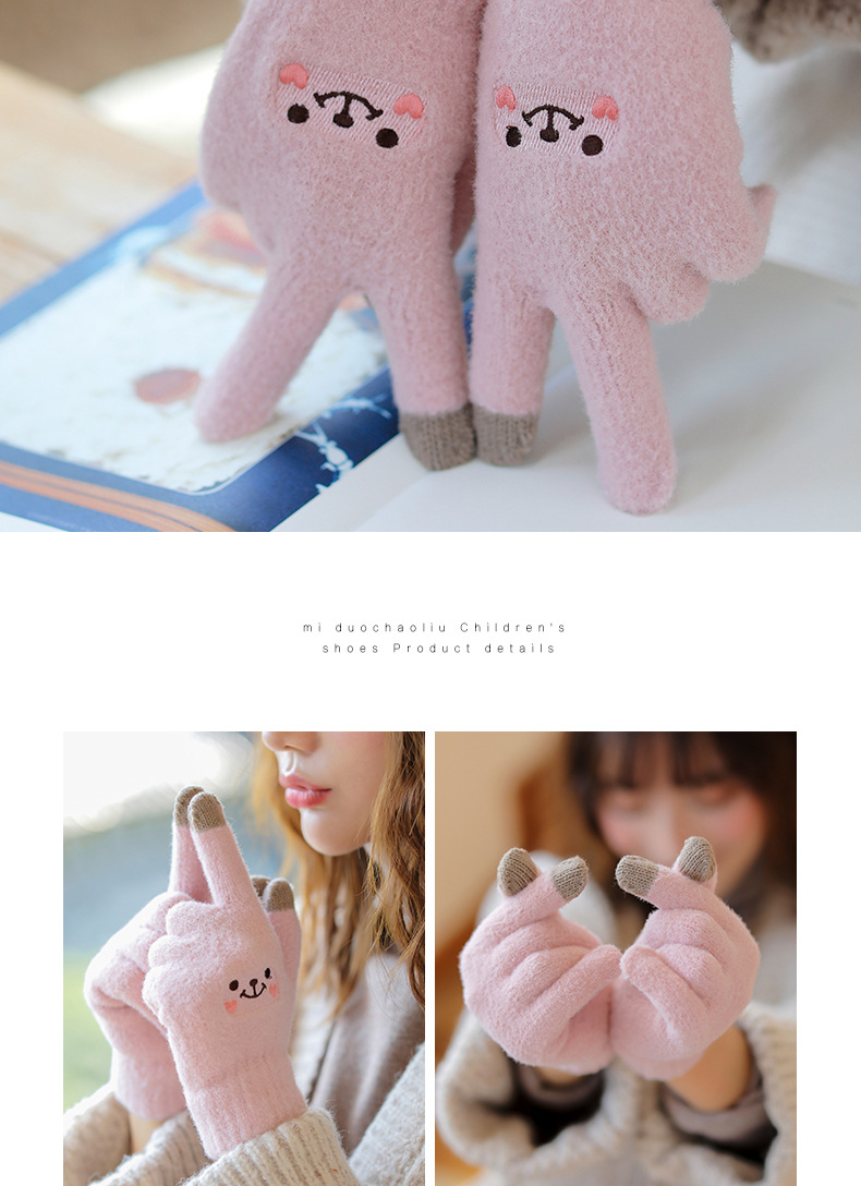 手套冬天女保暖日系萌可爱韩版学生卡通五指加绒触屏针织毛线手套