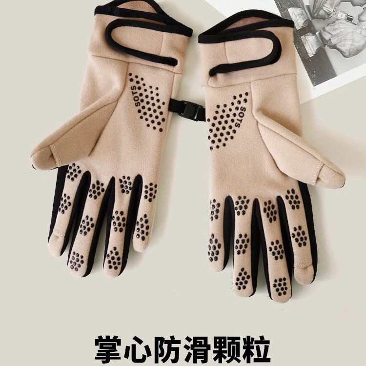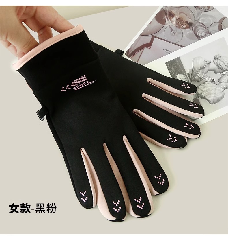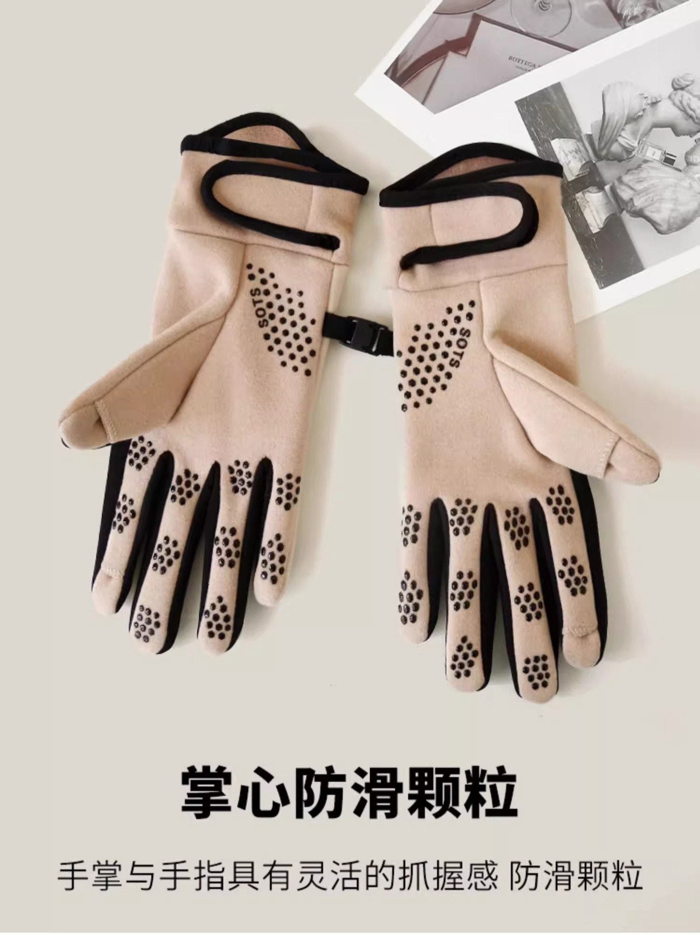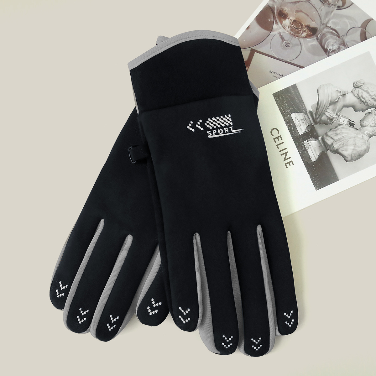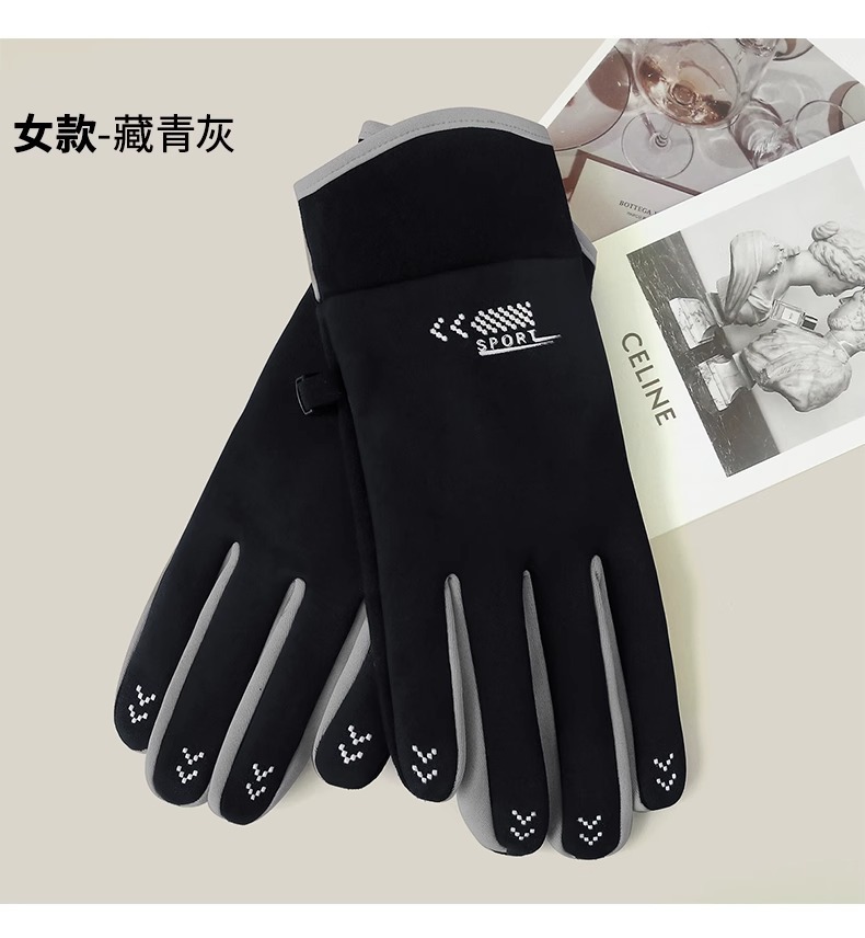 手套女秋冬季加绒加厚保暖骑行滑雪手套防寒防滑分指可触屏时尚男