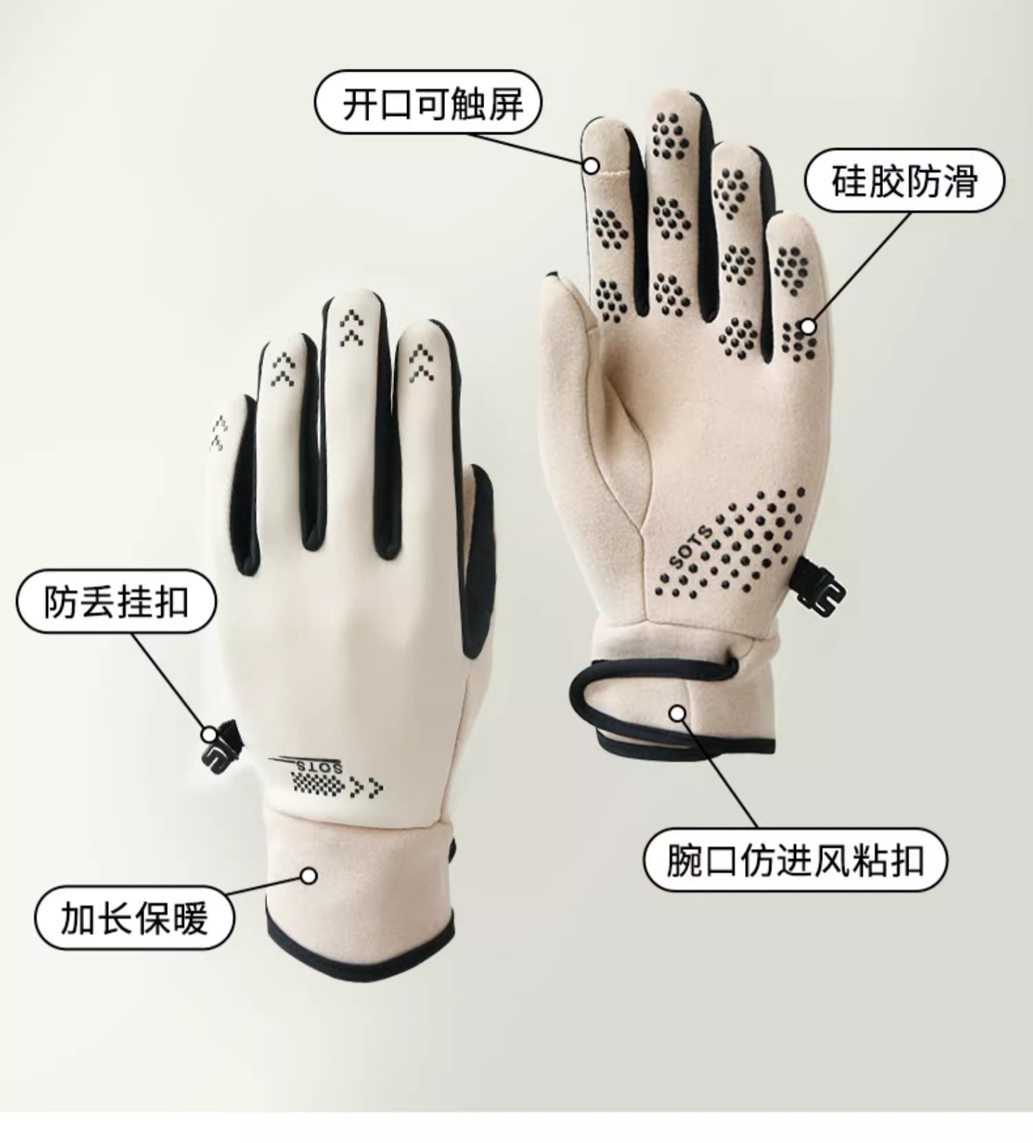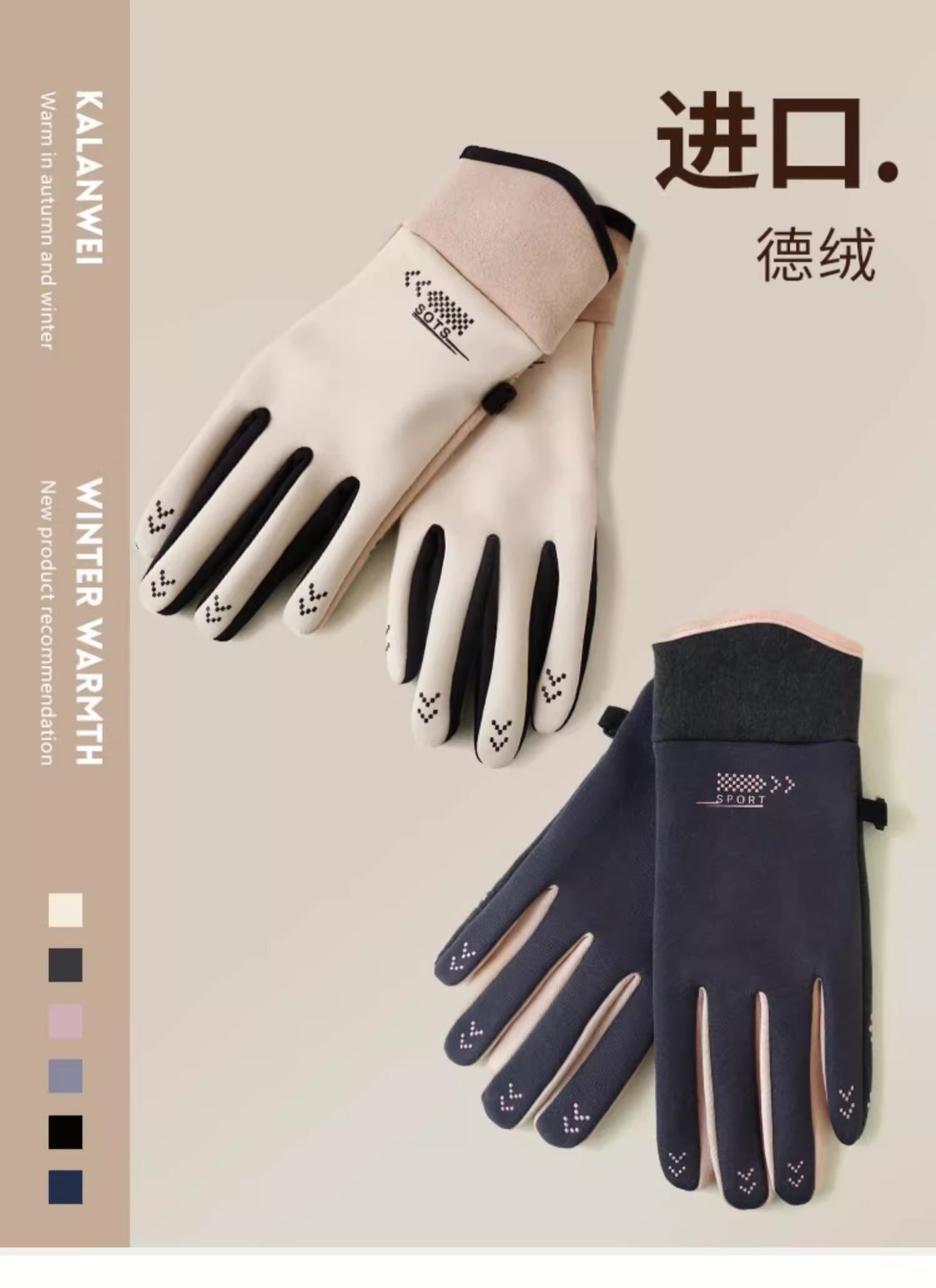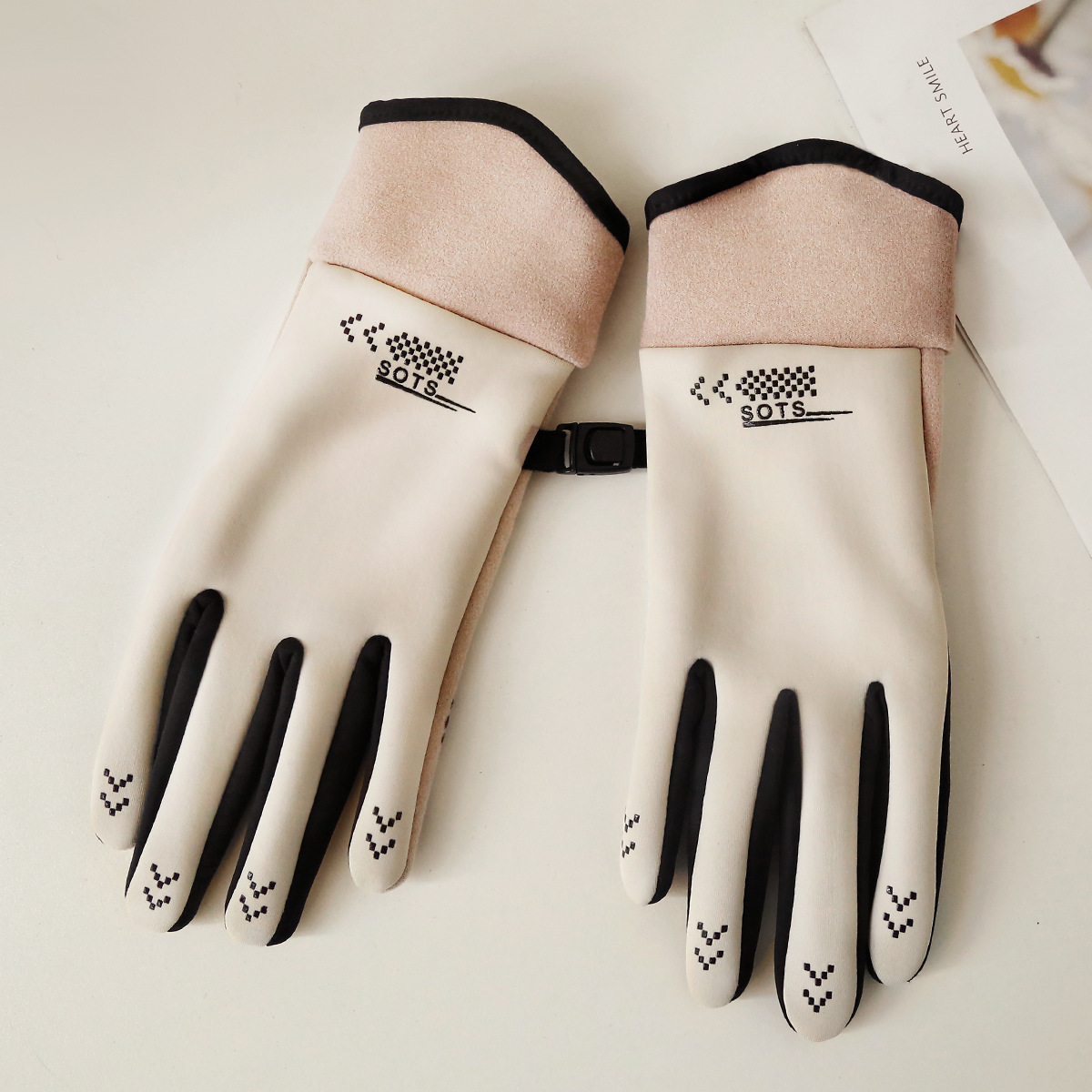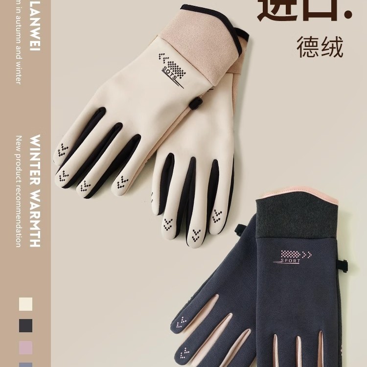 手套女秋冬季加绒加厚保暖骑行滑雪手套防寒防滑分指可触屏时尚男