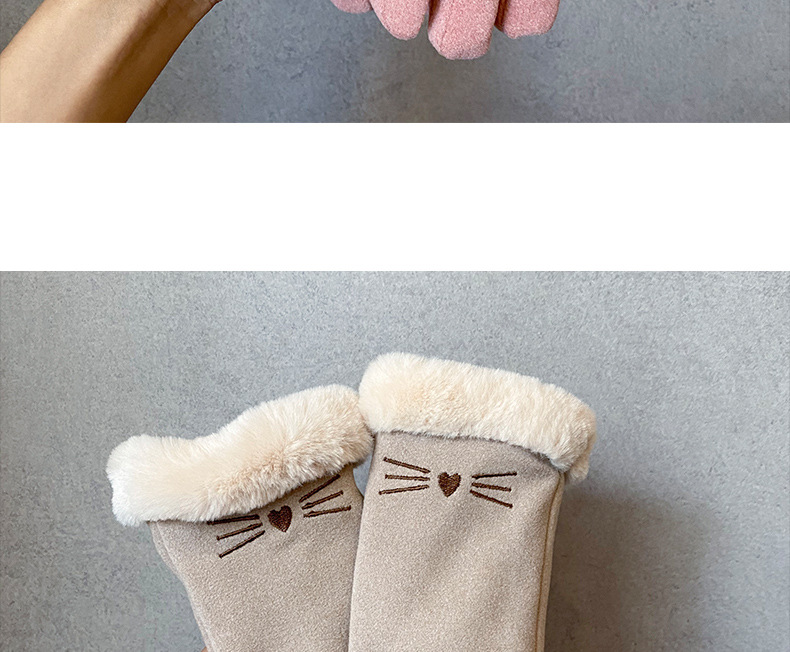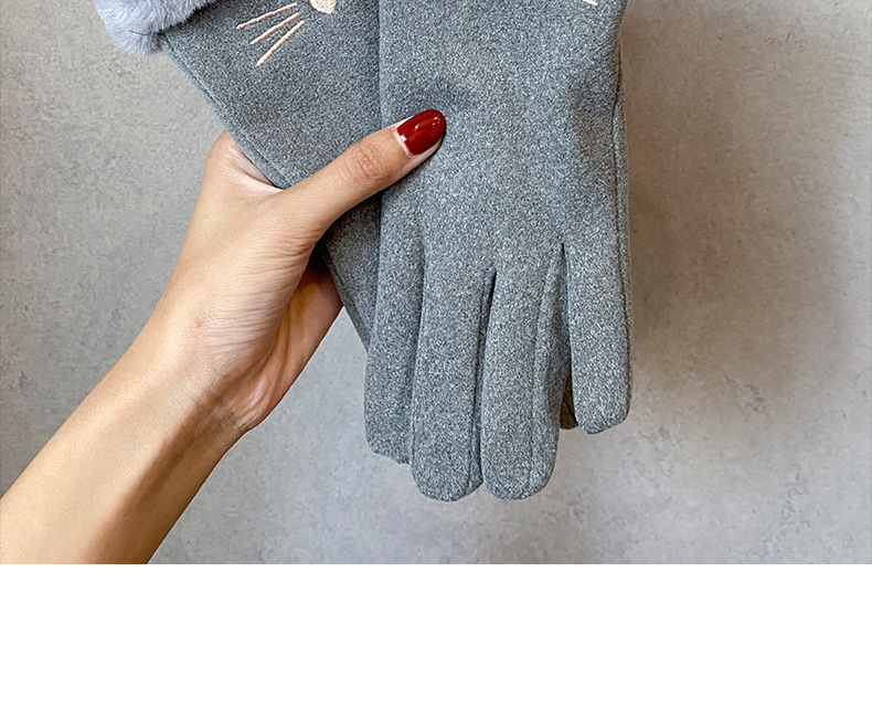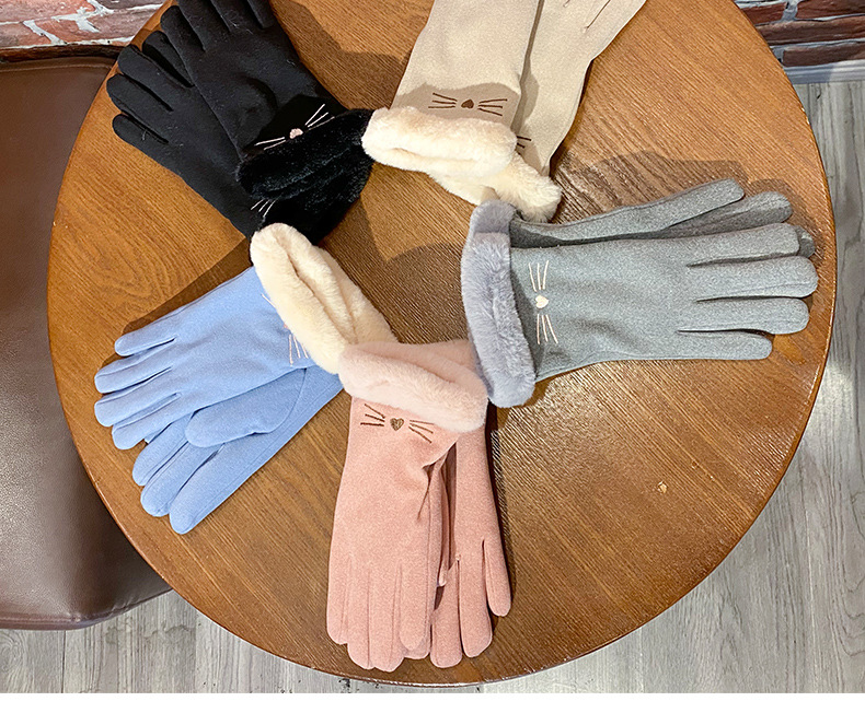 韩版秋冬季女学生加绒加厚保暖冬天可爱卡通猫咪触屏手套骑车防寒