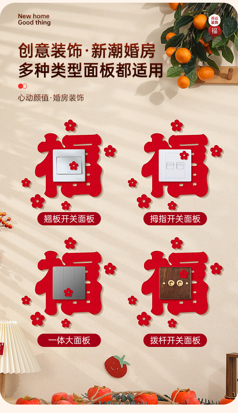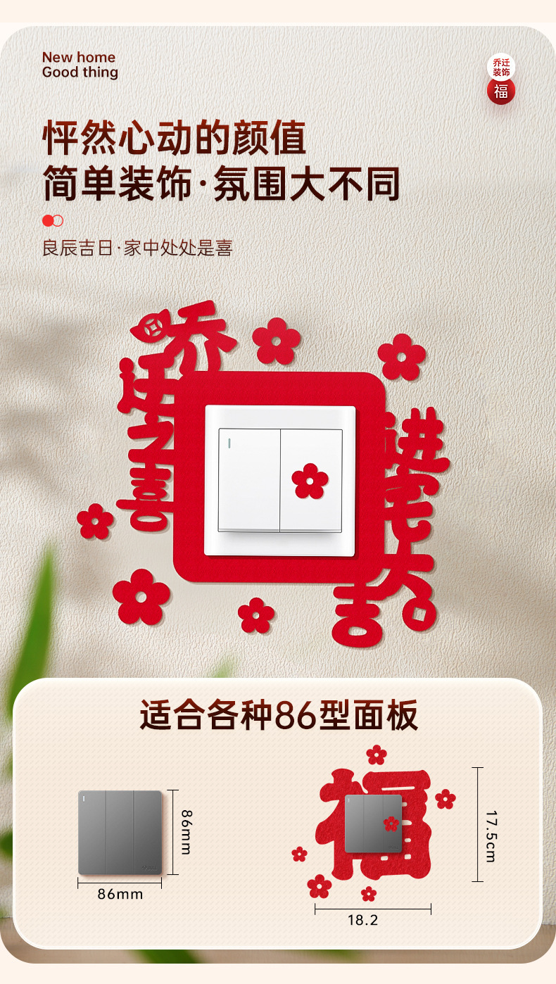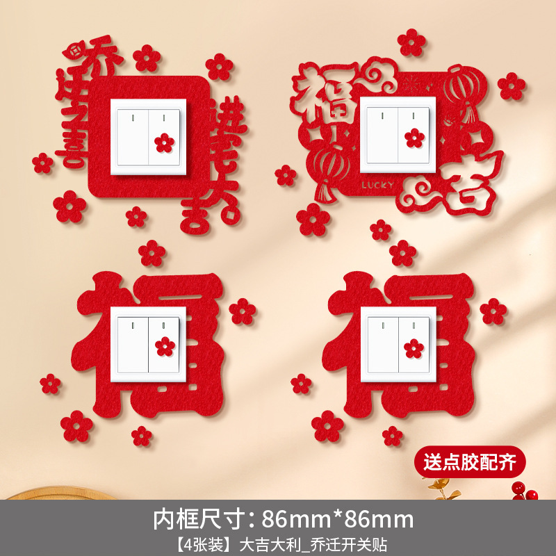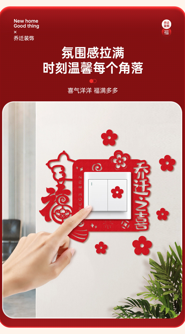 乔迁之喜福字开关贴新居装饰品搬家入宅仪式新家客厅卧室布置用品