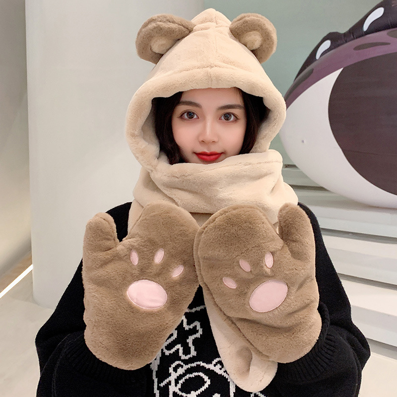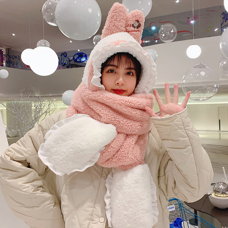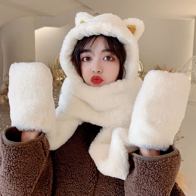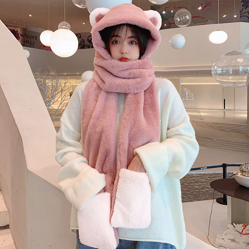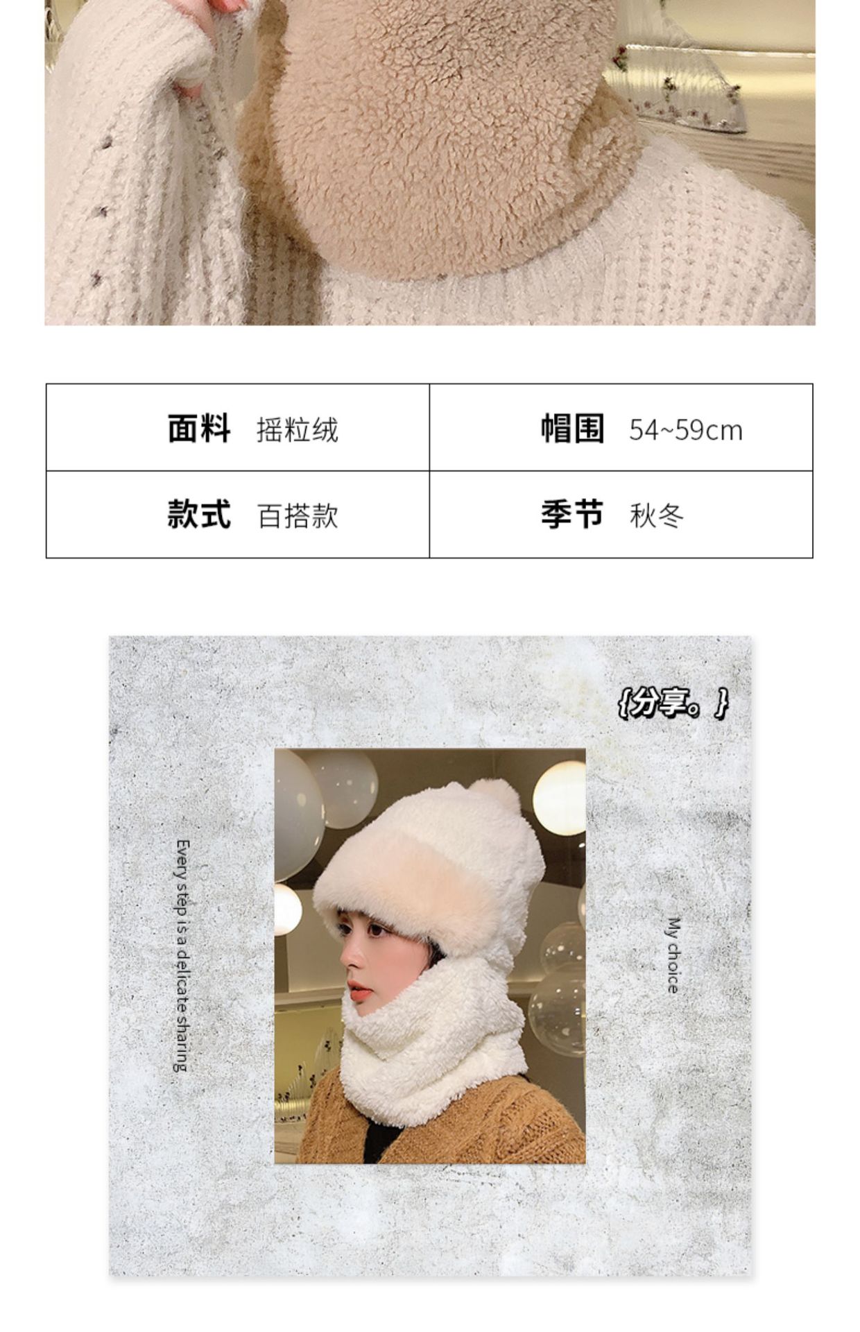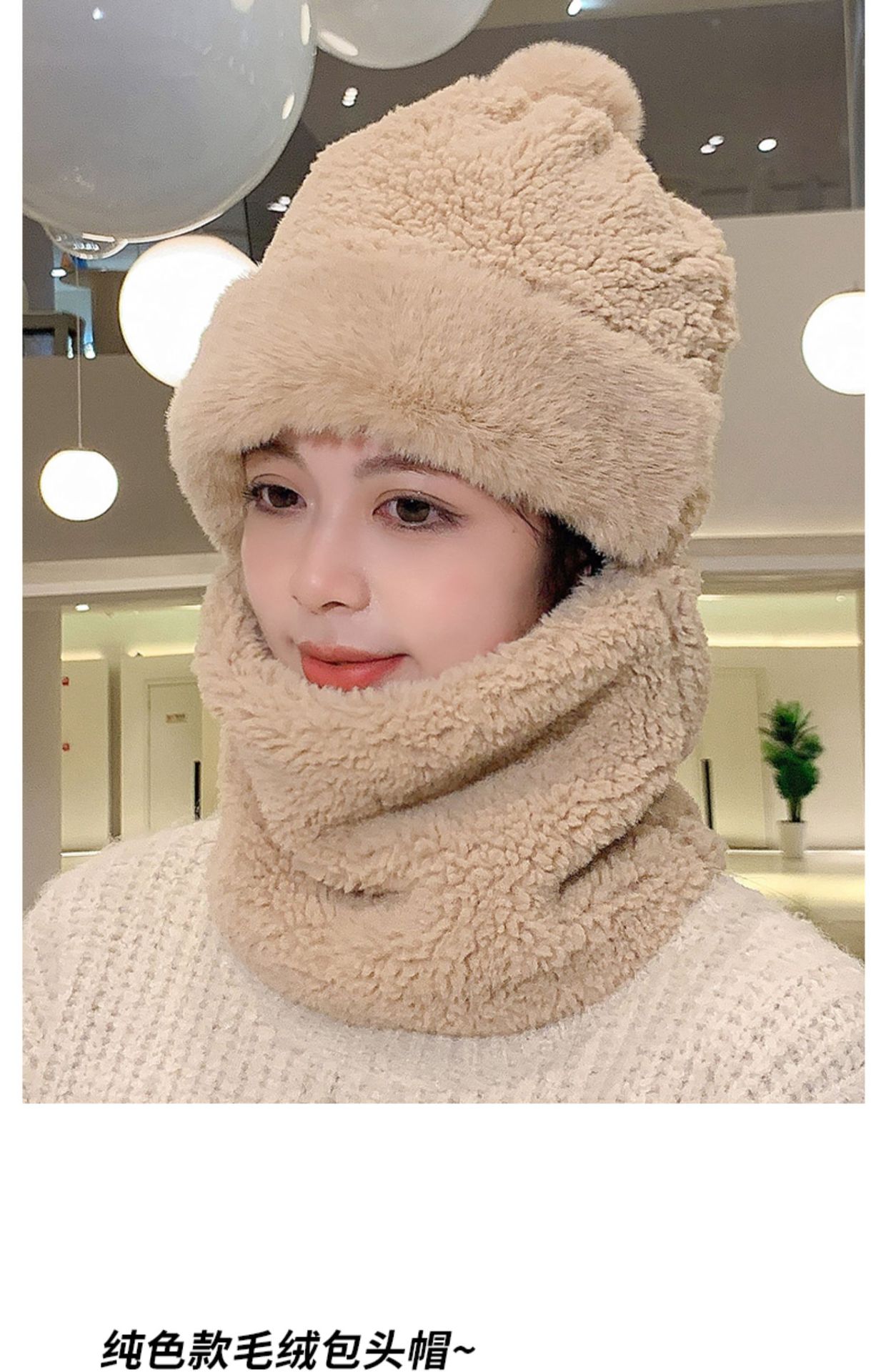 帽子女秋冬季户外骑车护脖保暖可爱毛绒帽围脖一体连帽冬天百搭潮