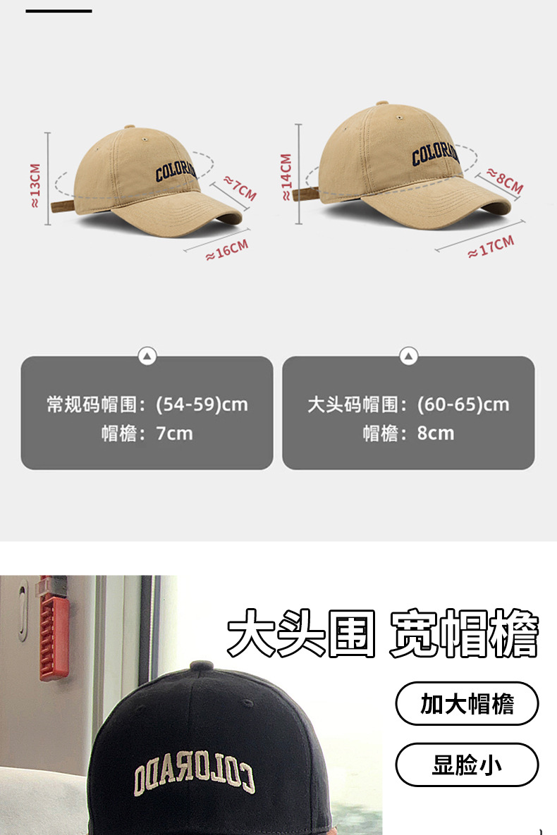 加深大头围2024新款棒球帽女秋冬显脸小宽帽檐美式四季鸭舌帽子男
