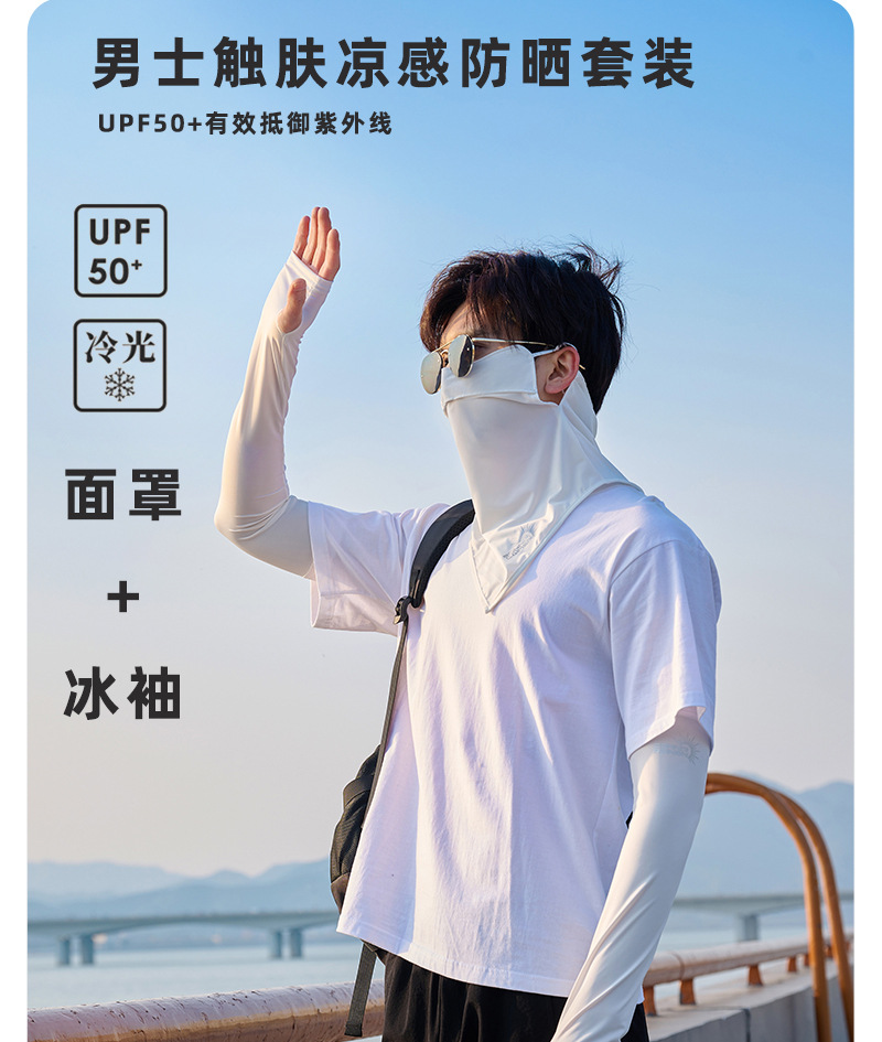冰丝袖套2024新款男士户外骑行钓鱼防紫外线护臂挂式防晒面罩现货