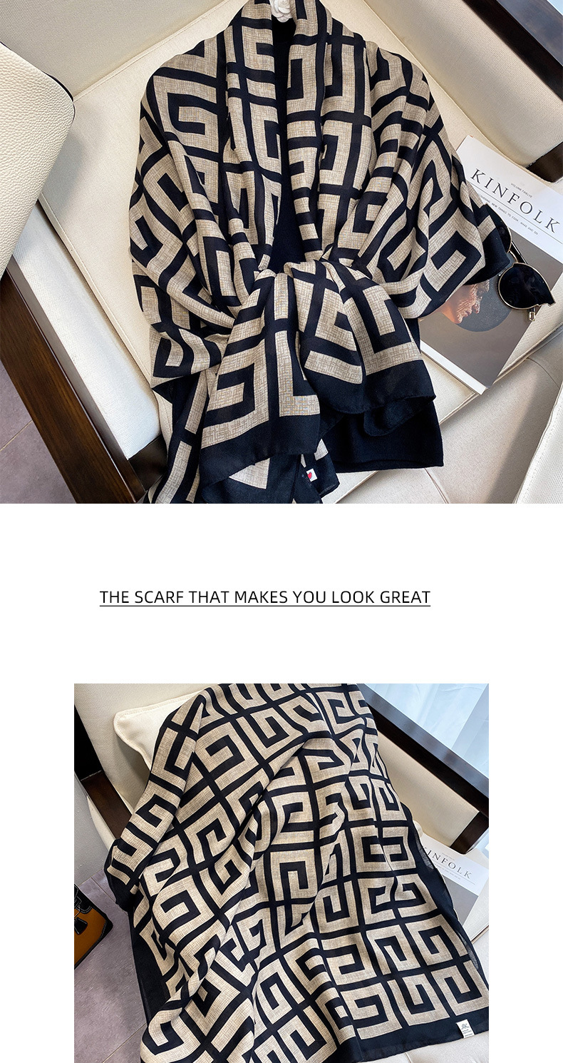 棉麻围巾披肩外搭丝巾女秋冬款洋气时尚韩版百搭围脖两用流苏针织