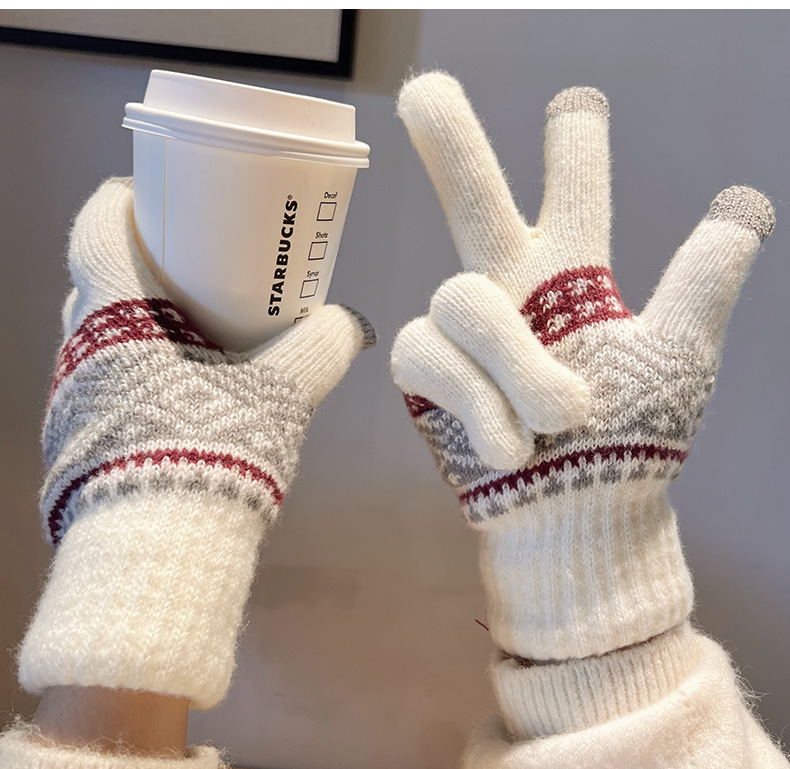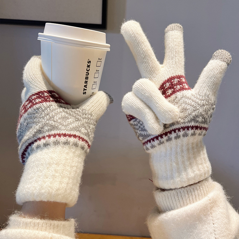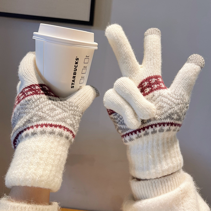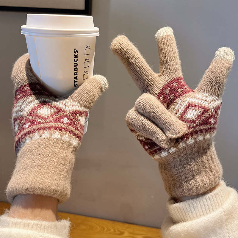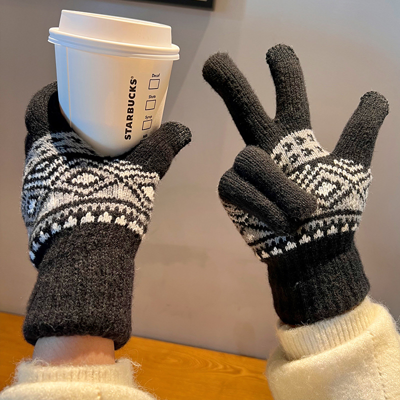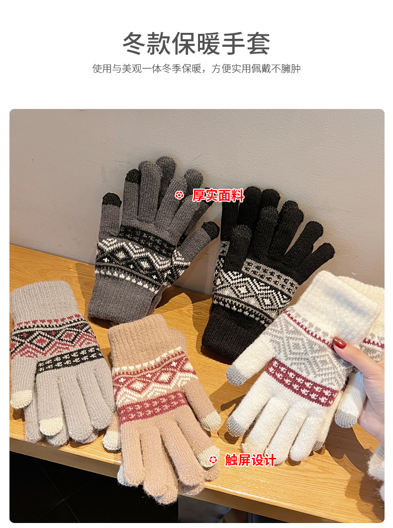 手套女生秋冬加绒可爱保暖2023新款毛线针织手套户外骑行防寒