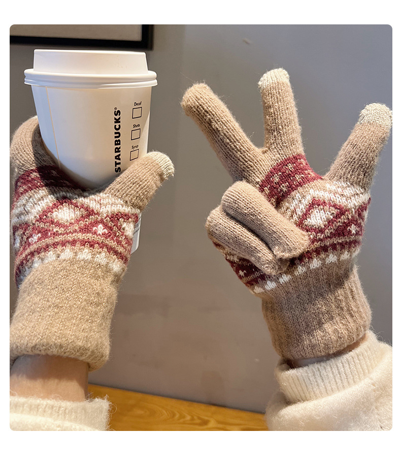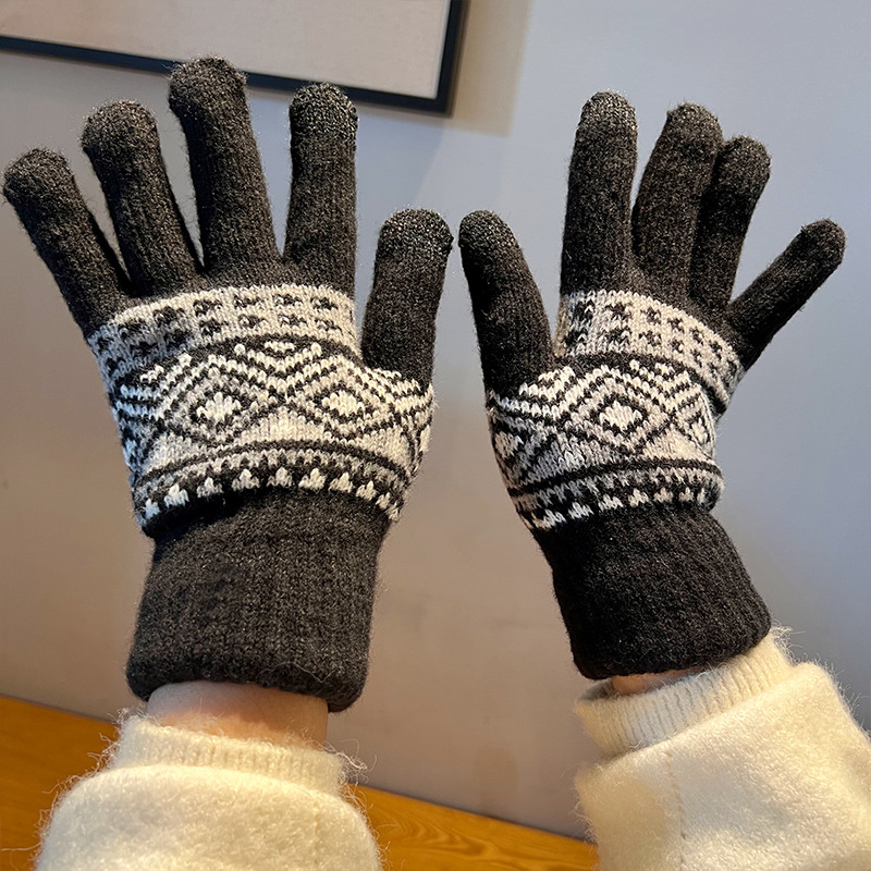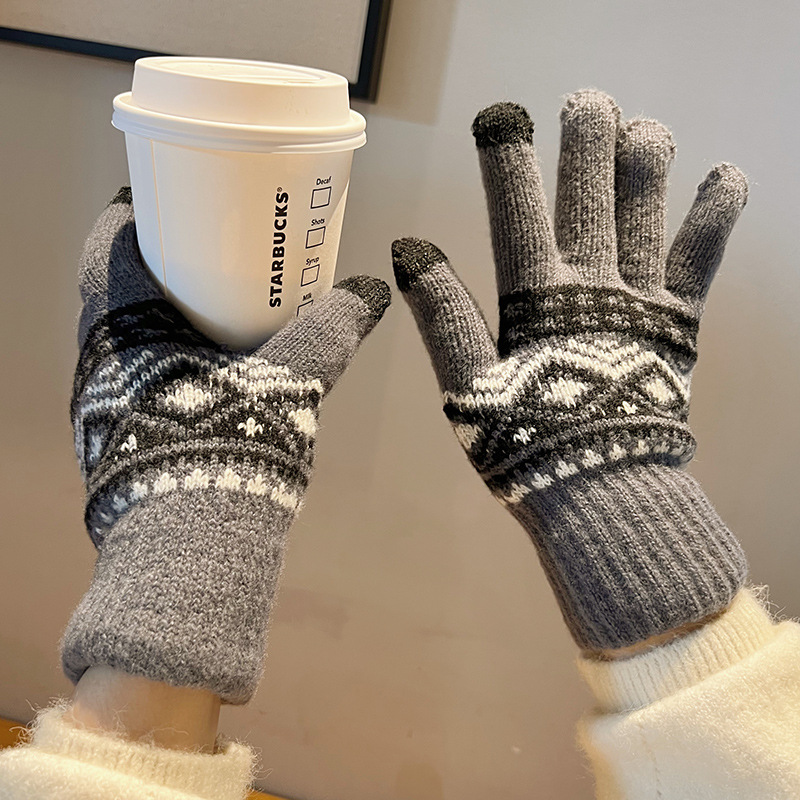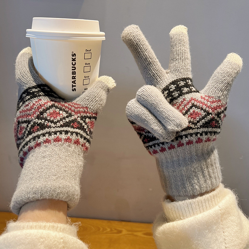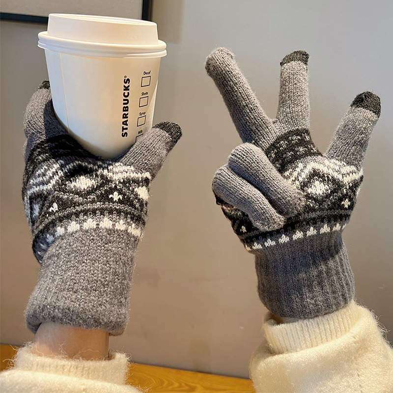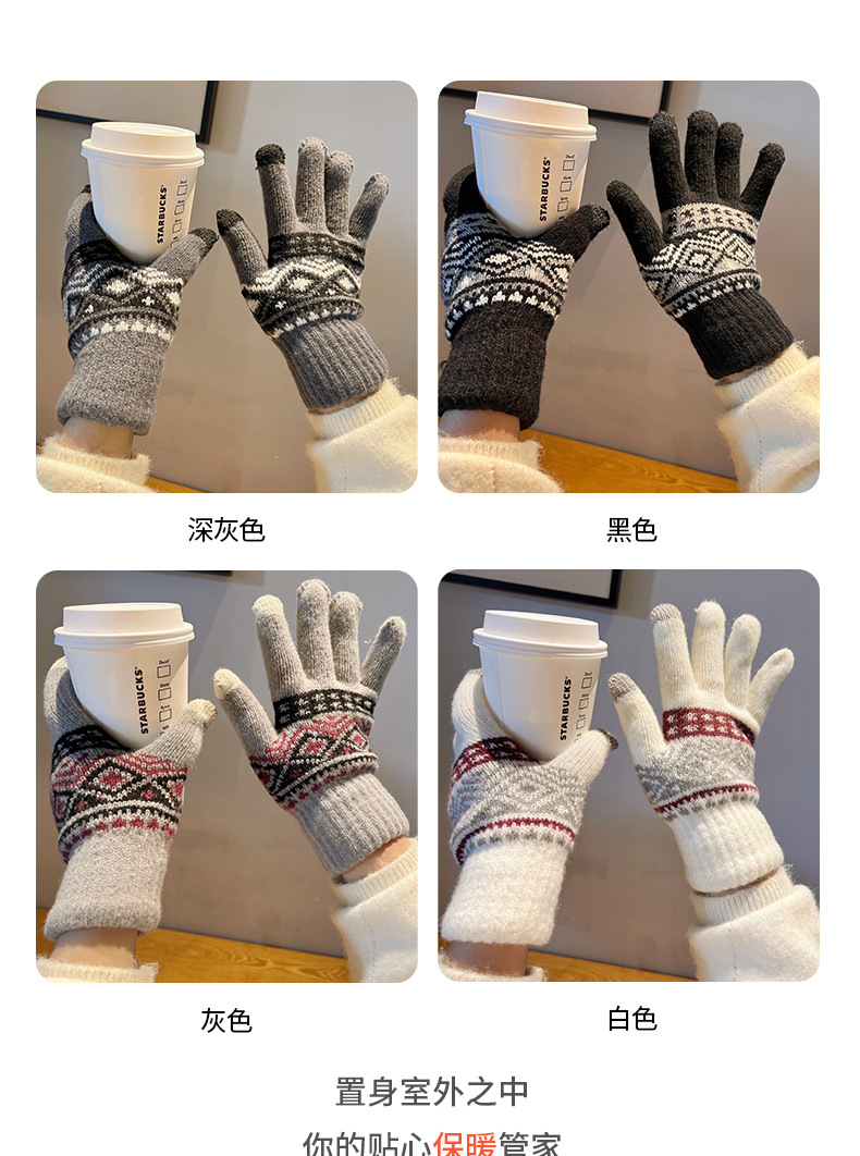 手套女生秋冬加绒可爱保暖2023新款毛线针织手套户外骑行防寒
