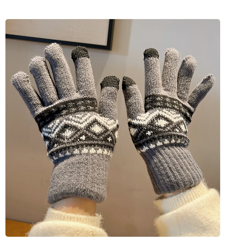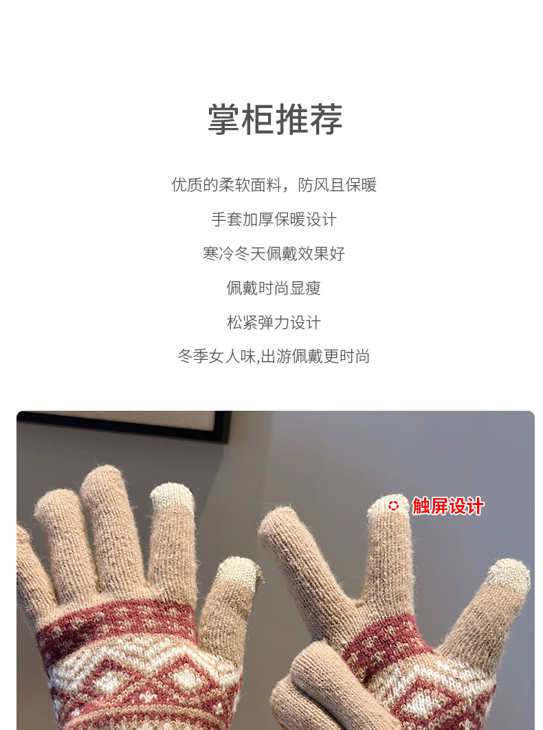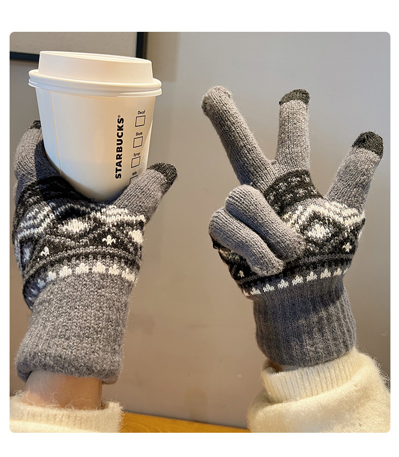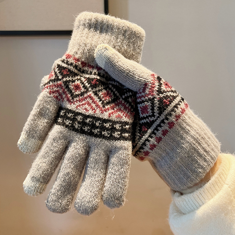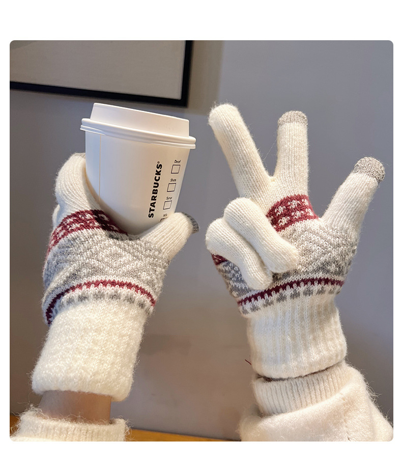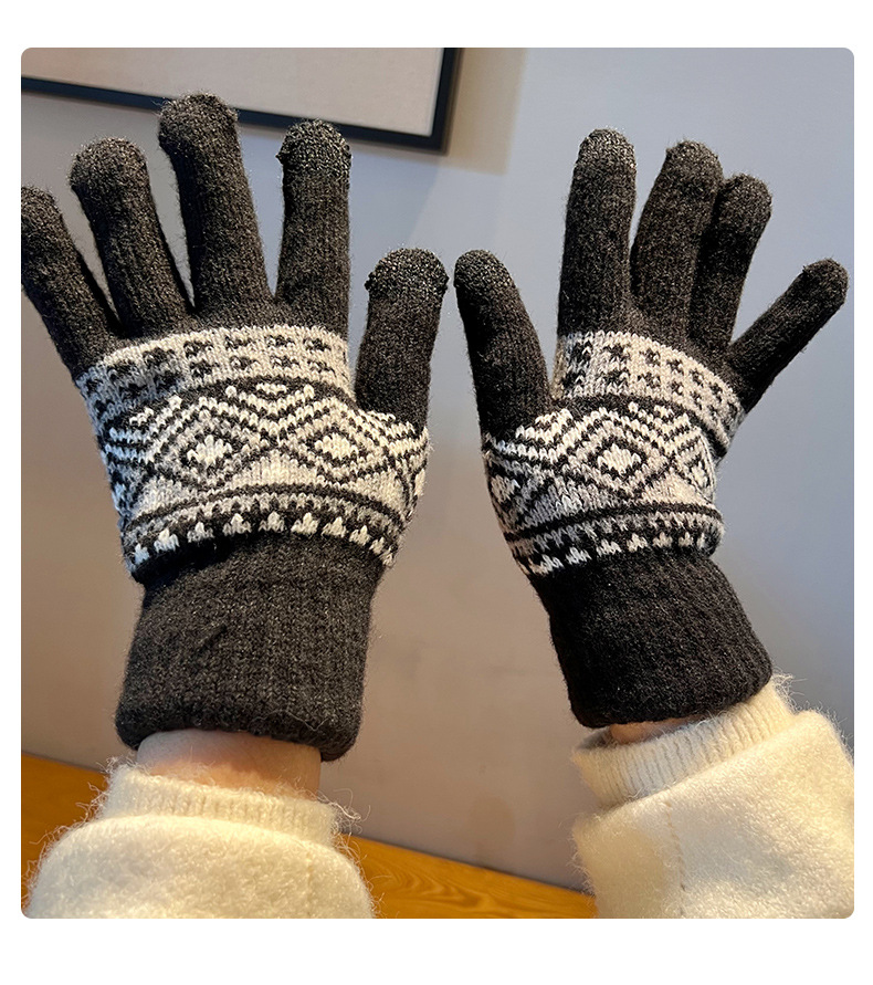 手套女生秋冬加绒可爱保暖2023新款毛线针织手套户外骑行防寒