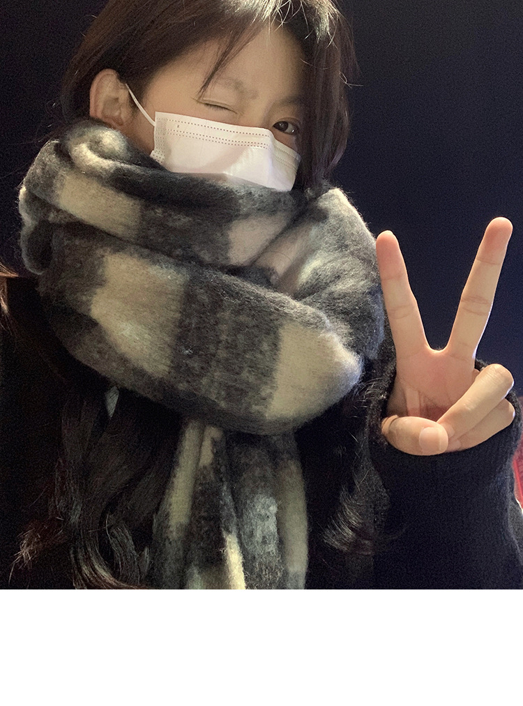 秋冬季格子围巾女高级感2023新款马海毛百搭学生保暖加厚围脖男