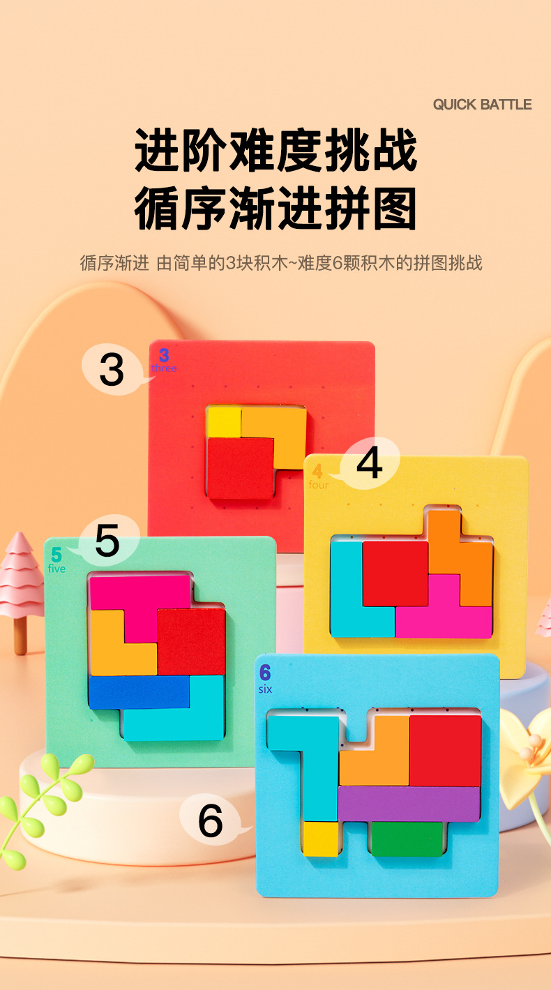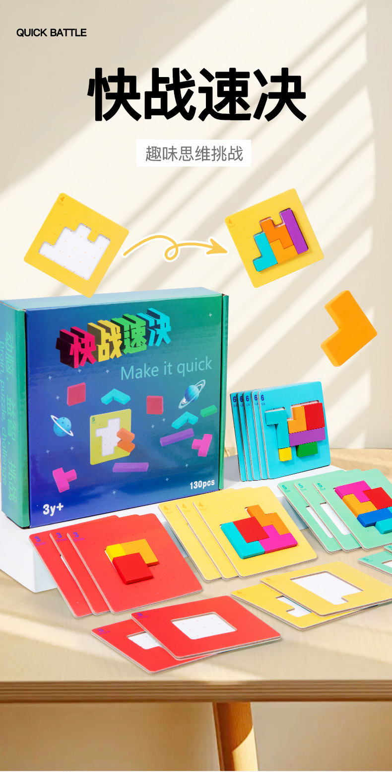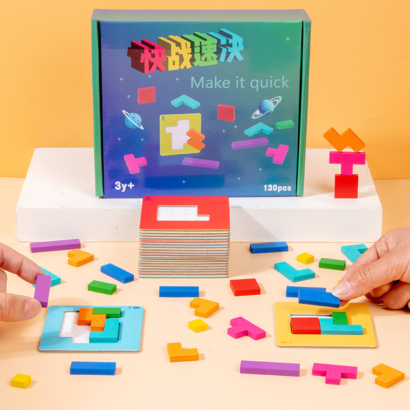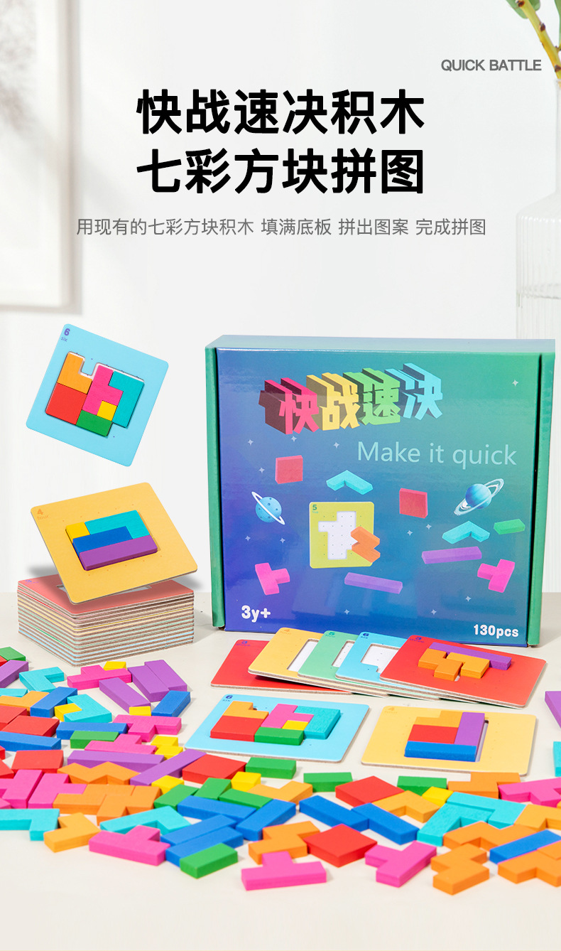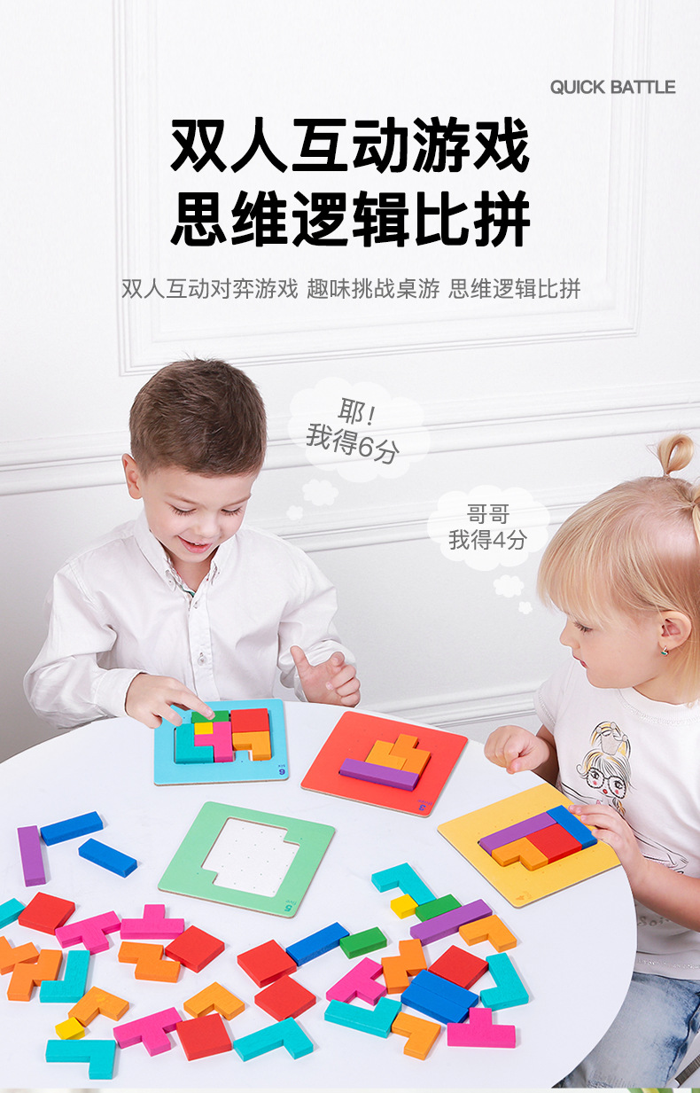 快战速决亲子双人对战儿童益智思维拼图七彩方块积木拼图桌游玩具