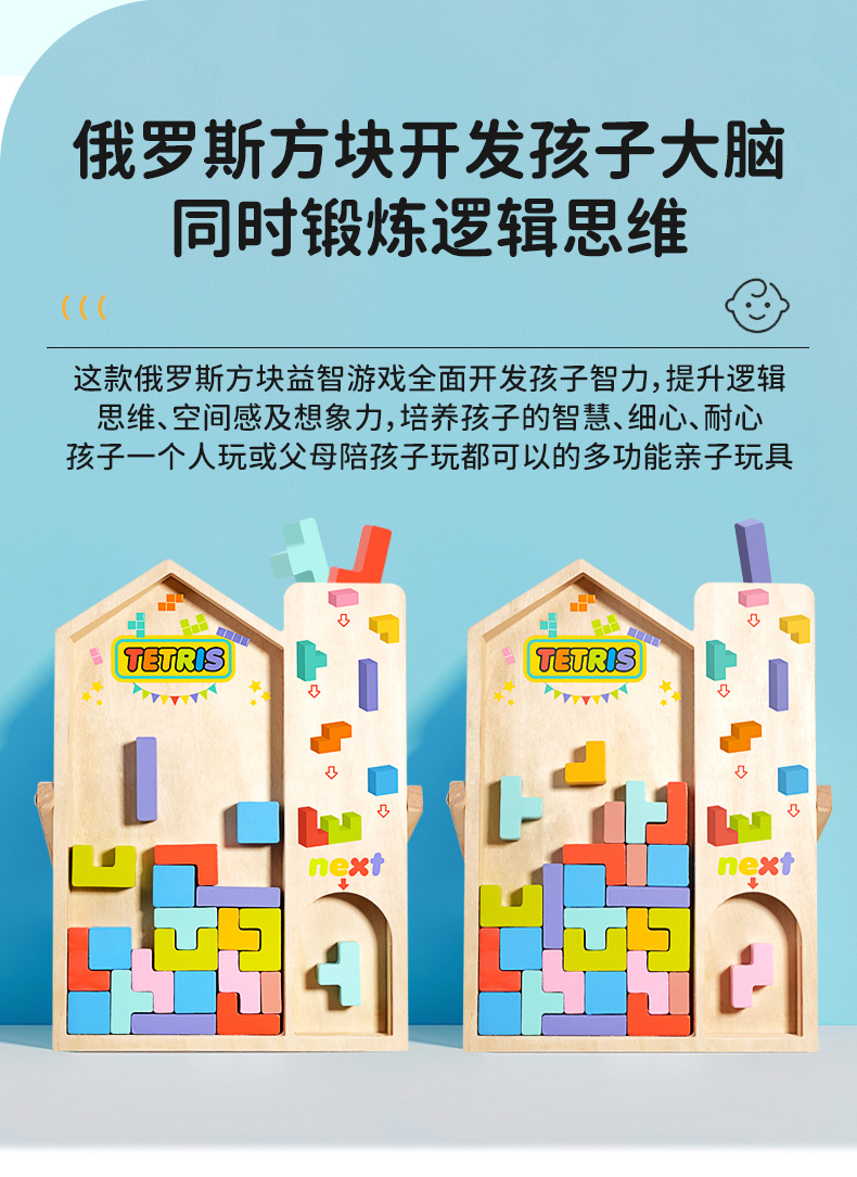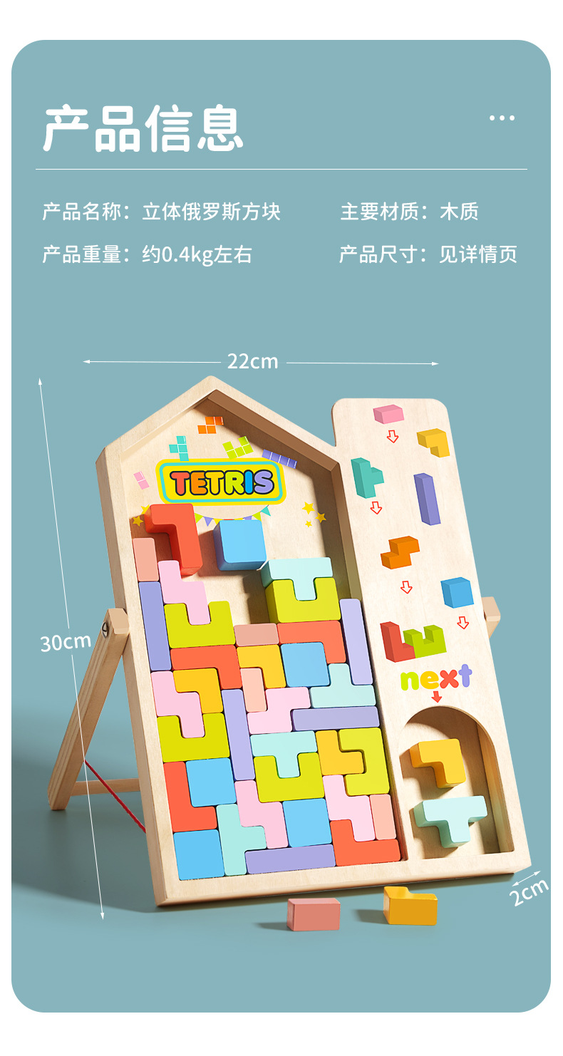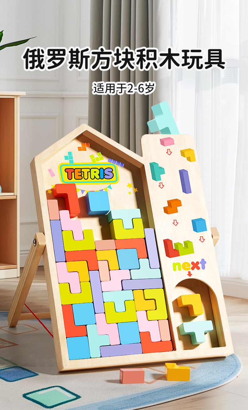 儿童早教木质多功能俄罗斯方块拼图立体积木游戏动手动脑益智玩具