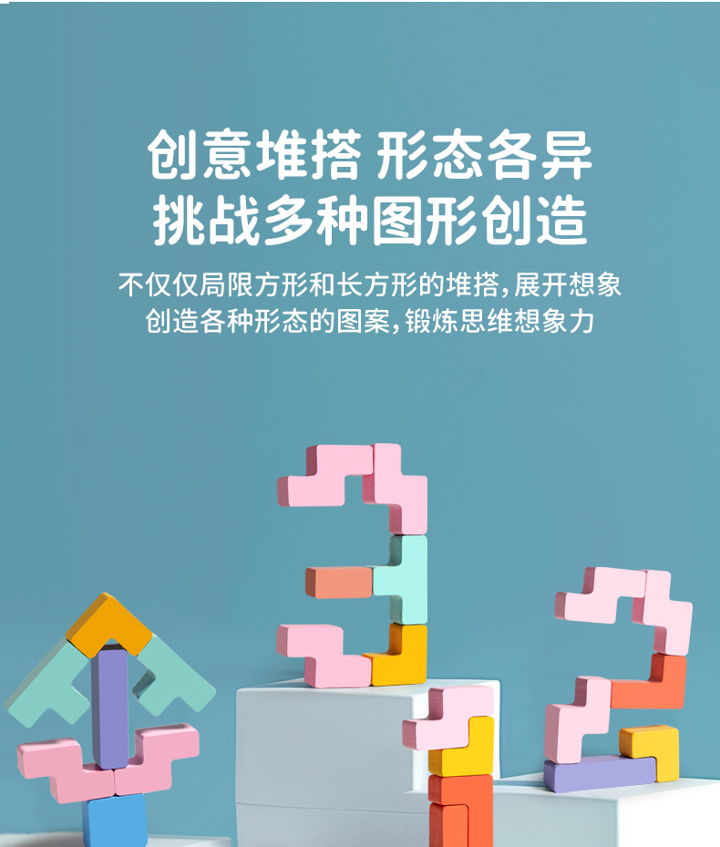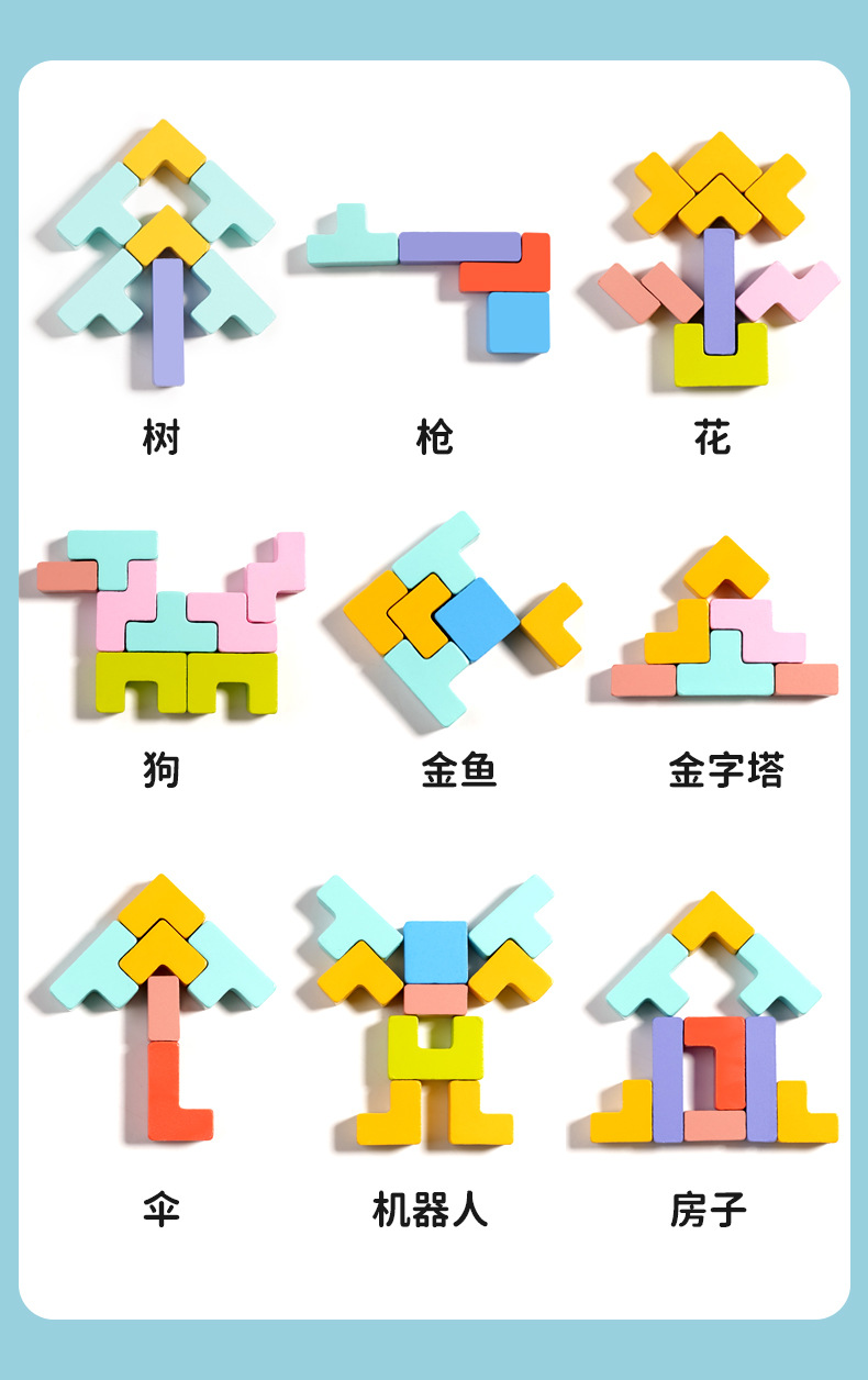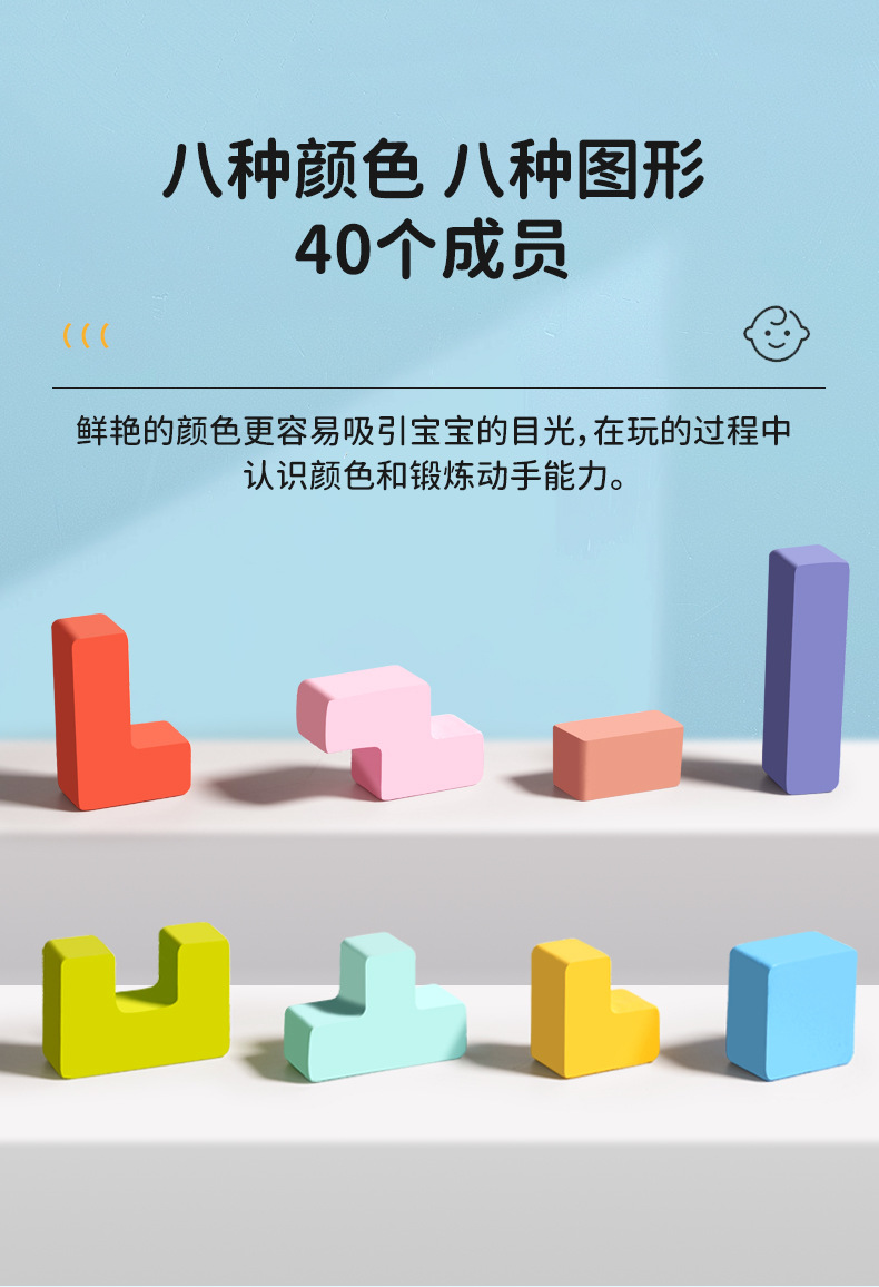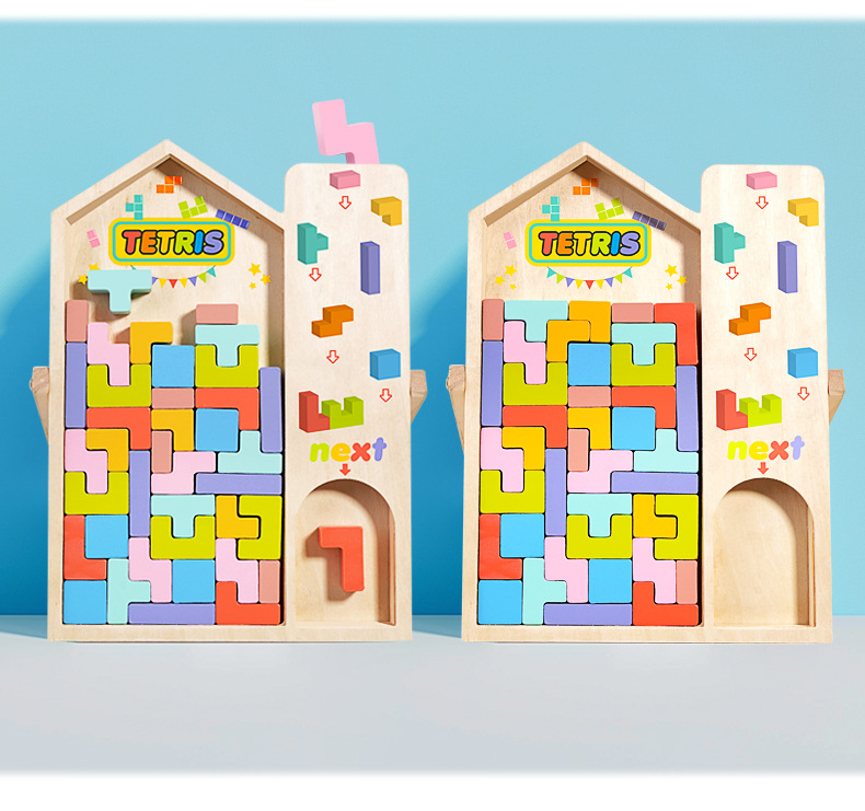 儿童早教木质多功能俄罗斯方块拼图立体积木游戏动手动脑益智玩具