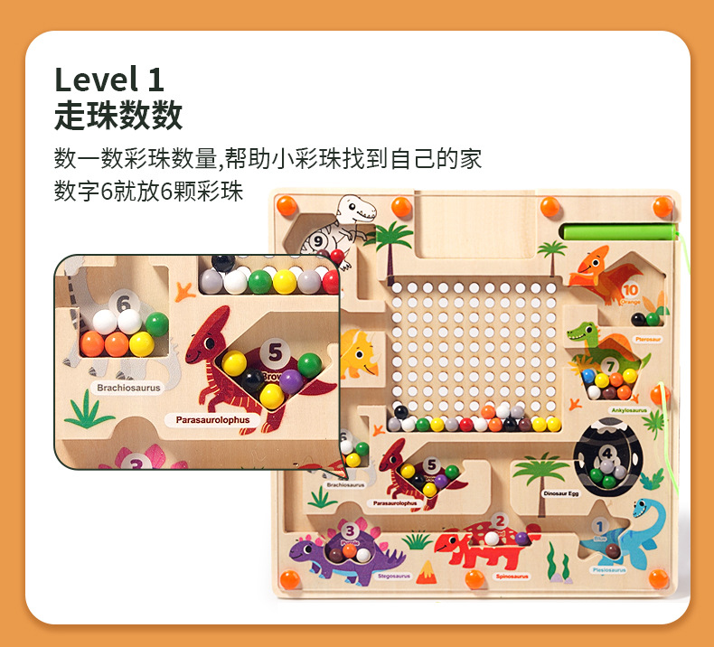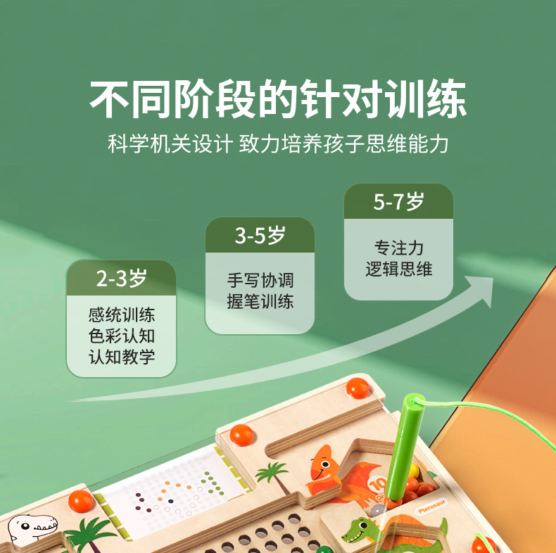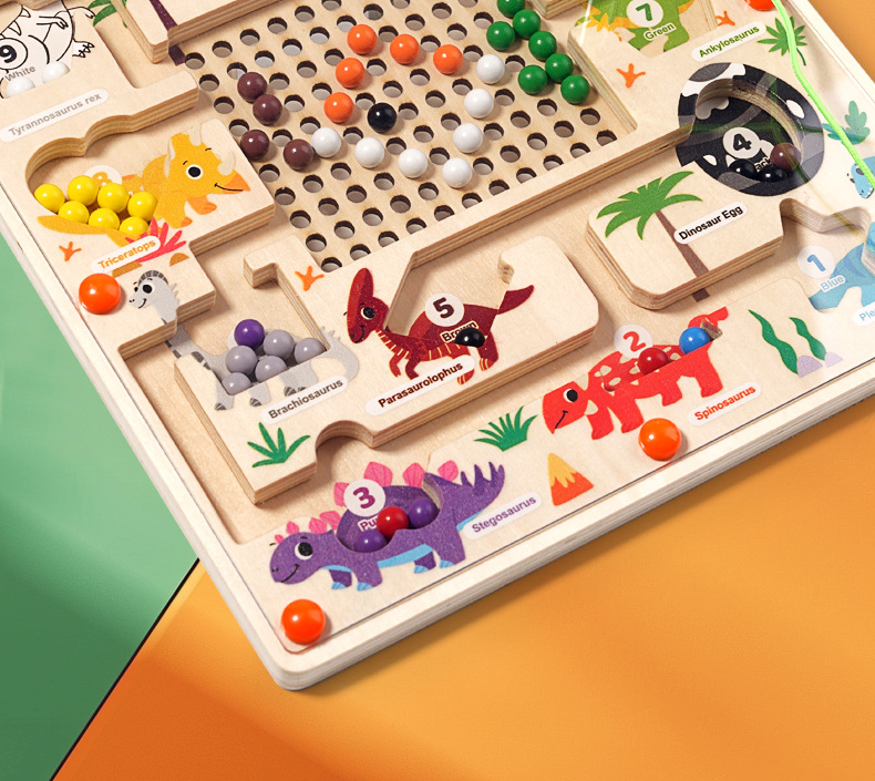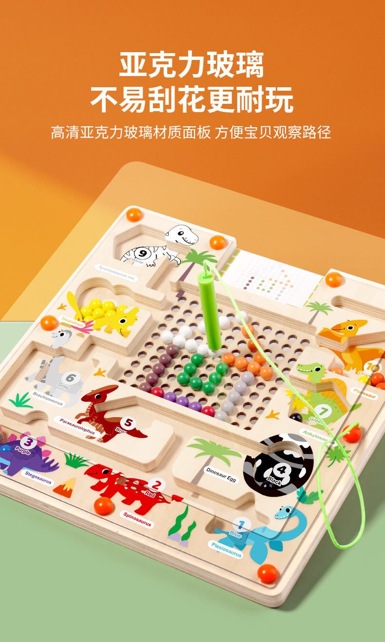 儿童磁性迷宫走珠益智运笔专注力训练颜色分类计数板游戏木制玩具