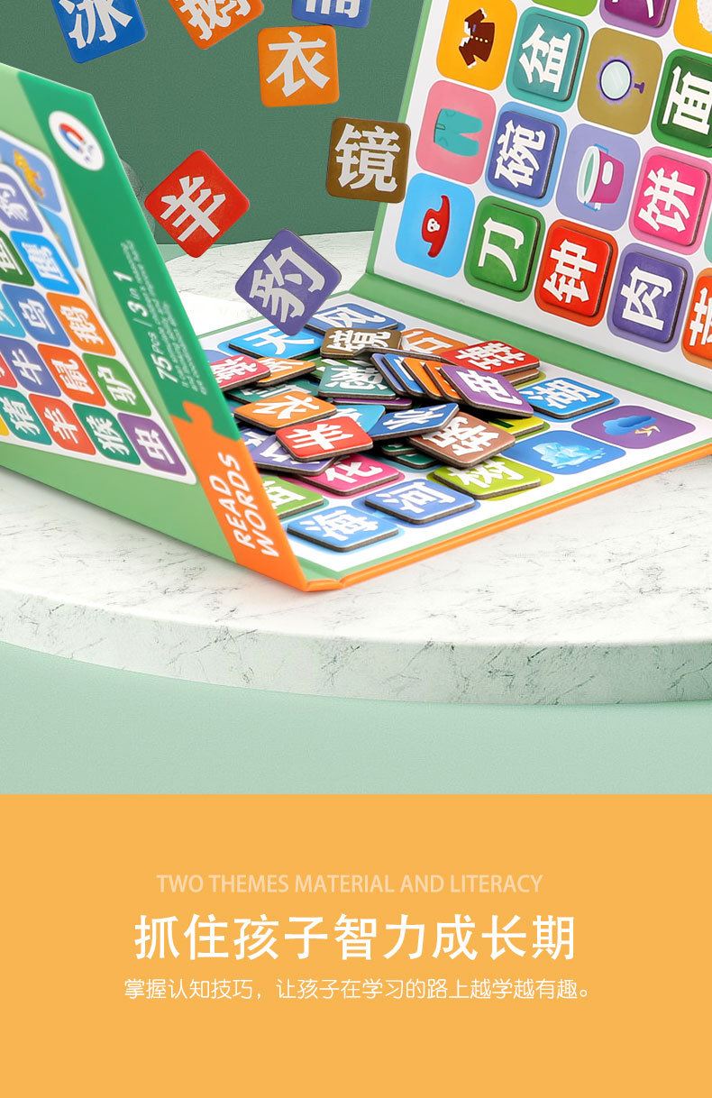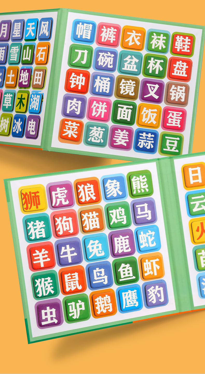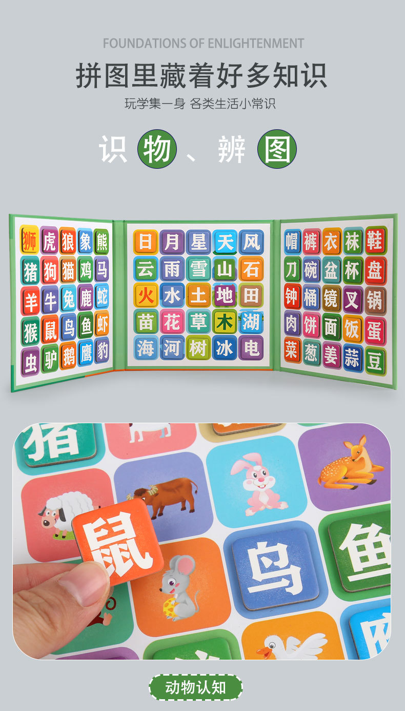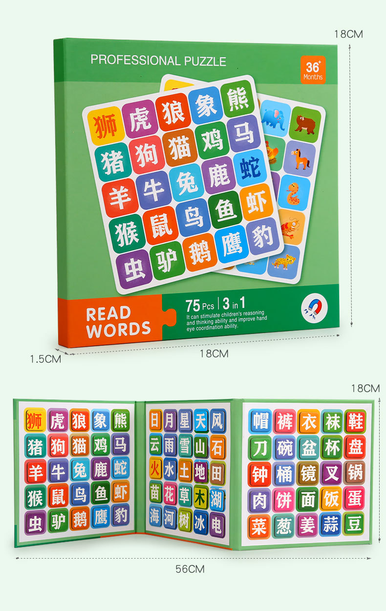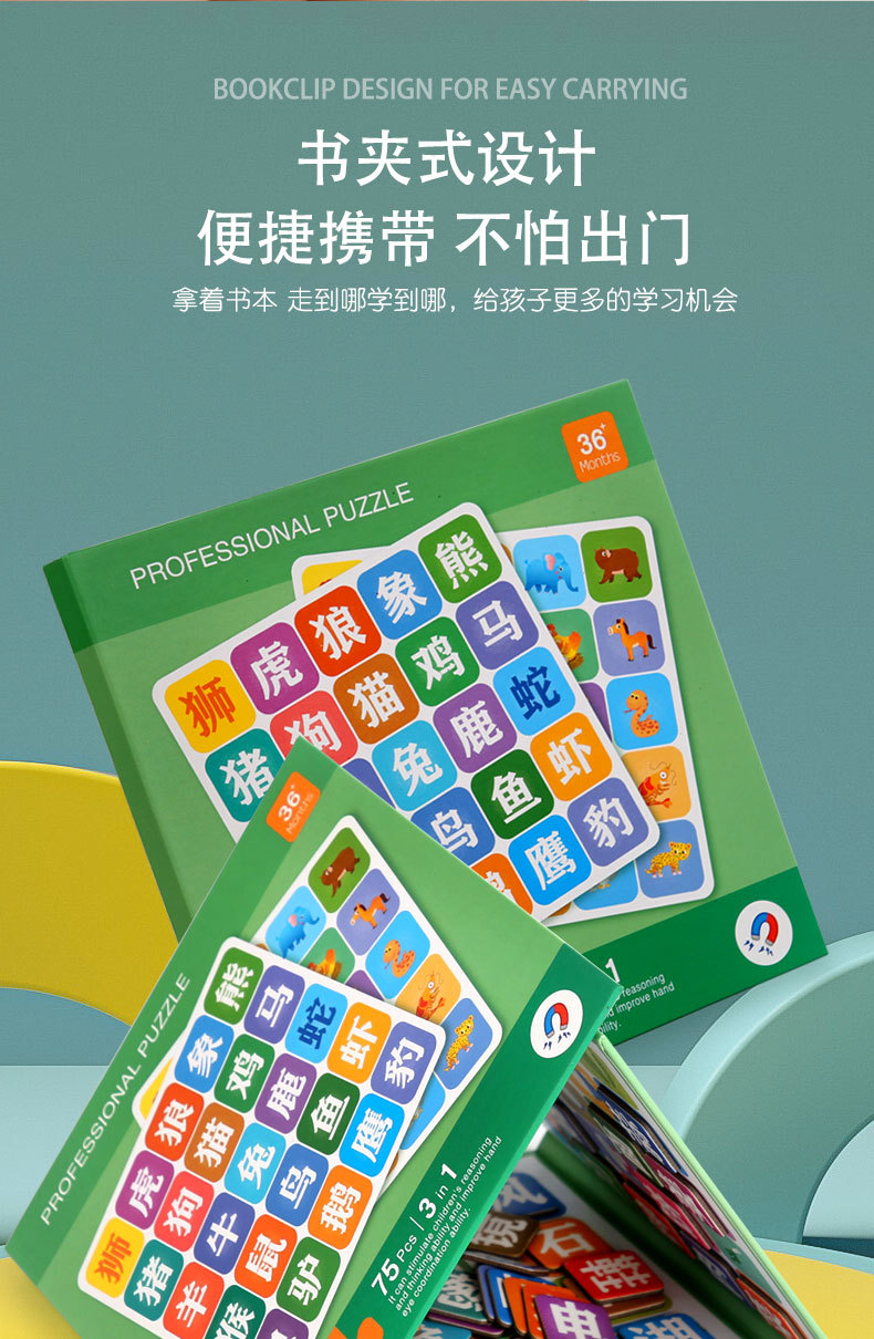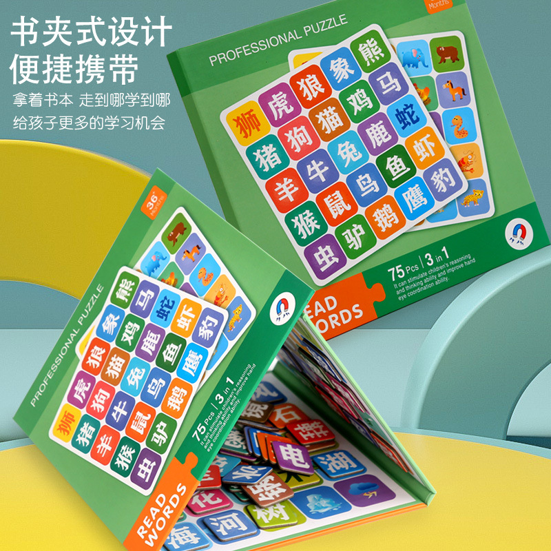 儿童磁力识字认物拼图书3到6岁宝宝幼儿园汉字认字板磁性益智玩具