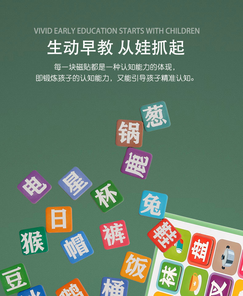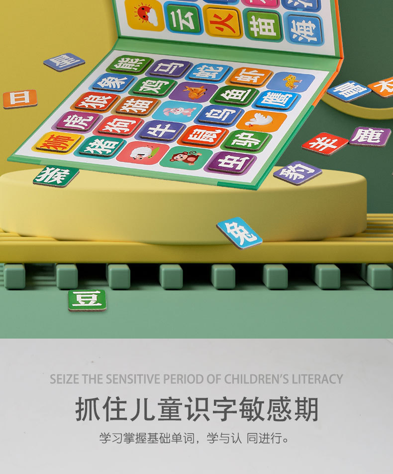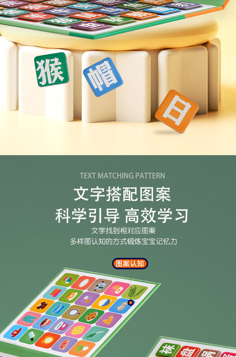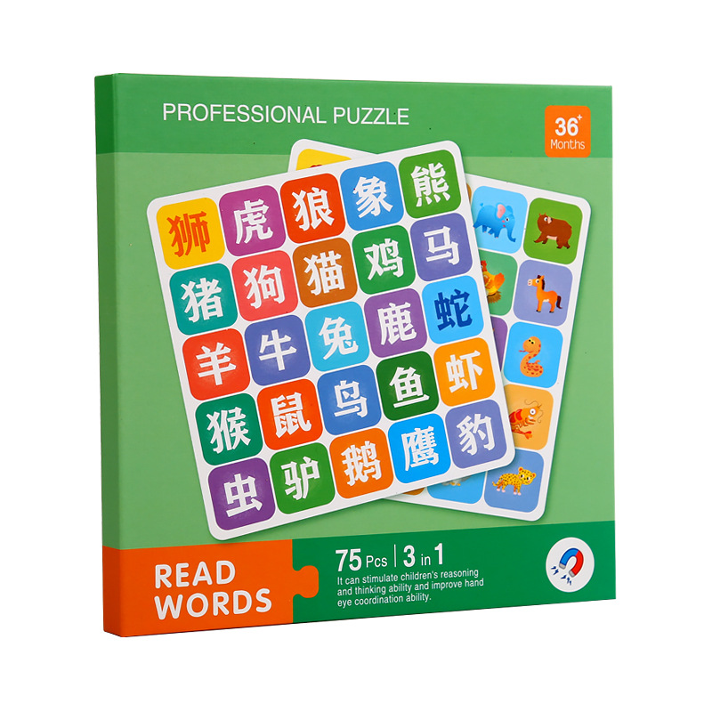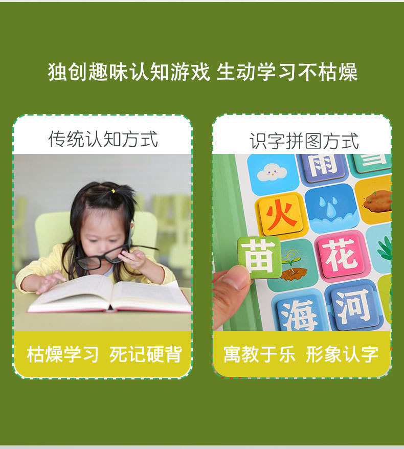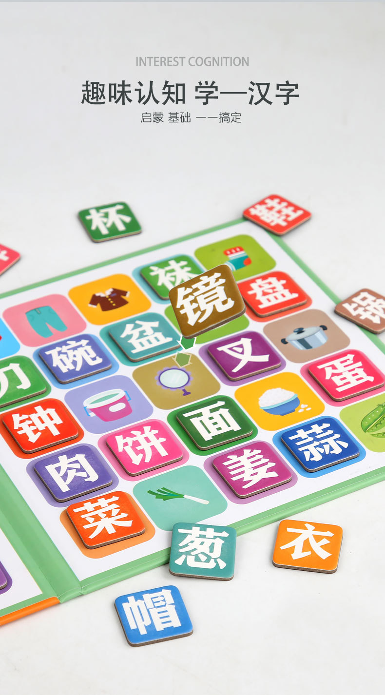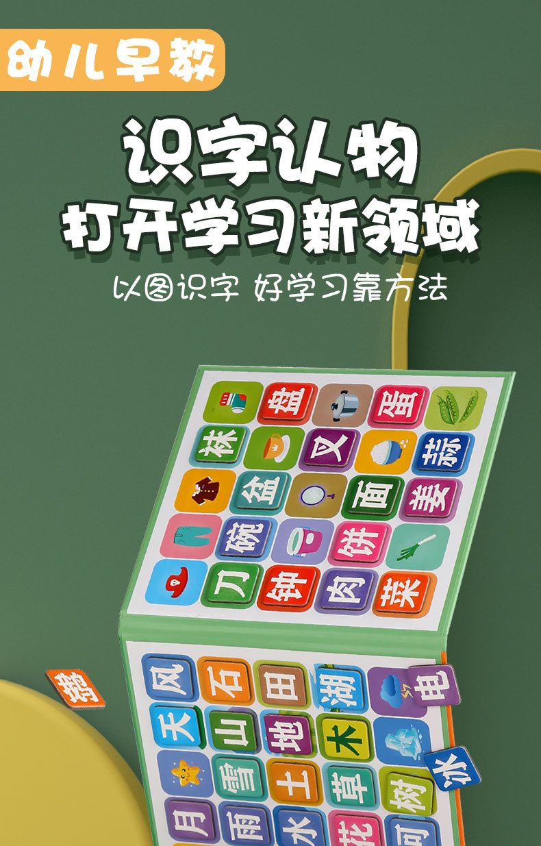 儿童磁力识字认物拼图书3到6岁宝宝幼儿园汉字认字板磁性益智玩具