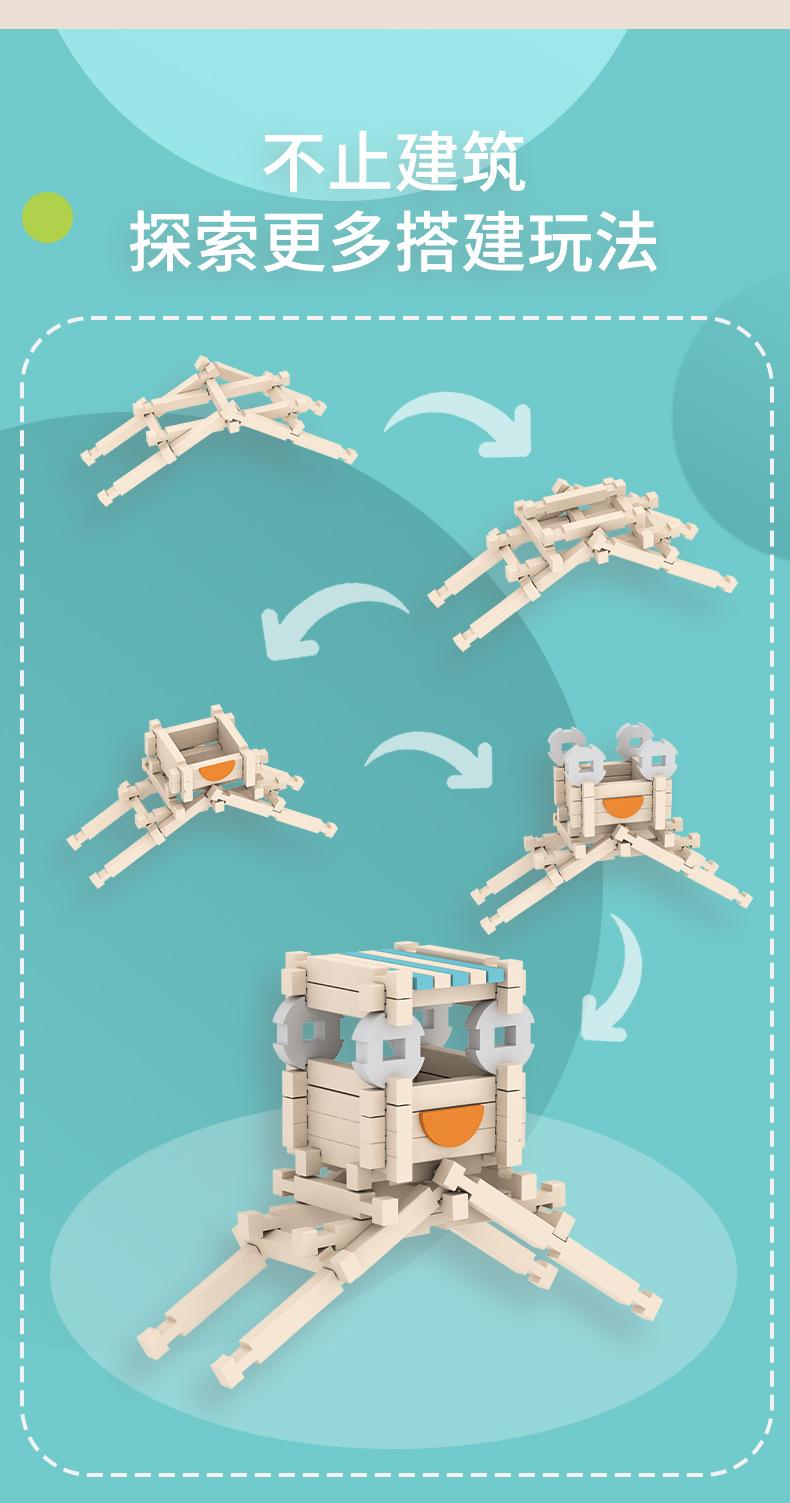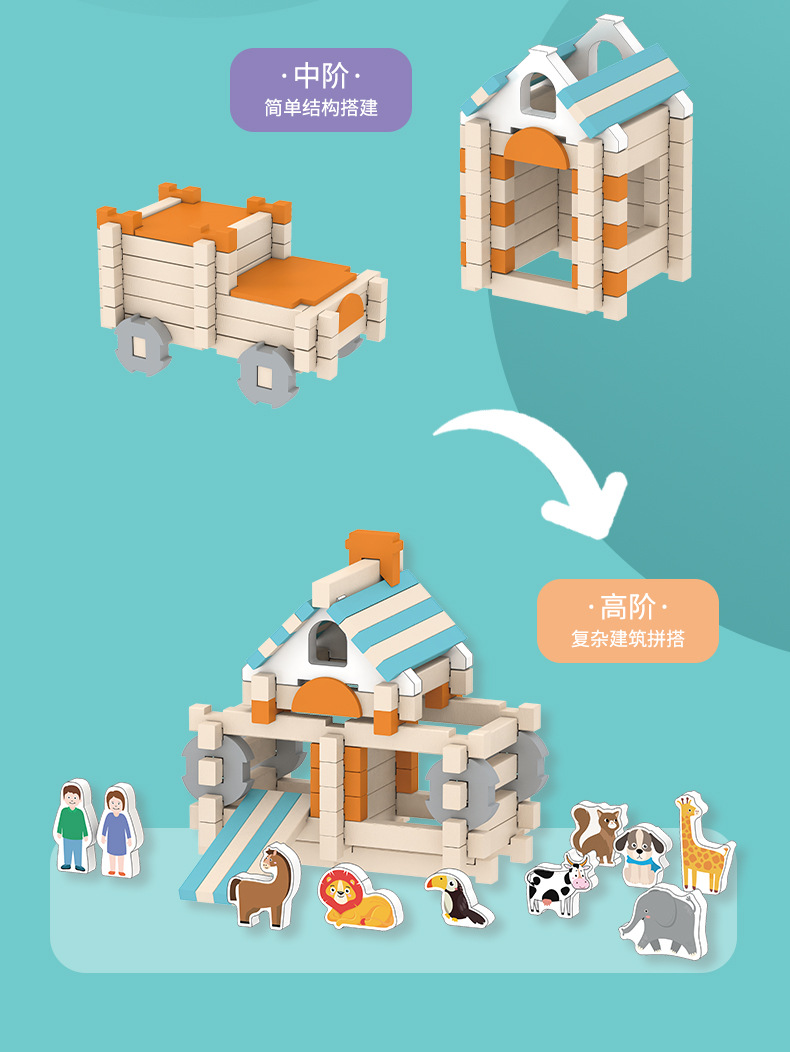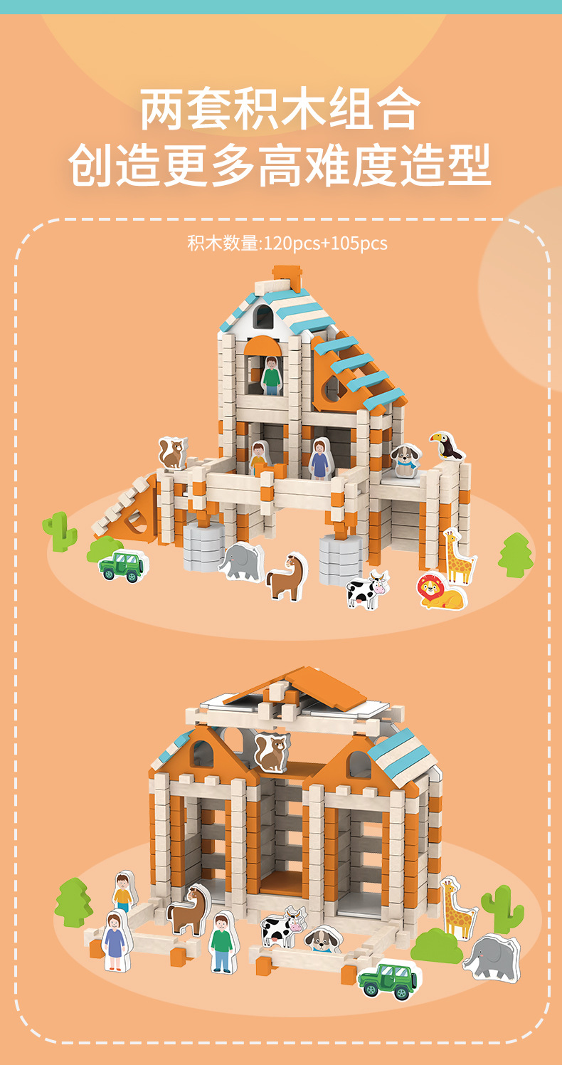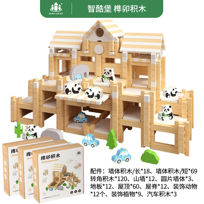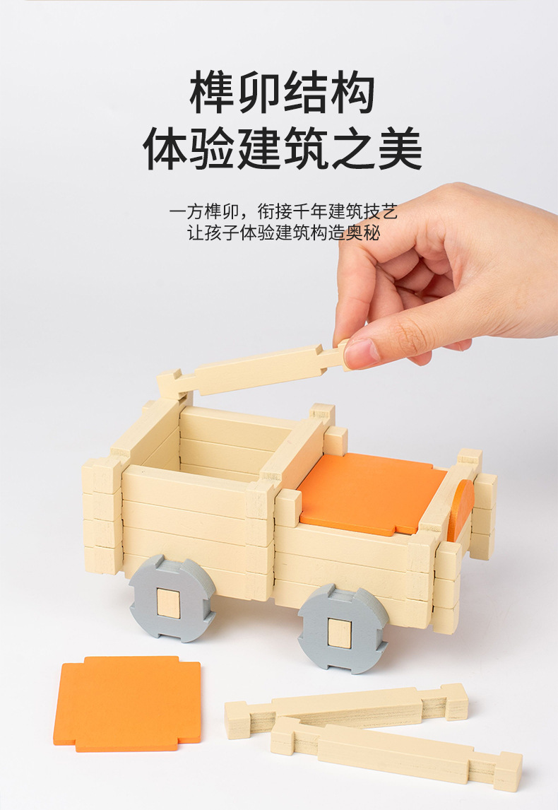 儿童早教鲁班榫卯结构益智积木小屋创意空间建构拼搭动手木质玩具