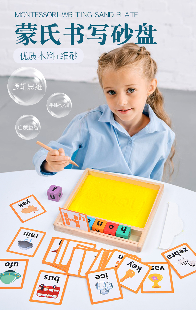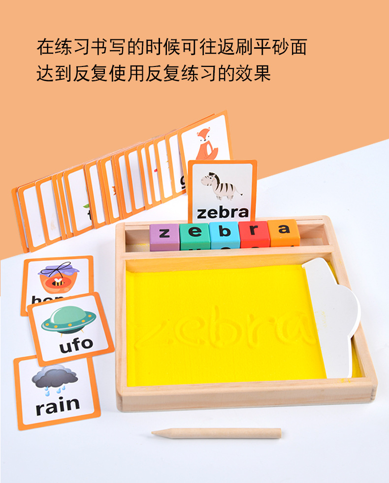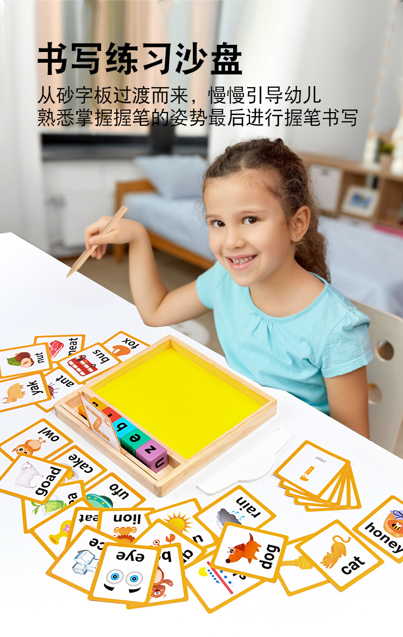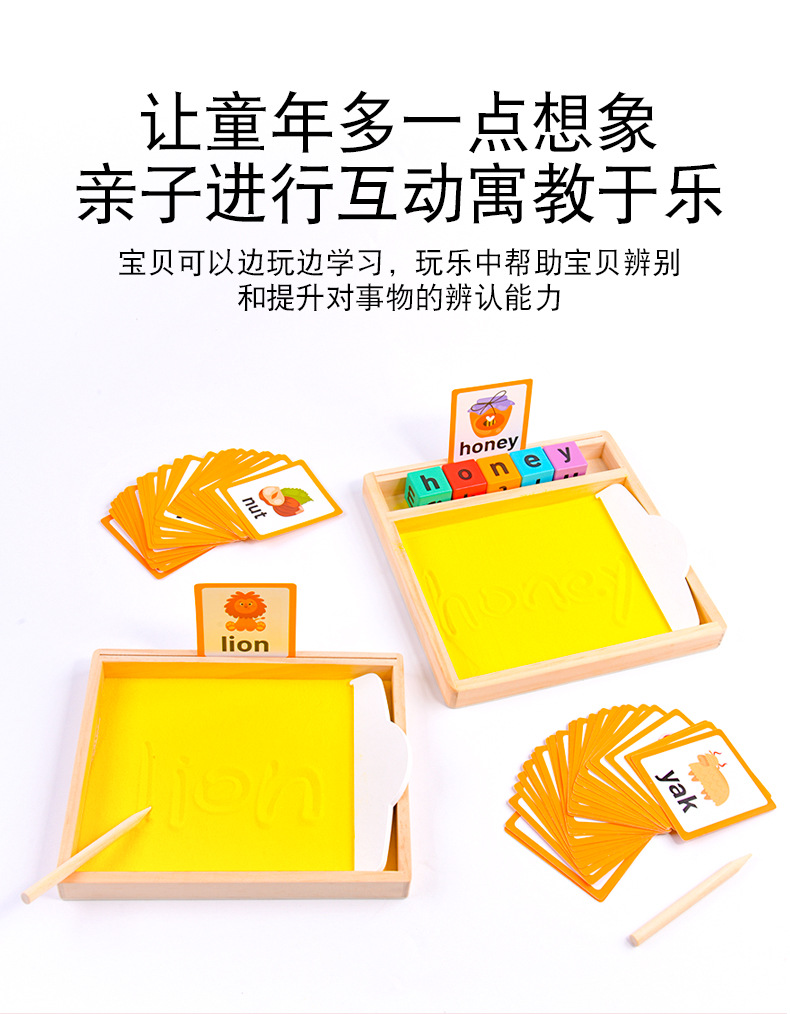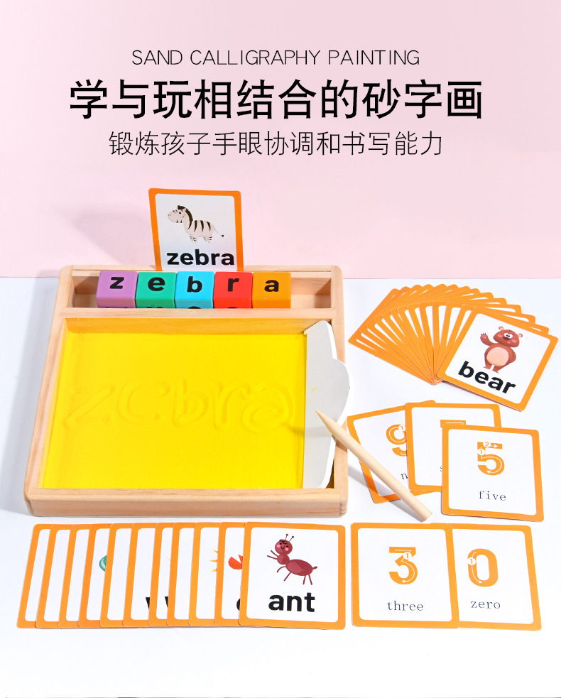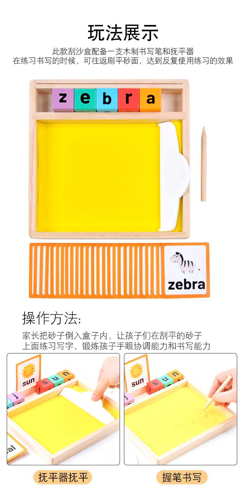 儿童木制蒙氏教具字母拼单词刮沙盒写字沙盘宝宝绘画早教益智玩具